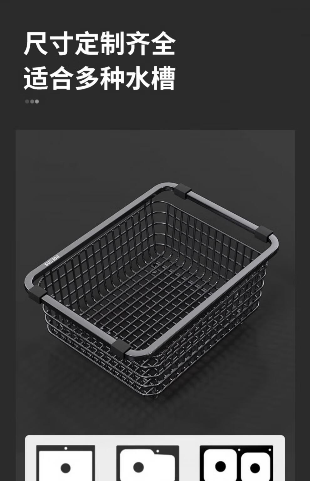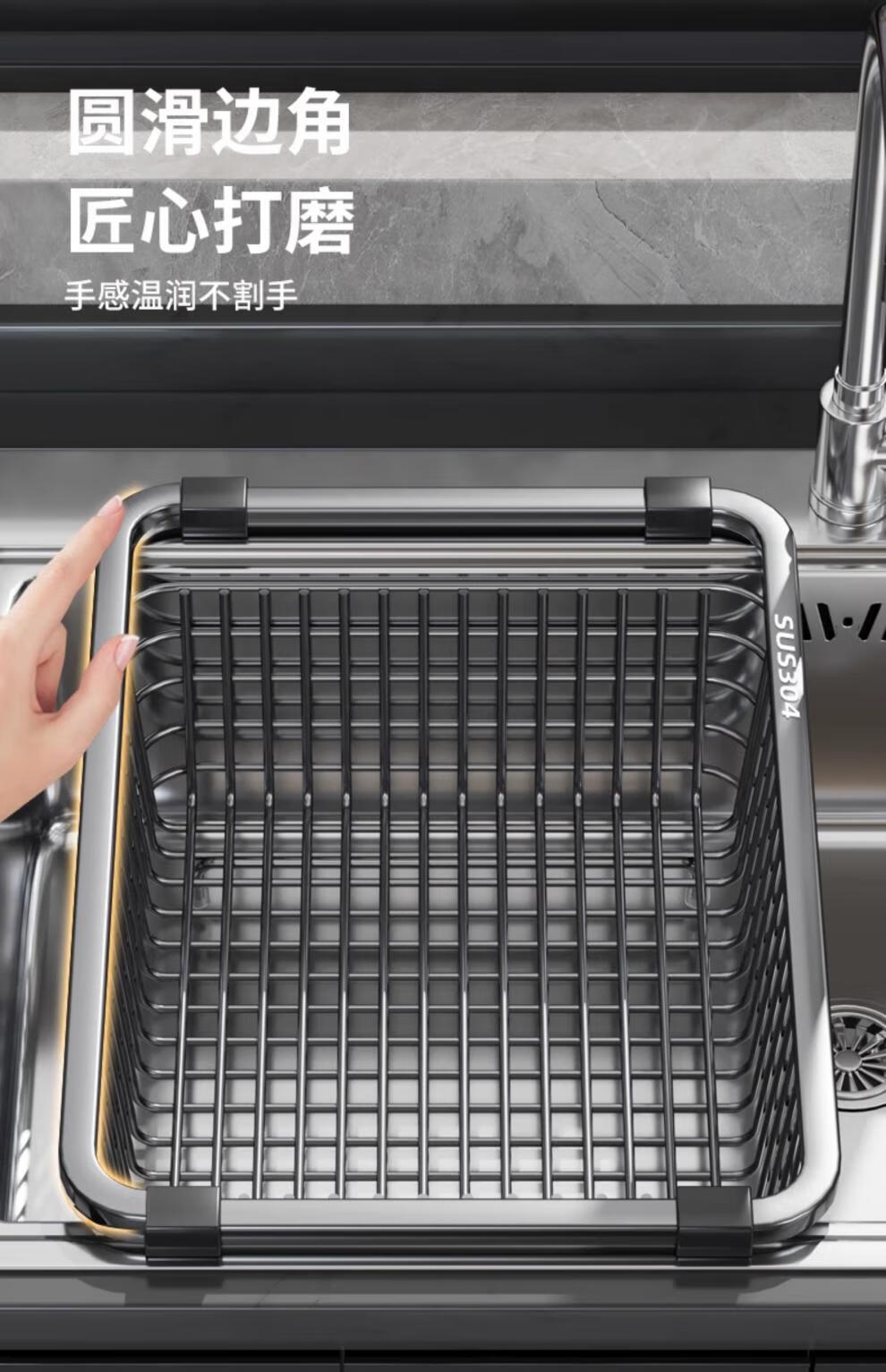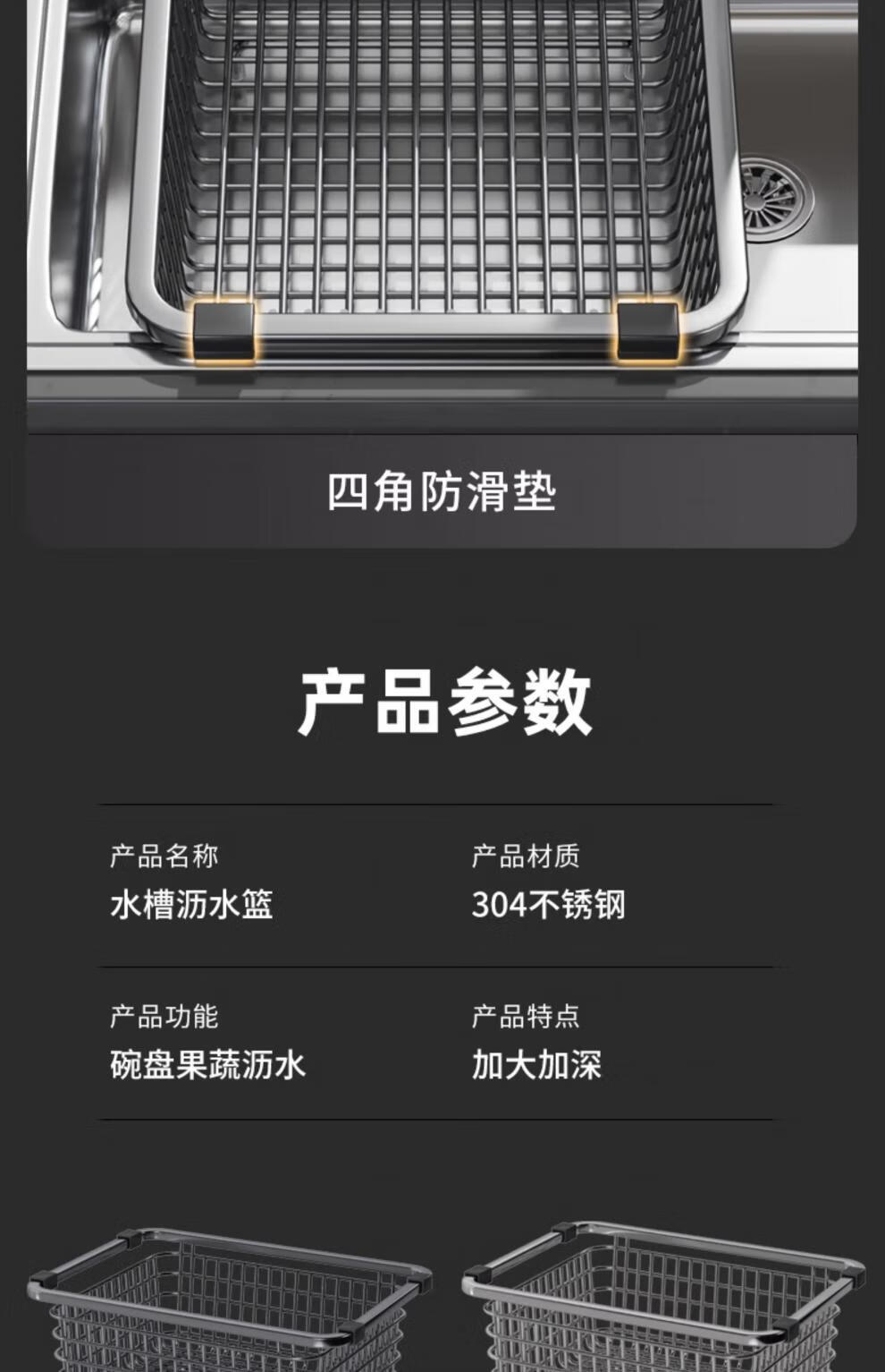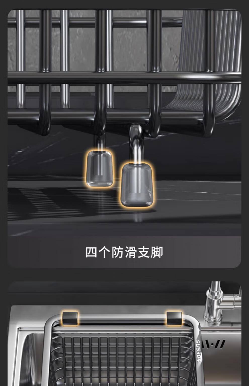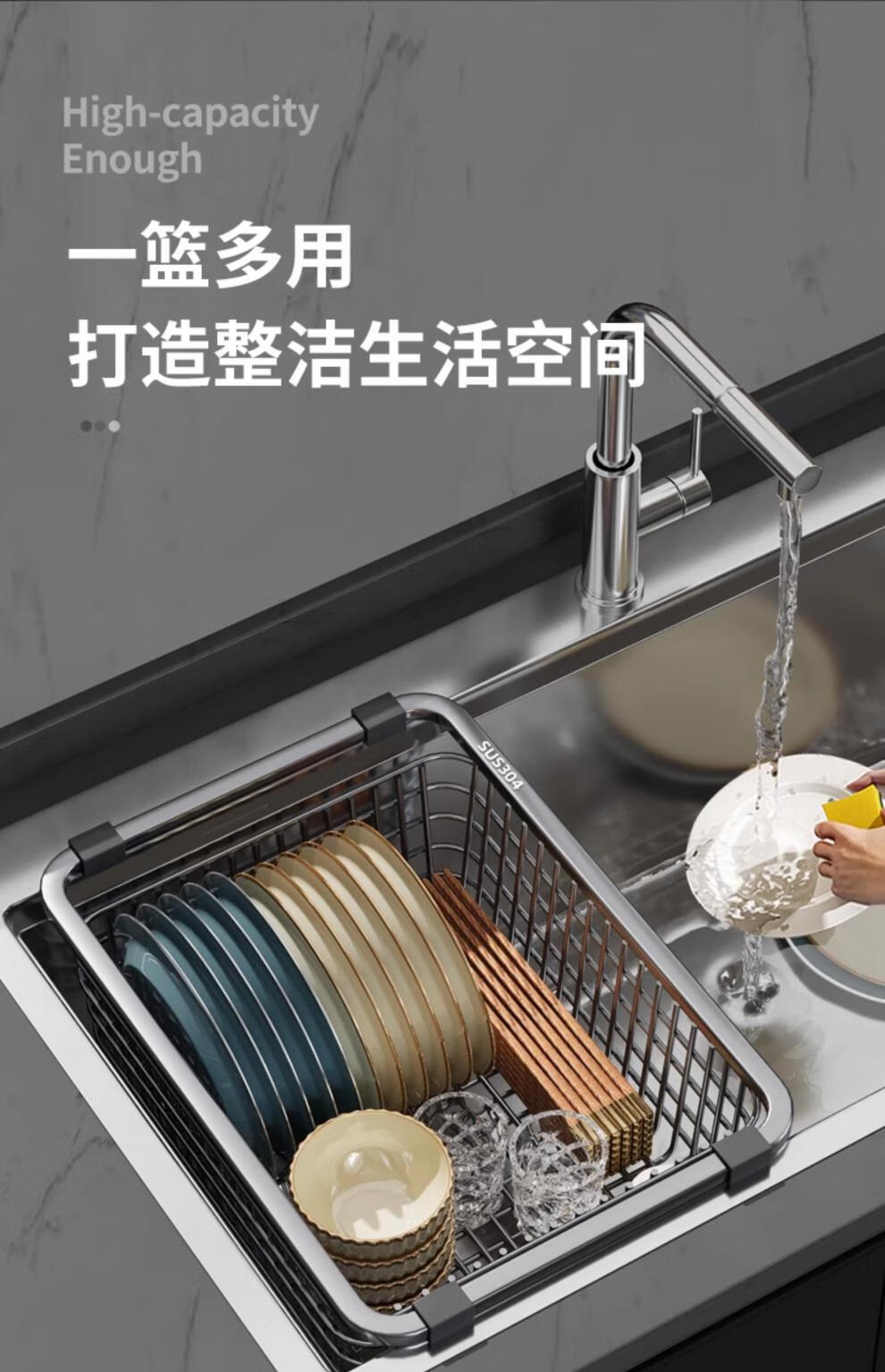 九牧厨房304不锈钢水槽沥水篮沥水架水池洗菜盆洗碗池碗盘碟架滤水篮 45【304不锈钢】加密加厚款
