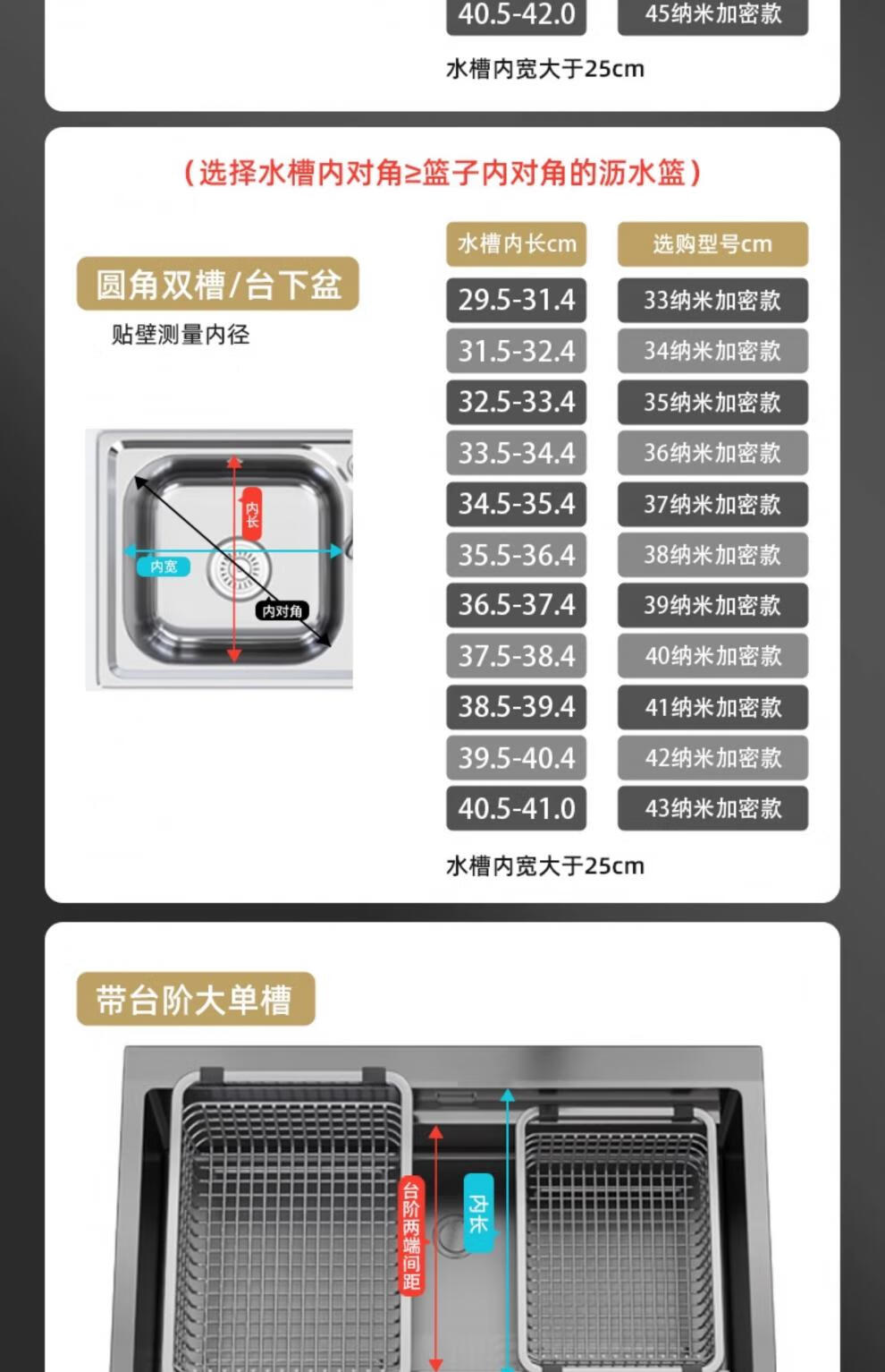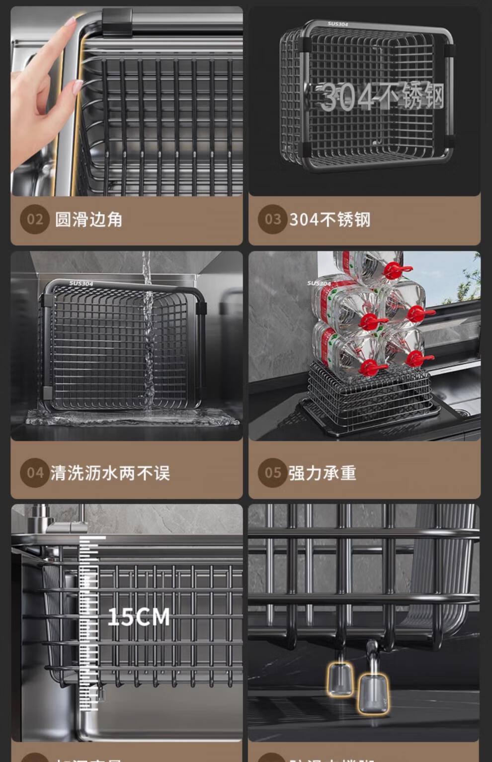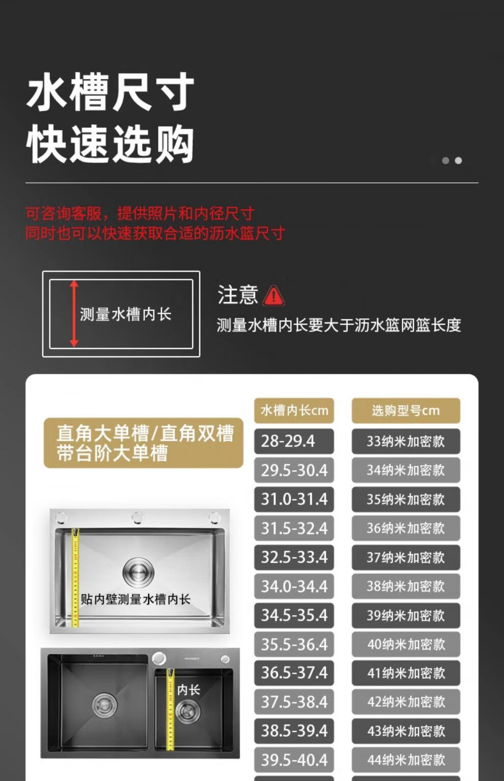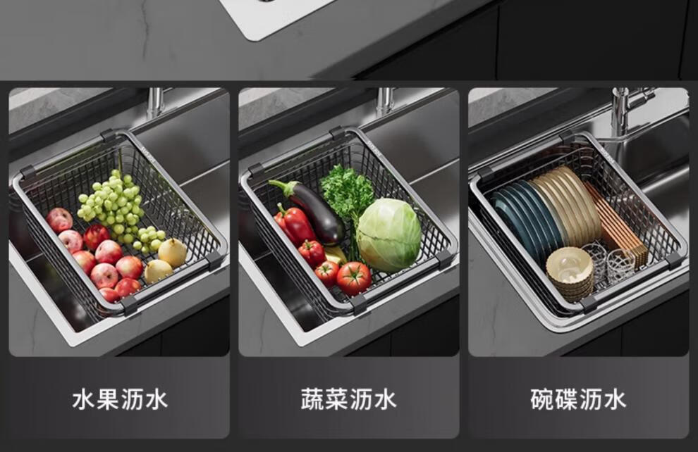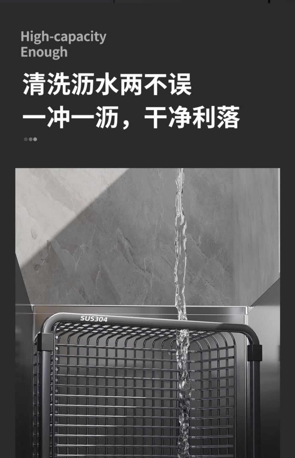 九牧厨房304不锈钢水槽沥水篮沥水架水池洗菜盆洗碗池碗盘碟架滤水篮 45【304不锈钢】加密加厚款