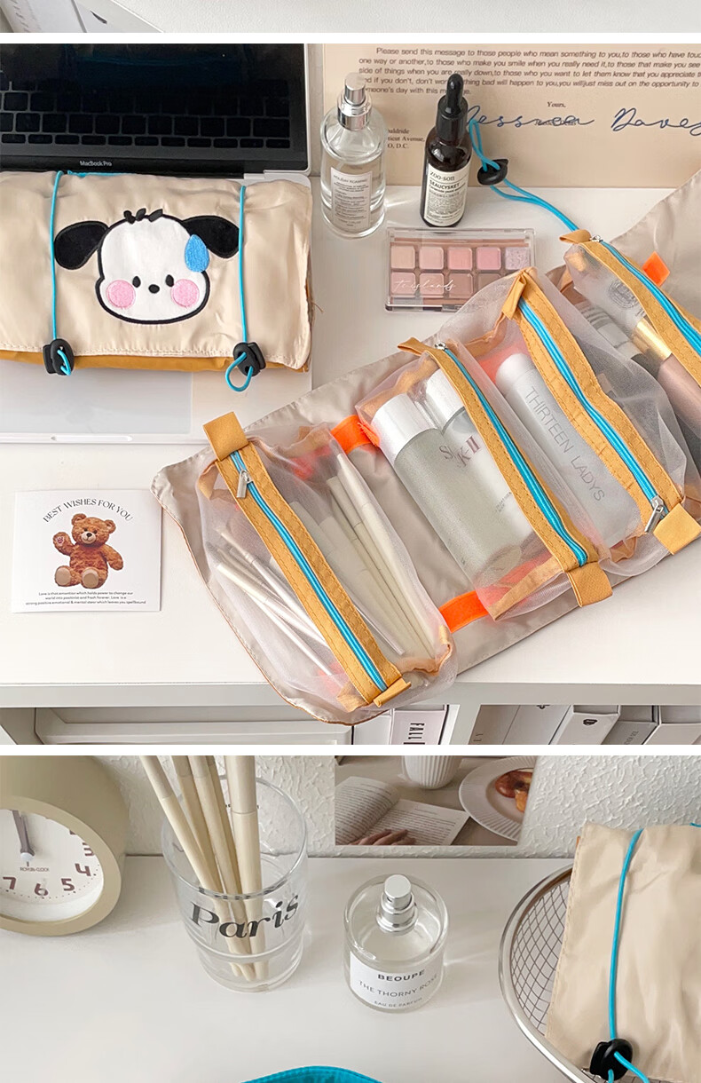 铂呐苓洗漱收纳包化妆手提折叠包便携装护肤品外出旅行出差可爱大容量包 卡通狗化妆包【流汗狗】