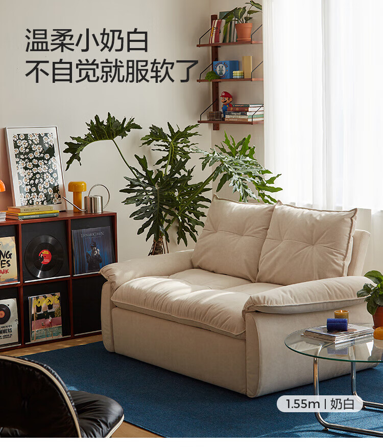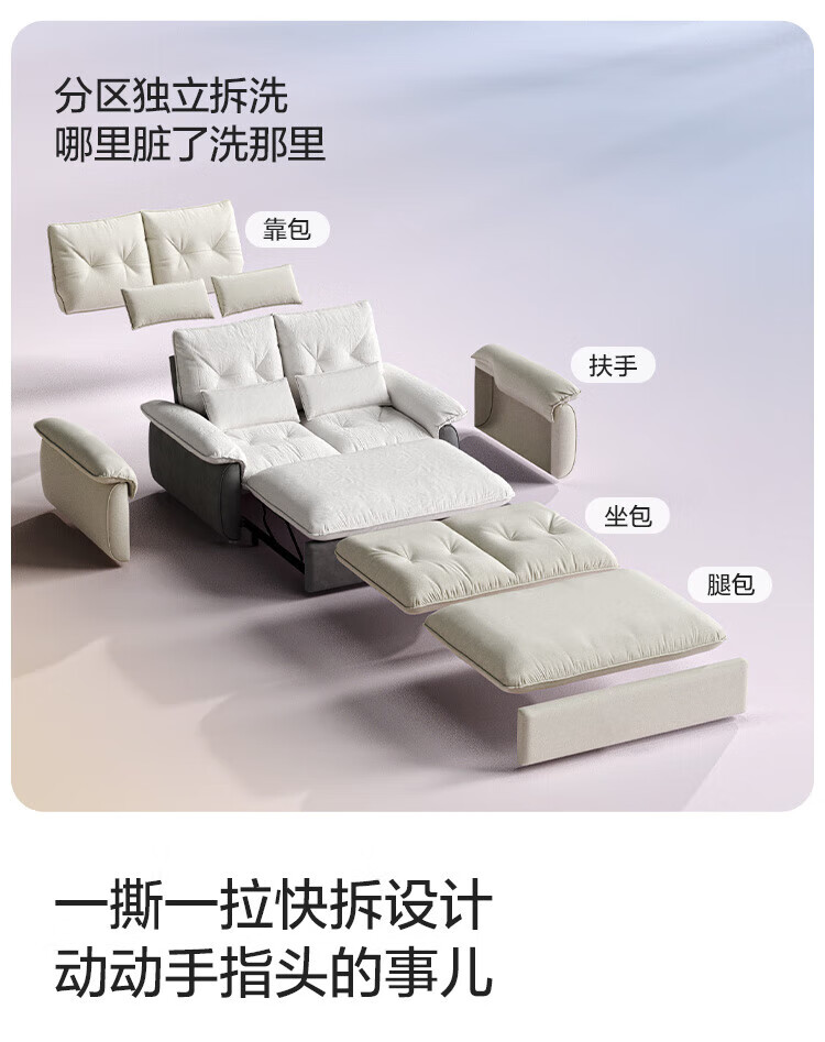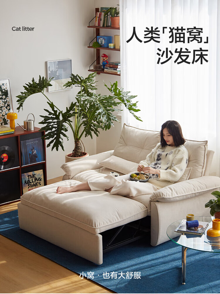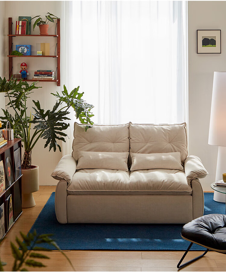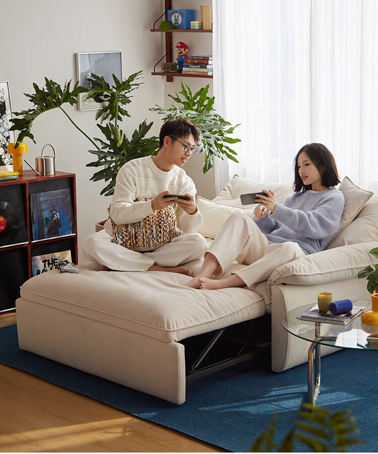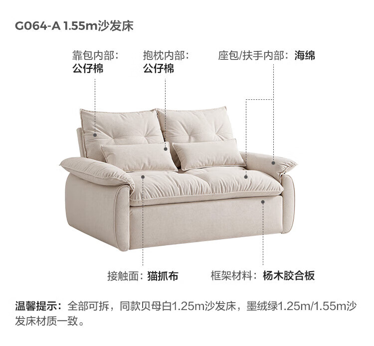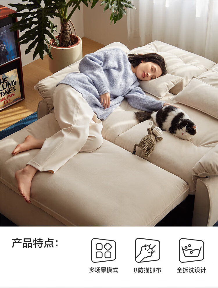 LINSY KIDS林氏家居猫抓布艺沙发客厅新款小户型可拆洗沙发床一体两用G064 (11)【可躺沙发床|透气仿棉麻|可拆洗】1.55米|奶油色
