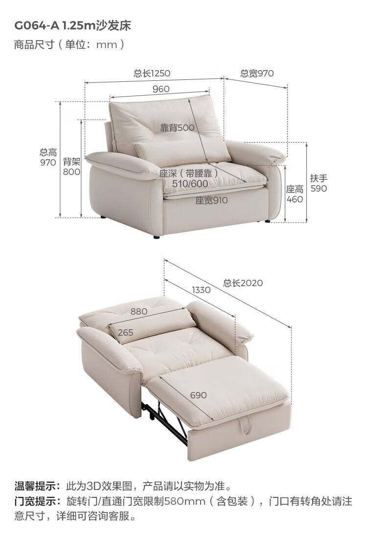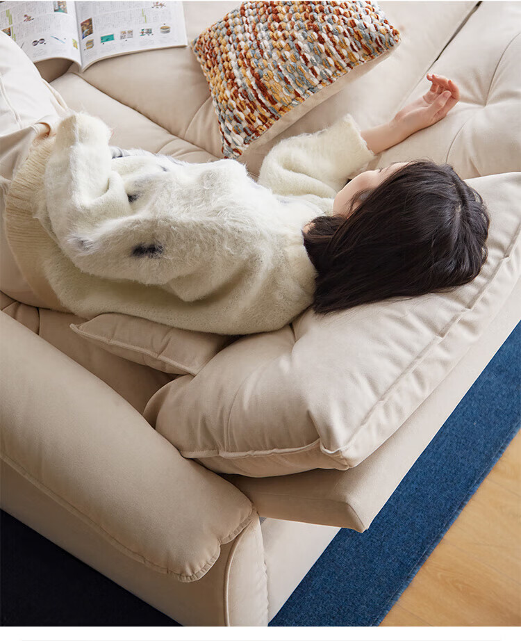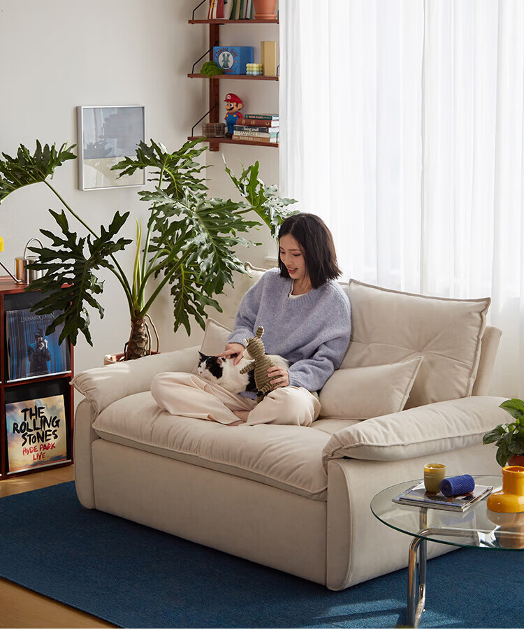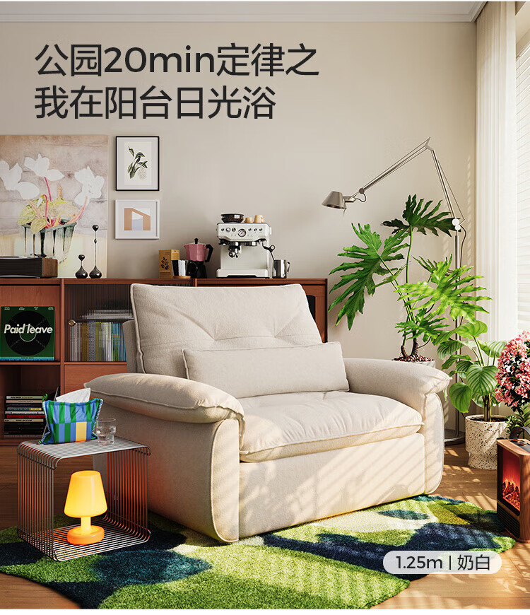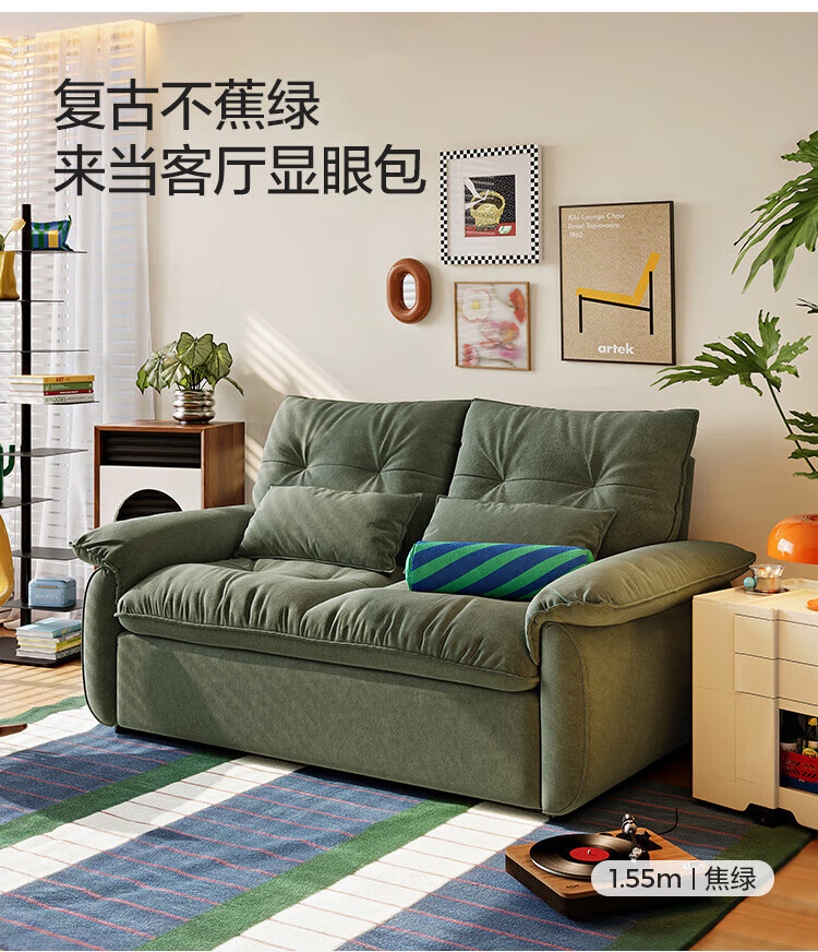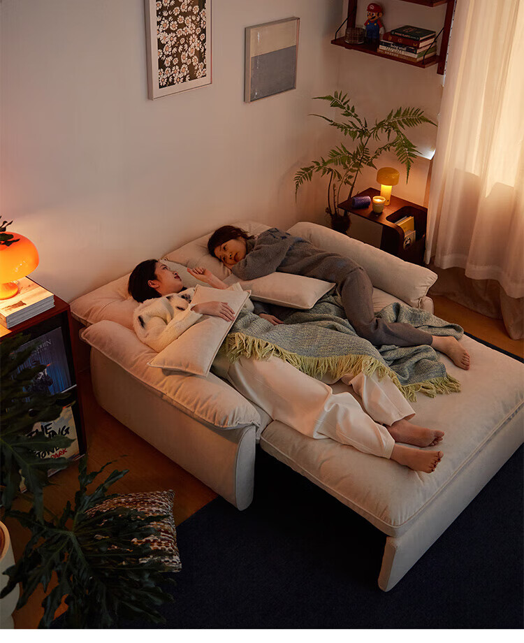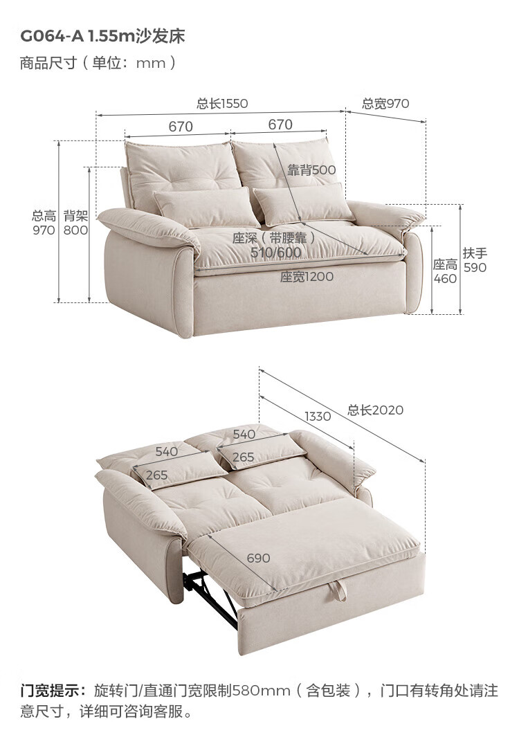 LINSY KIDS林氏家居猫抓布艺沙发客厅新款小户型可拆洗沙发床一体两用G064 (11)【可躺沙发床|透气仿棉麻|可拆洗】1.55米|奶油色
