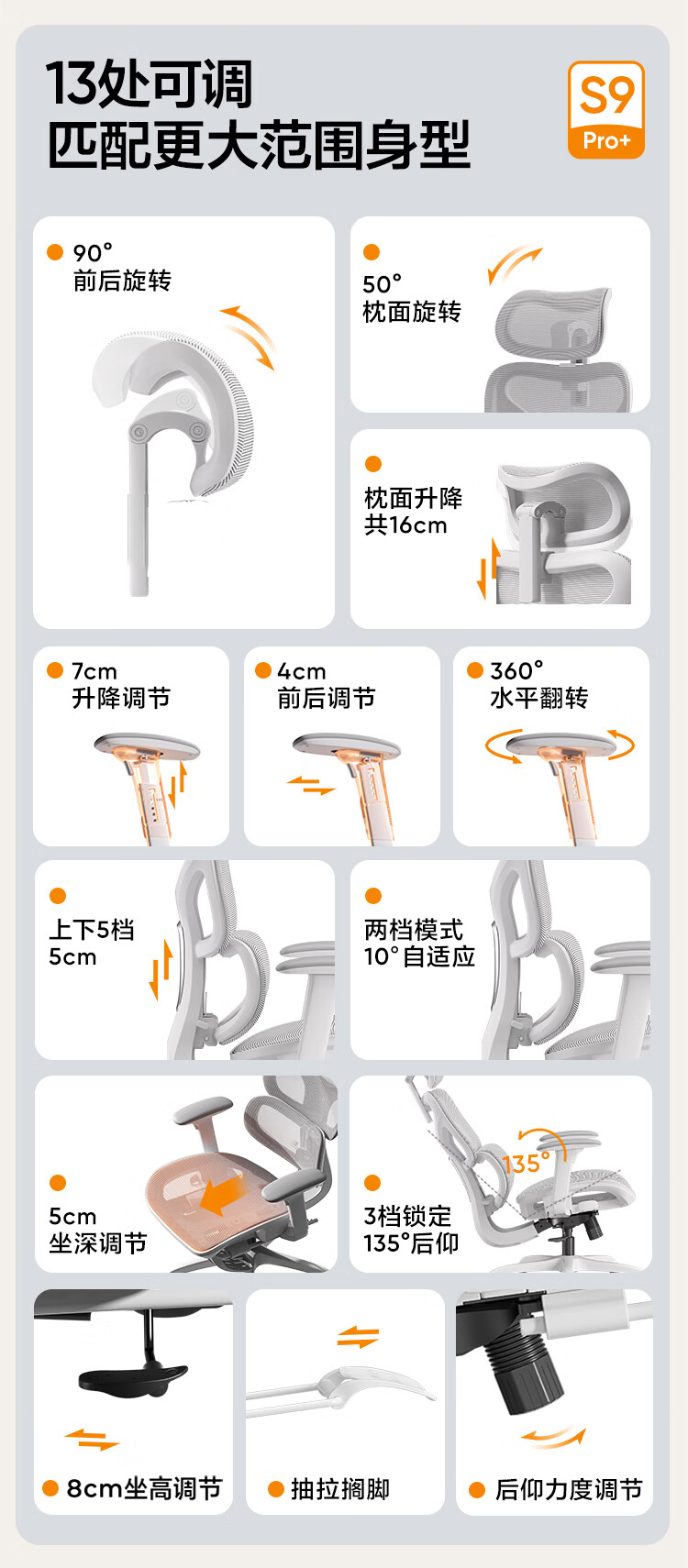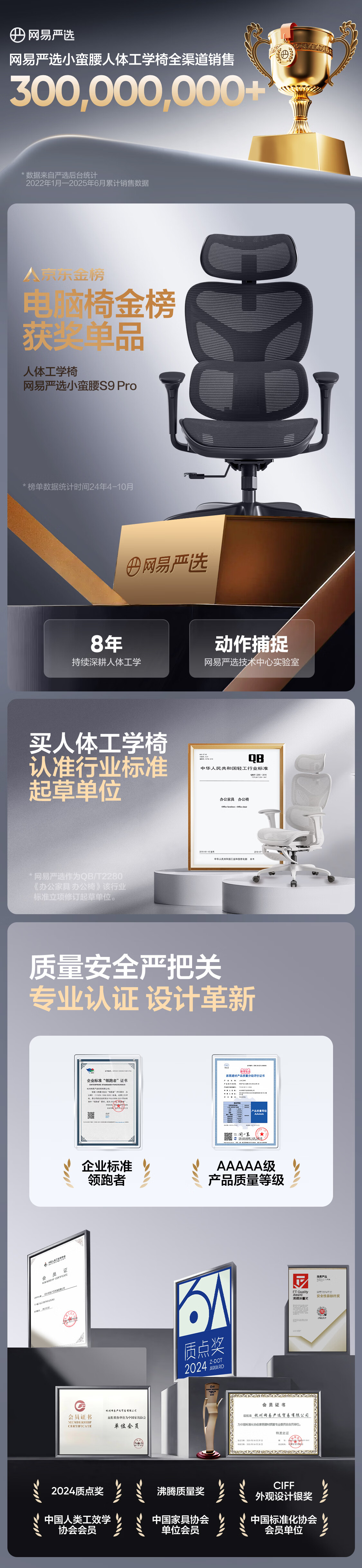 网易严选小蛮腰S9Pro+人体工学电脑椅电竞椅办公久坐座椅六向腰靠3D头枕