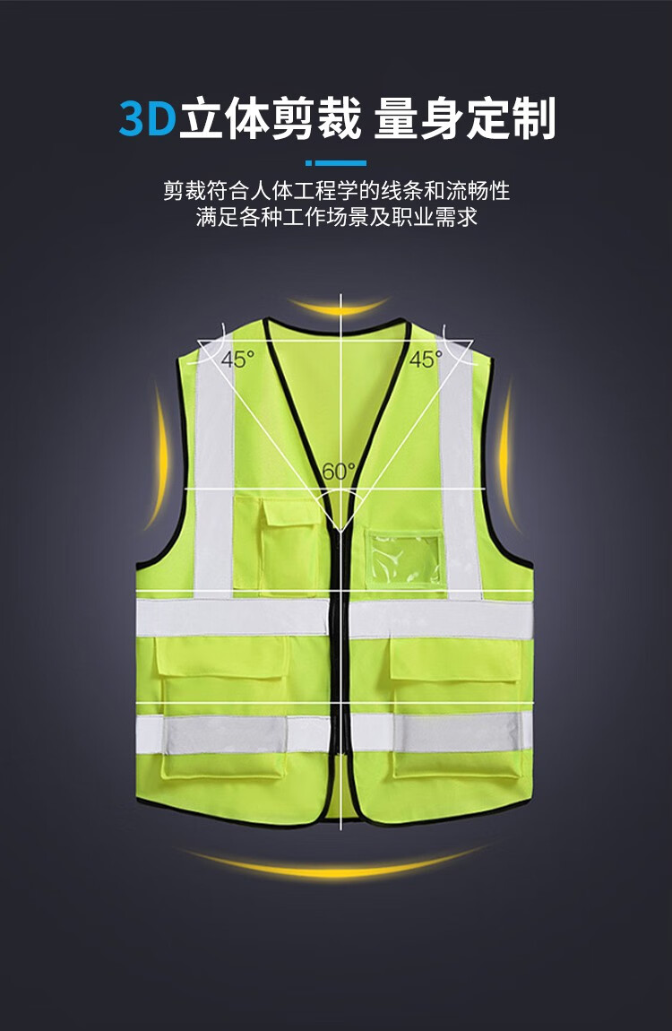 圣驰反光安全背心施工反光衣工地环卫交通建筑夜间发光保安马甲荧光马甲定制印logo (新国标加厚)口袋款荧光黄【针织布高亮】 均码