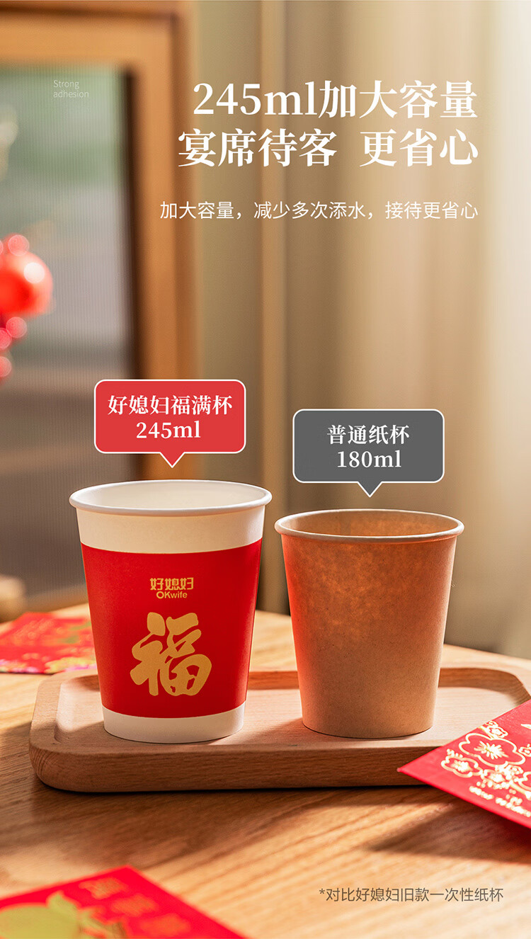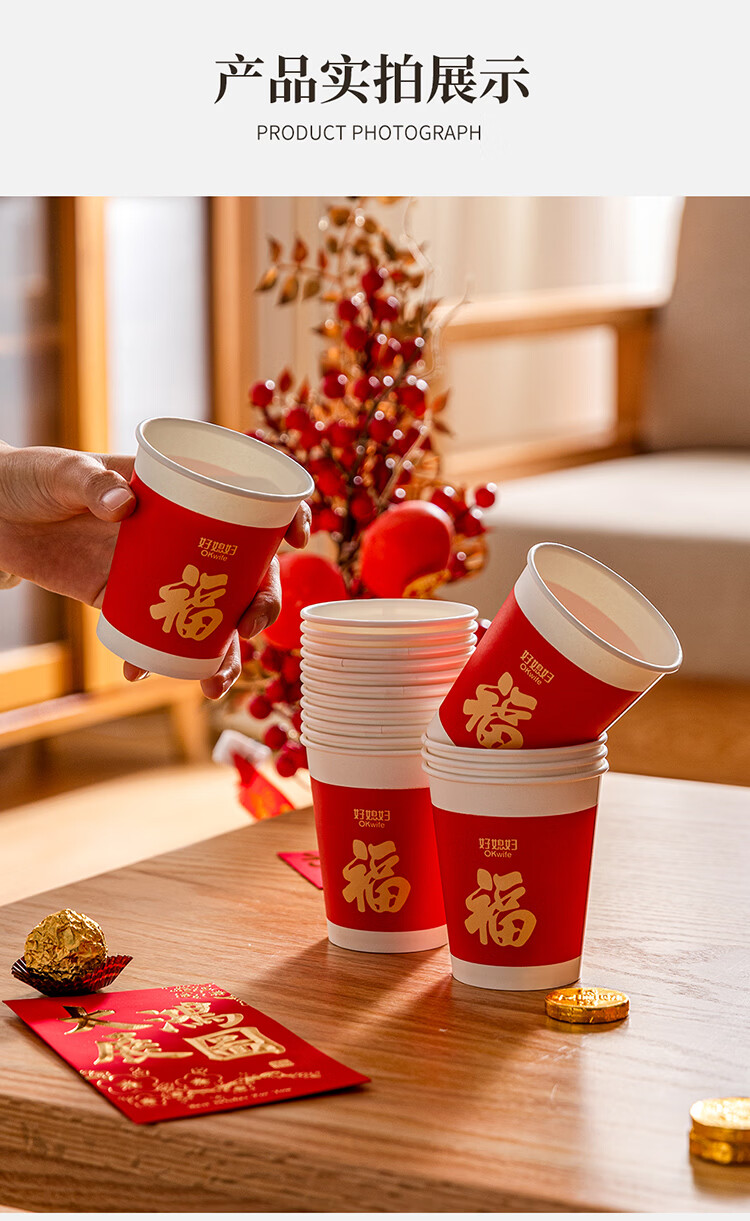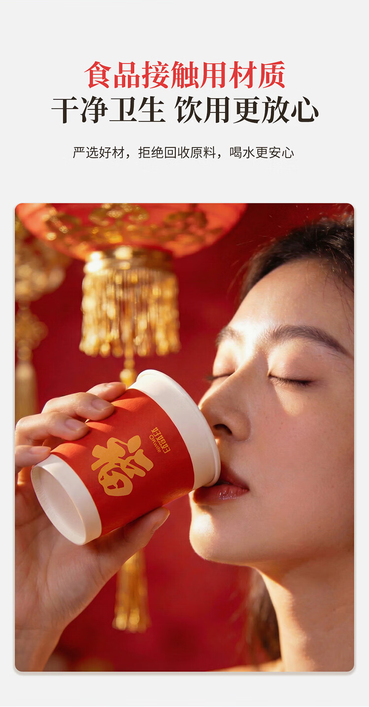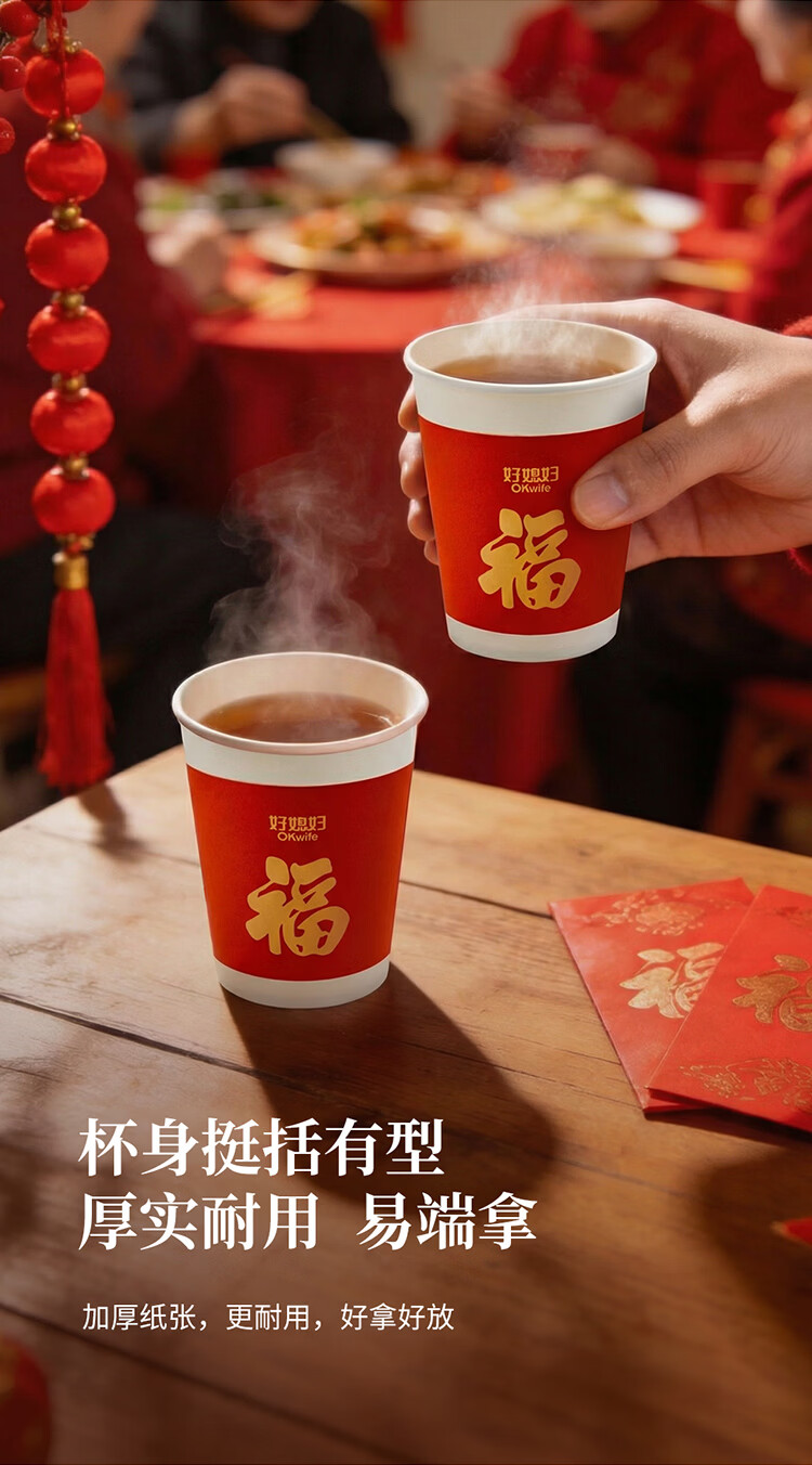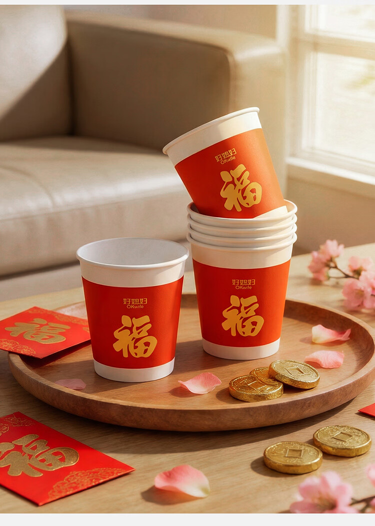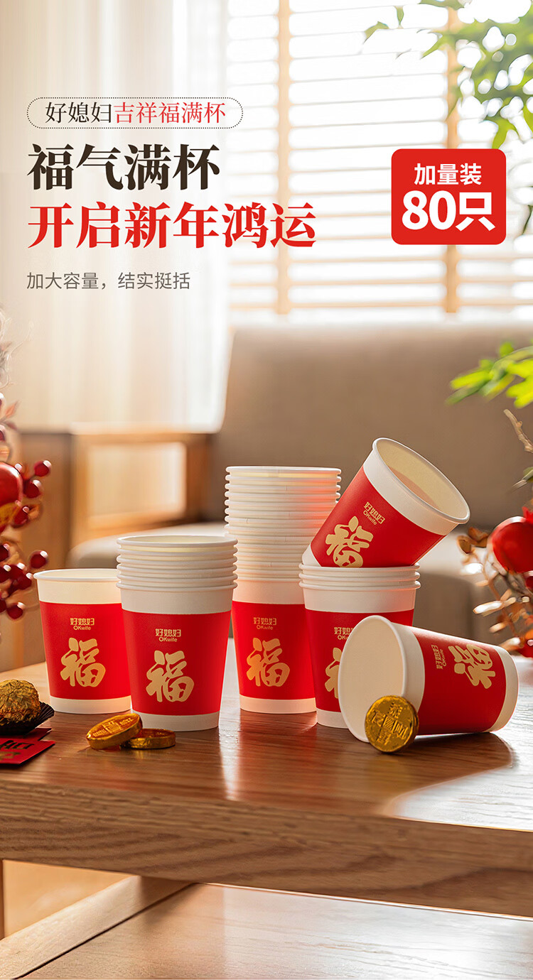 好媳妇(okaywife)2026马年新款春节纸杯加厚一次性新年过年红色杯子家用80只装