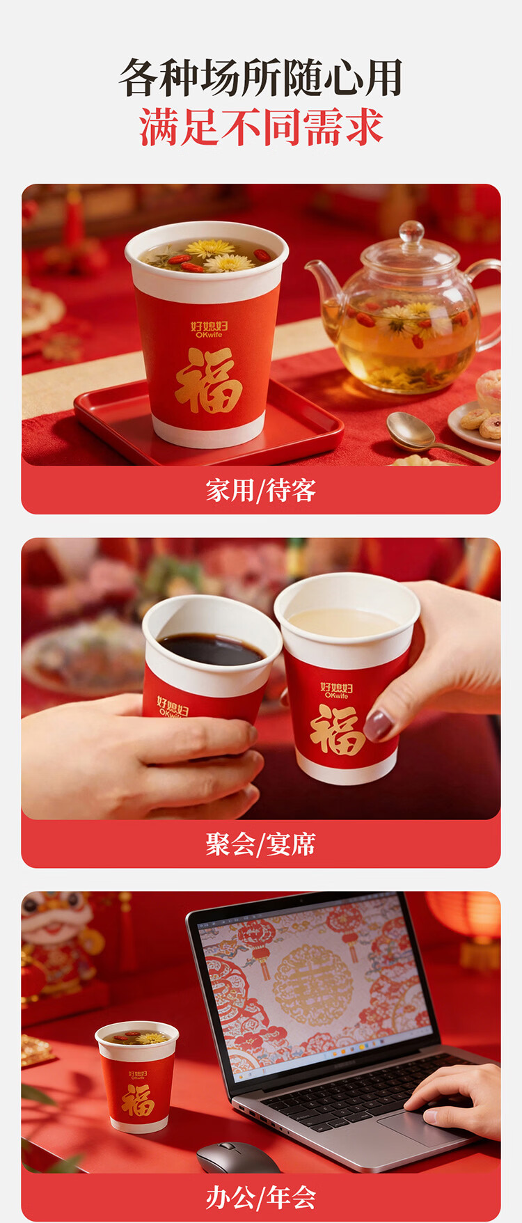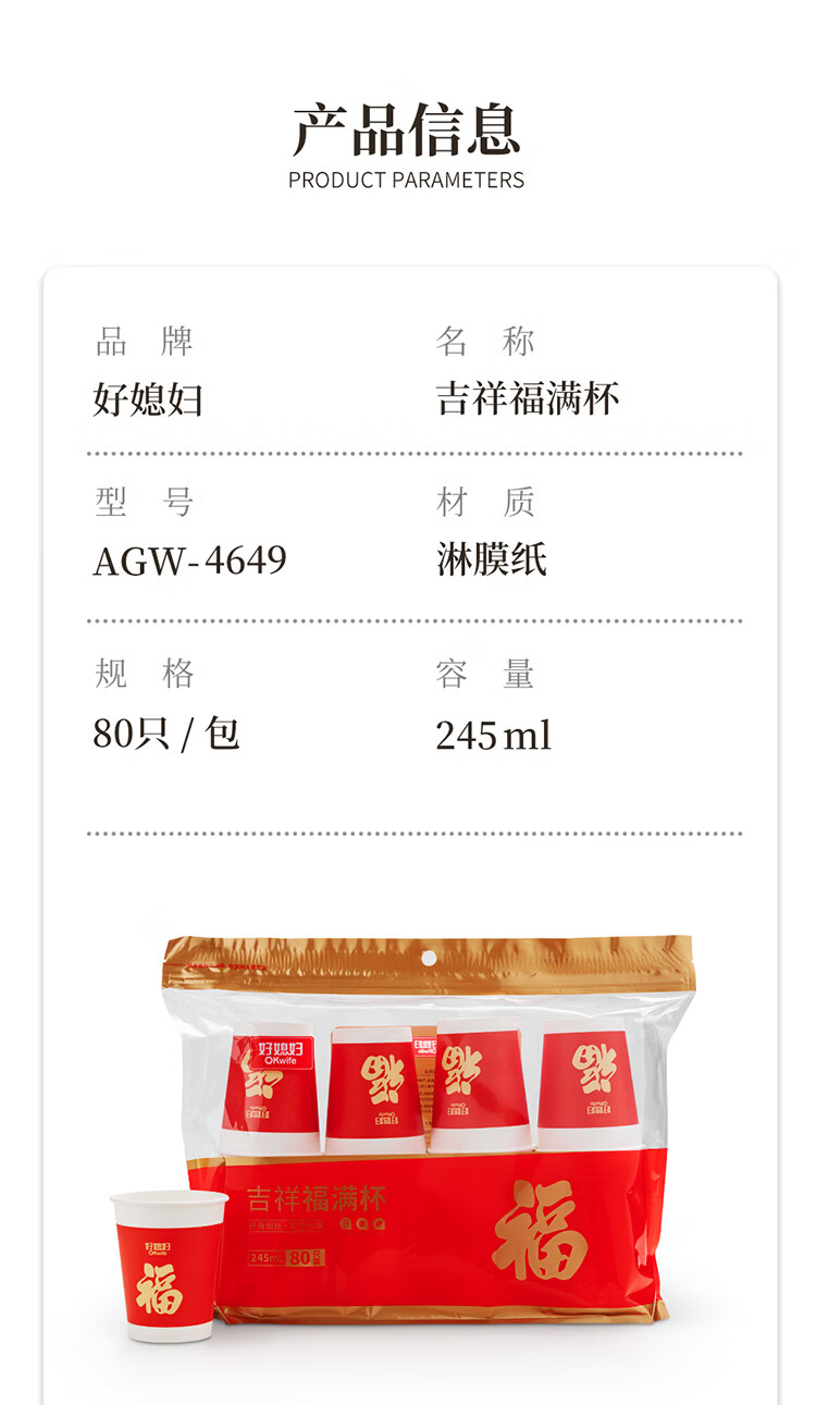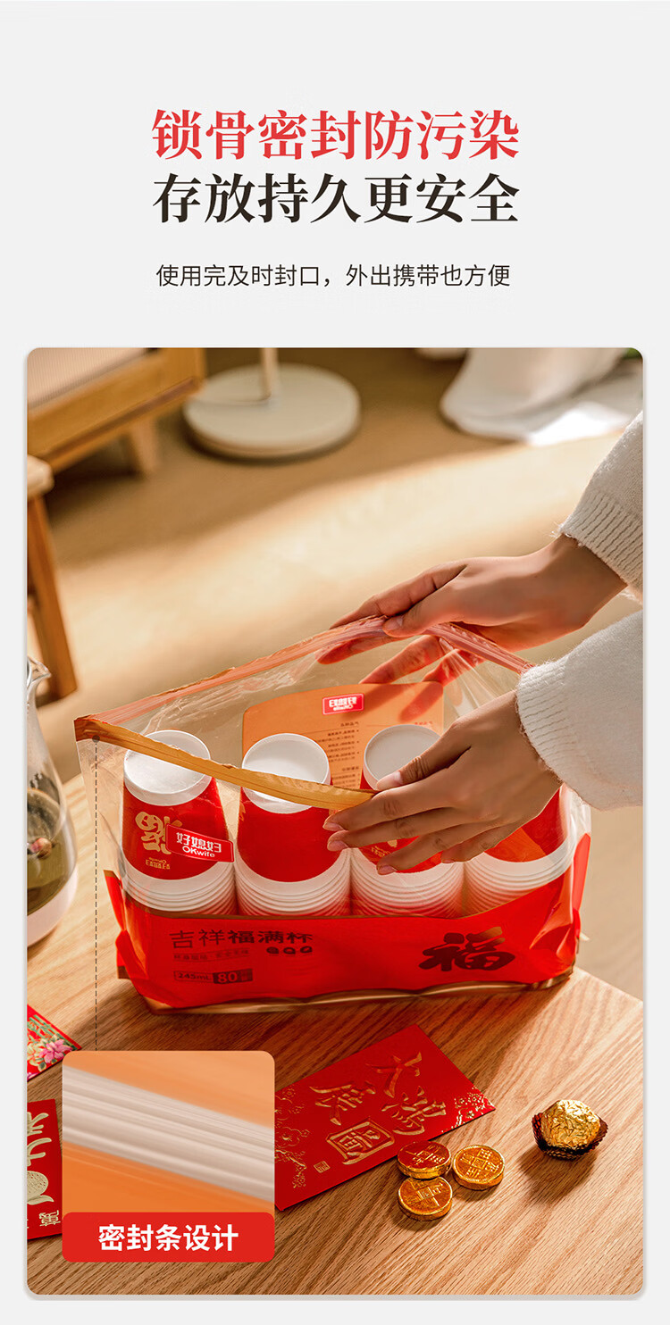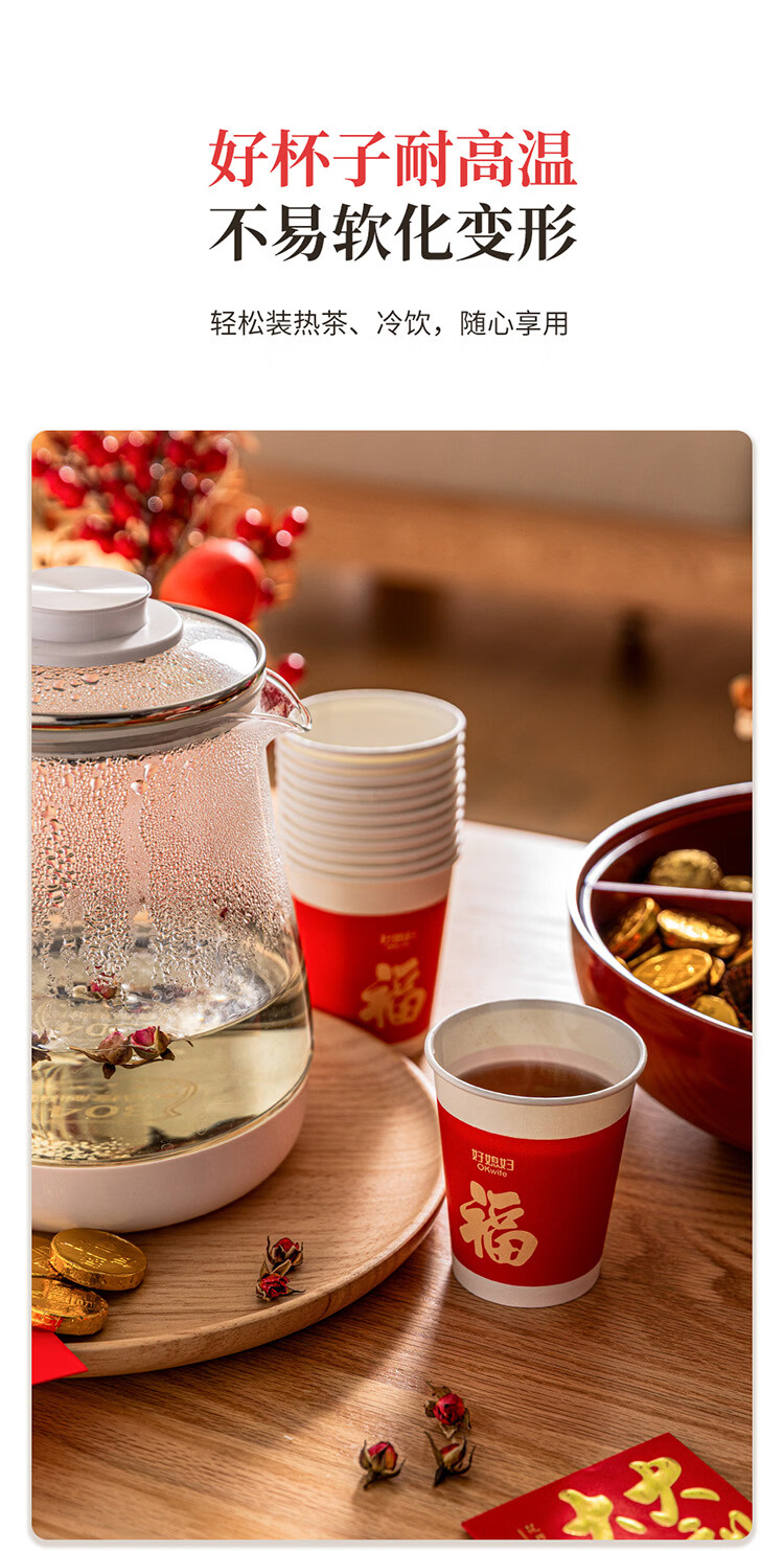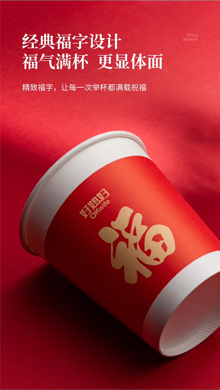 好媳妇(okaywife)2026马年新款春节纸杯加厚一次性新年过年红色杯子家用80只装