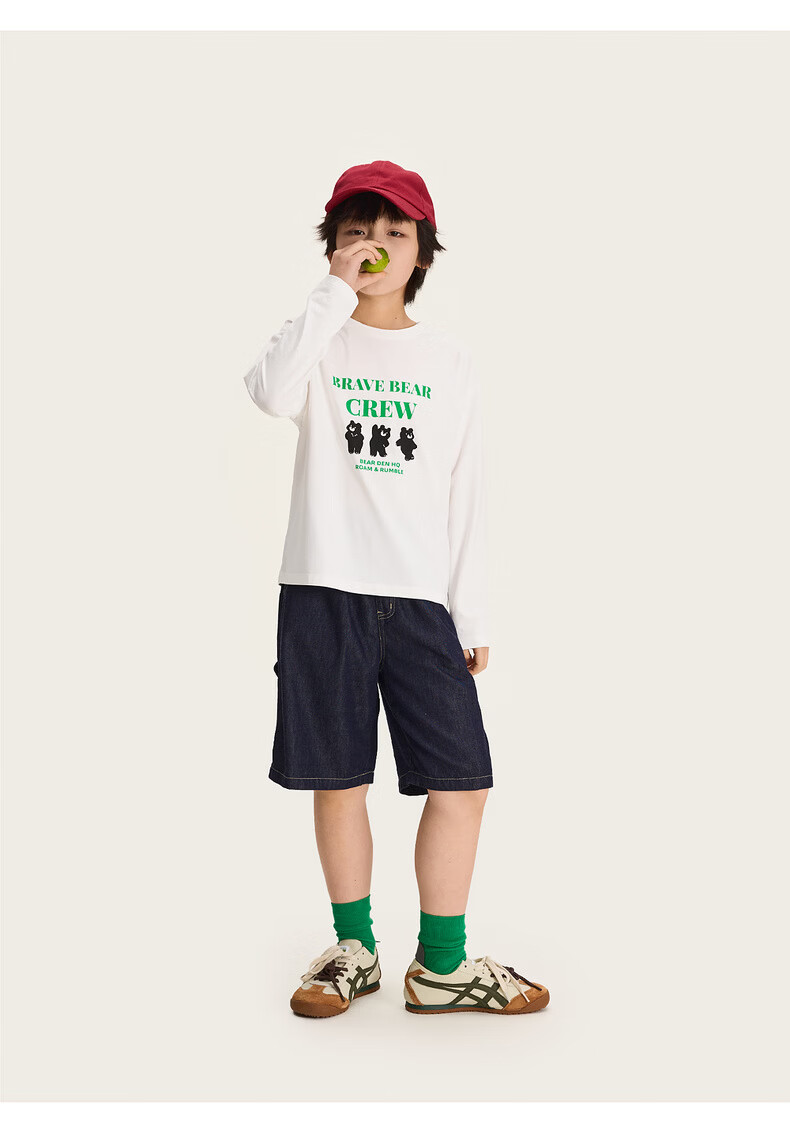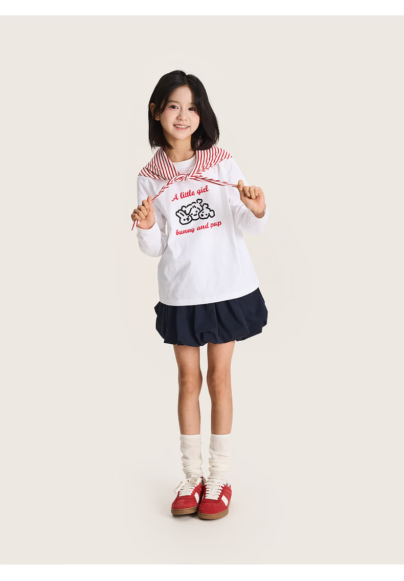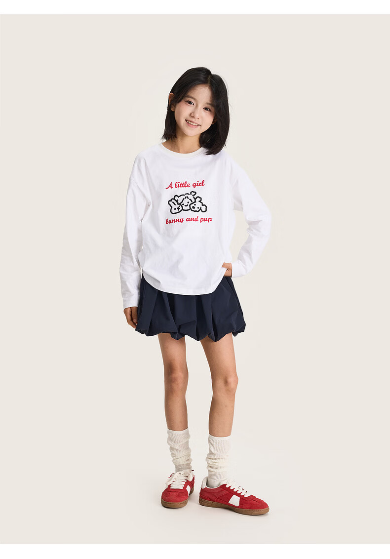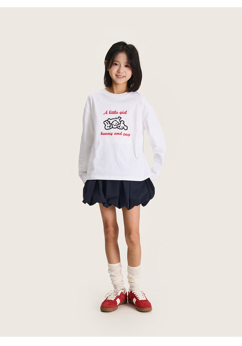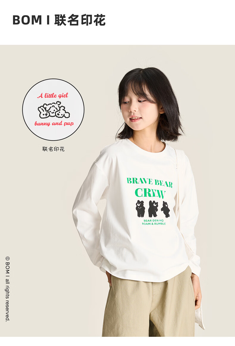 棉叔叔【舒适棉族长袖T恤】棉叔叔女童春季新联名圆领印花长袖T男童2.24 象牙白红色字母 120 120