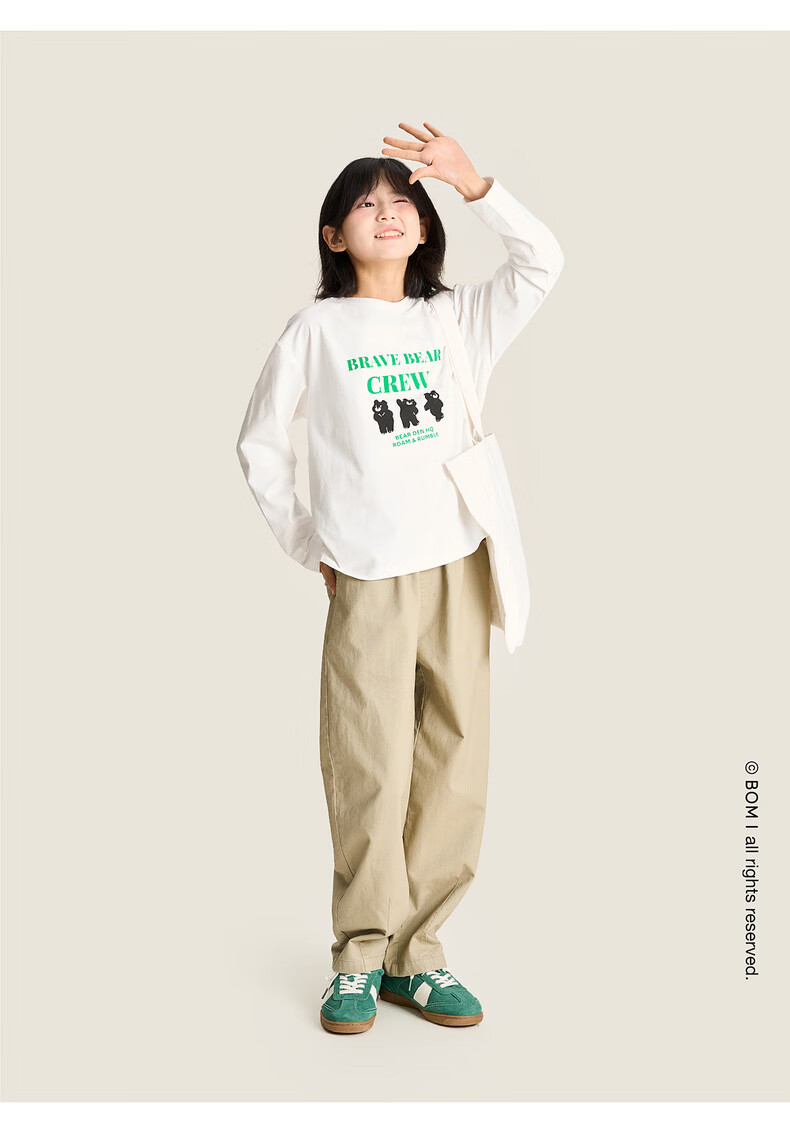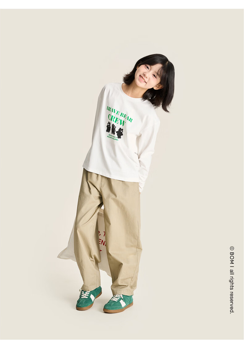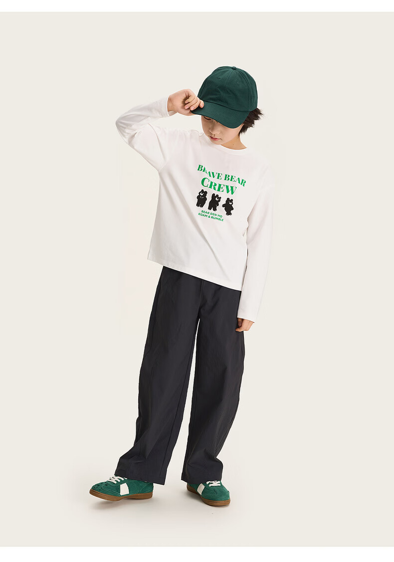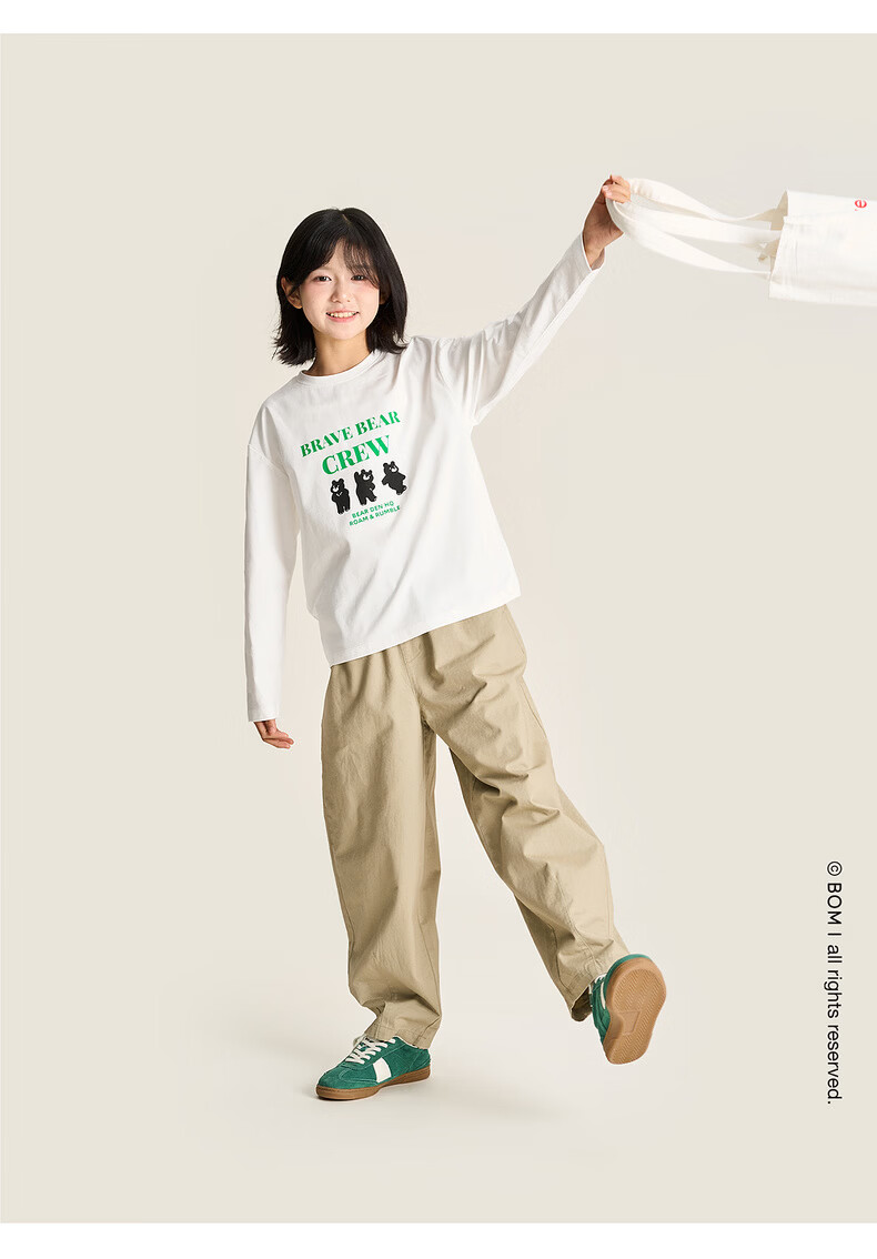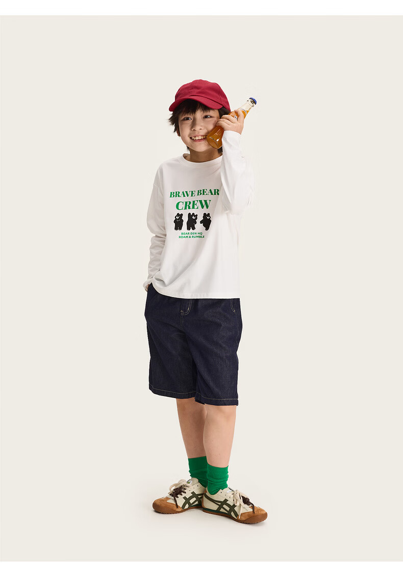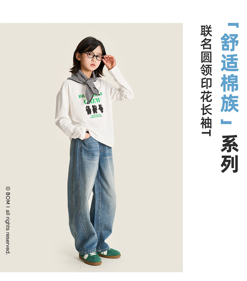 棉叔叔【舒适棉族长袖T恤】棉叔叔女童春季新联名圆领印花长袖T男童2.24 象牙白红色字母 120 120