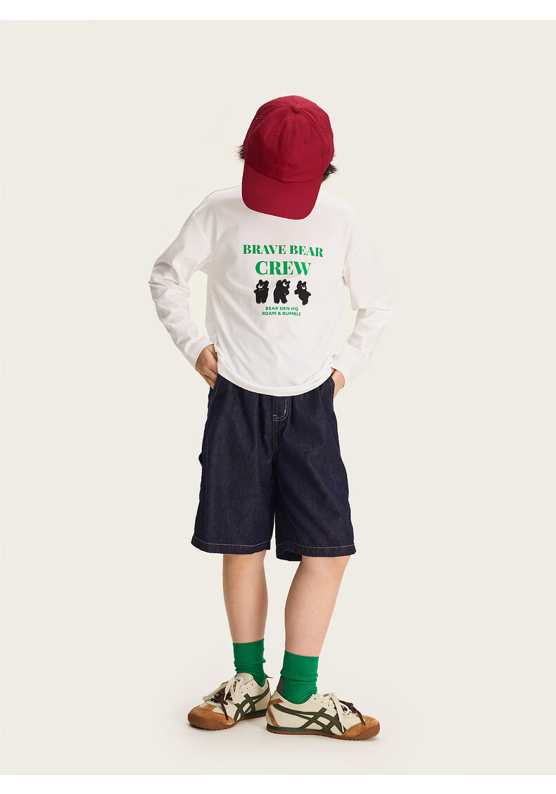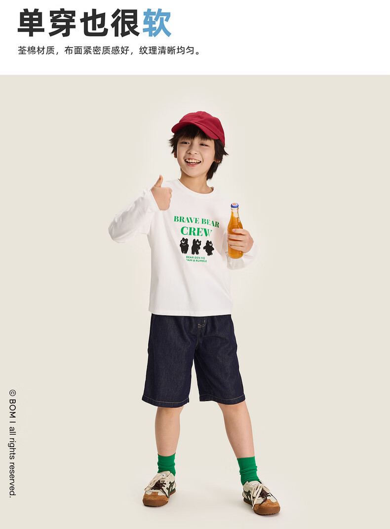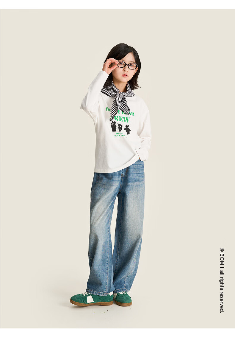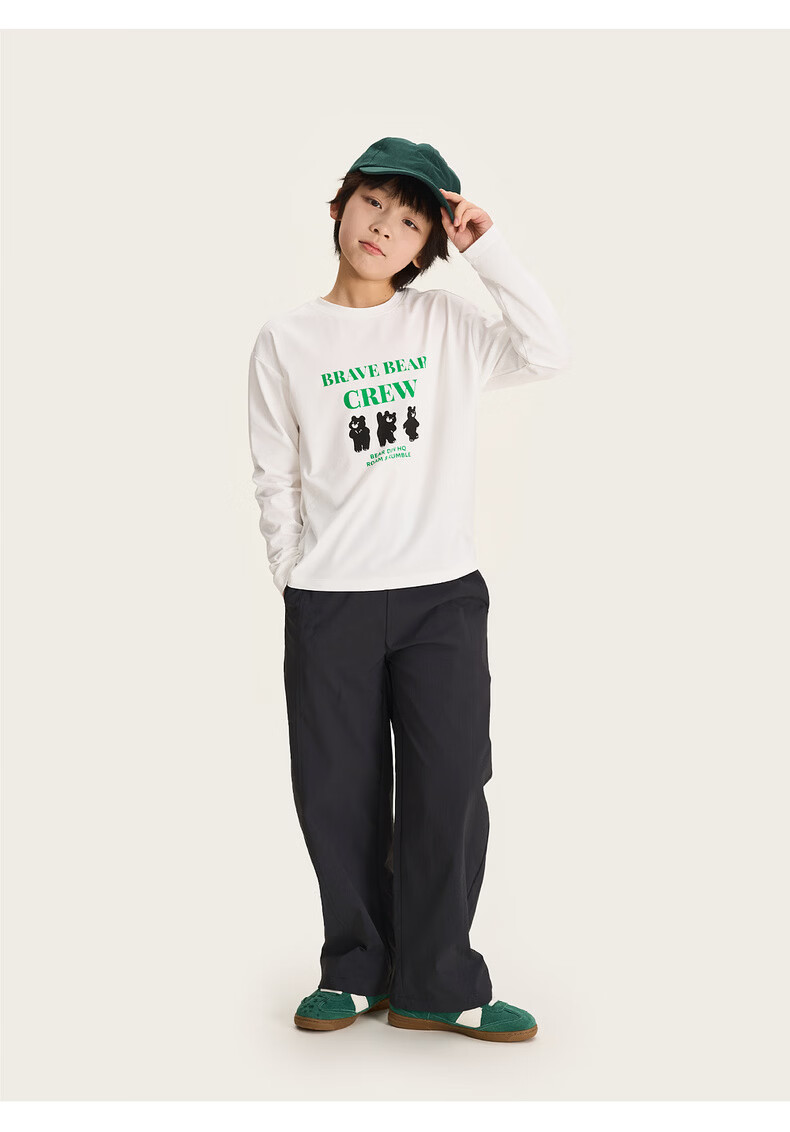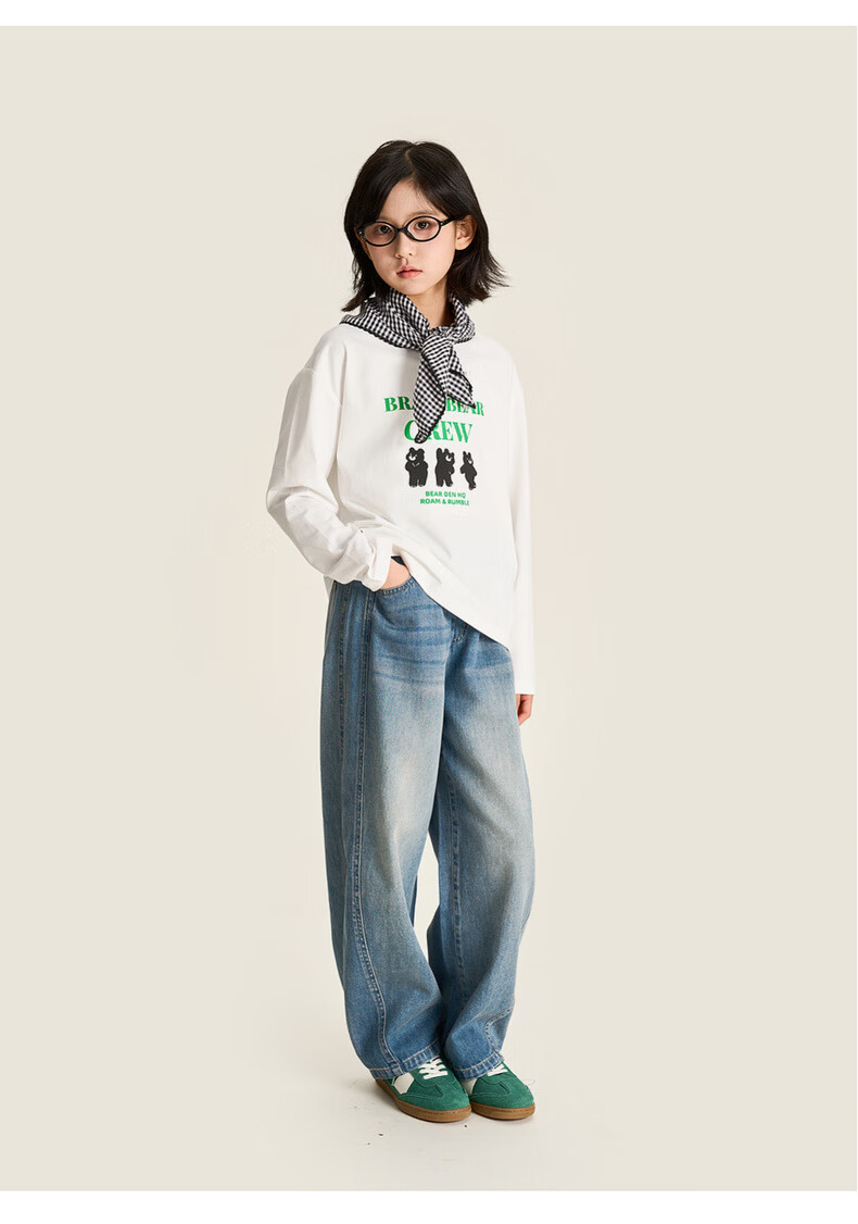棉叔叔【舒适棉族长袖T恤】棉叔叔女童春季新联名圆领印花长袖T男童2.24 象牙白红色字母 120 120