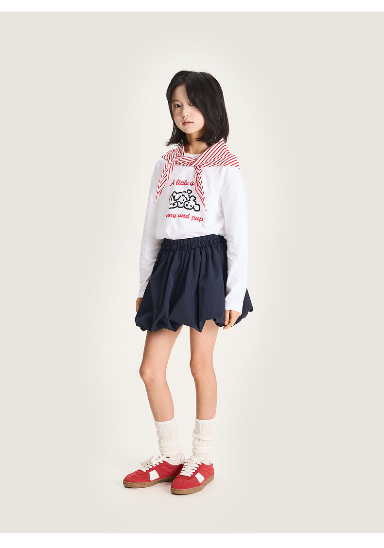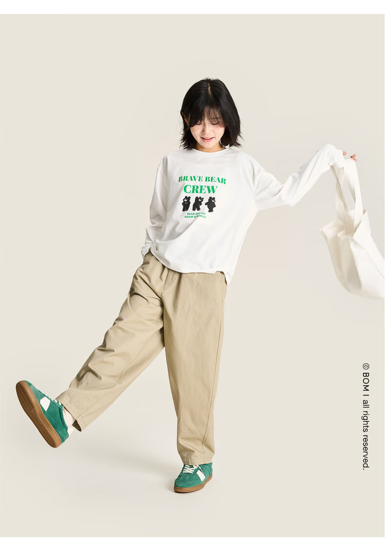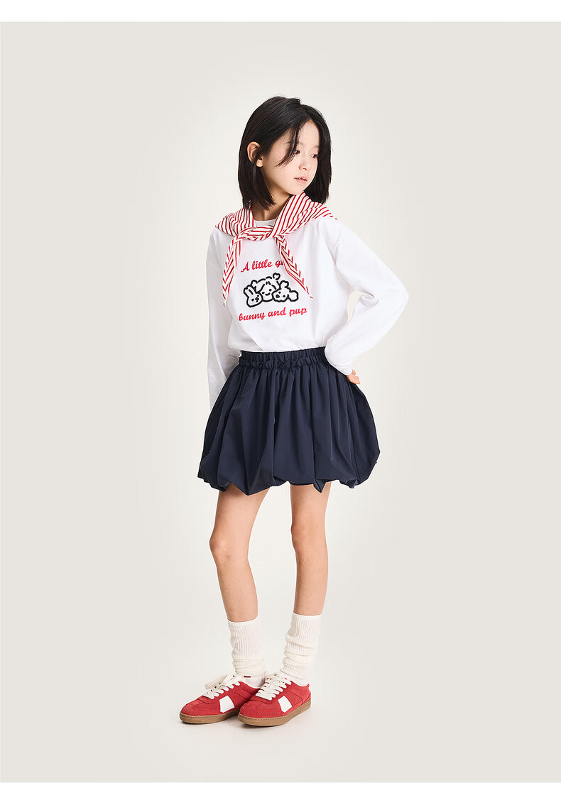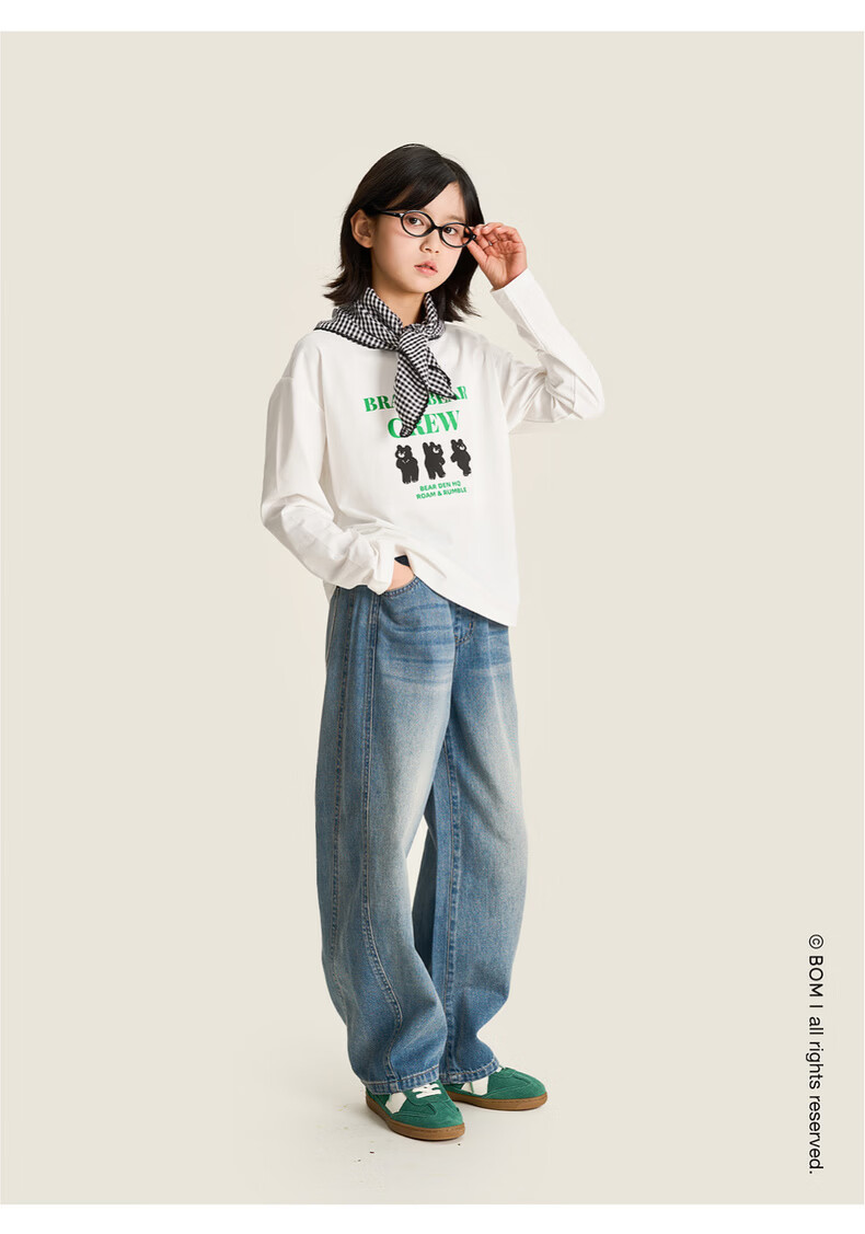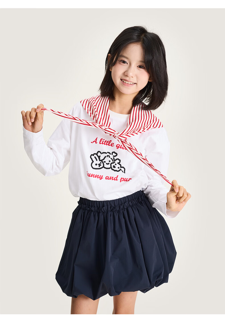 棉叔叔【舒适棉族长袖T恤】棉叔叔女童春季新联名圆领印花长袖T男童2.24 象牙白红色字母 120 120