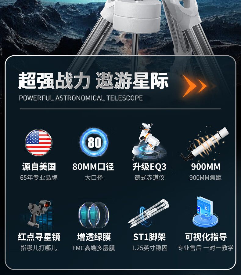 星特朗80DX顶配版80EQ3-P高清高倍观月观景专业级天文望远镜节日礼物