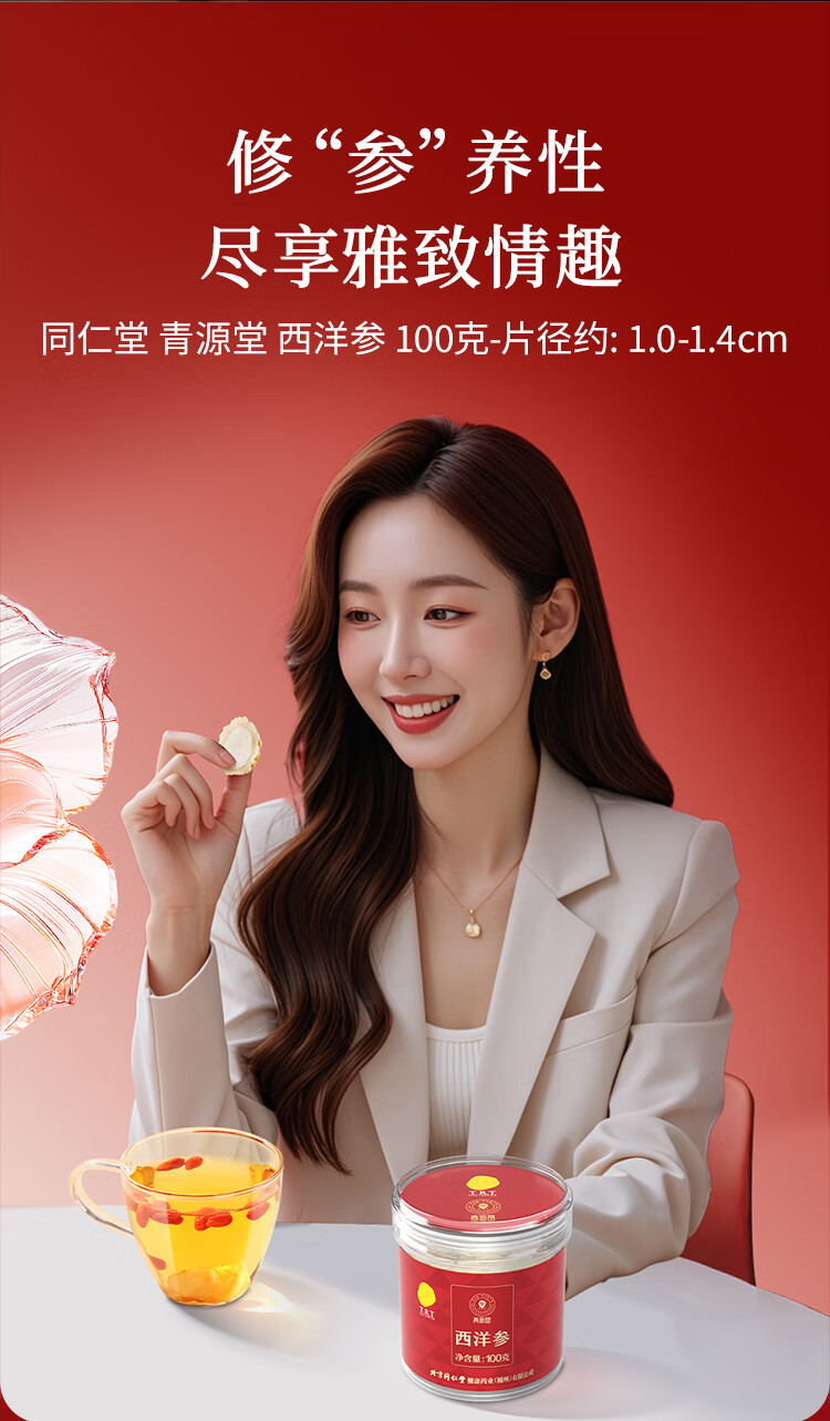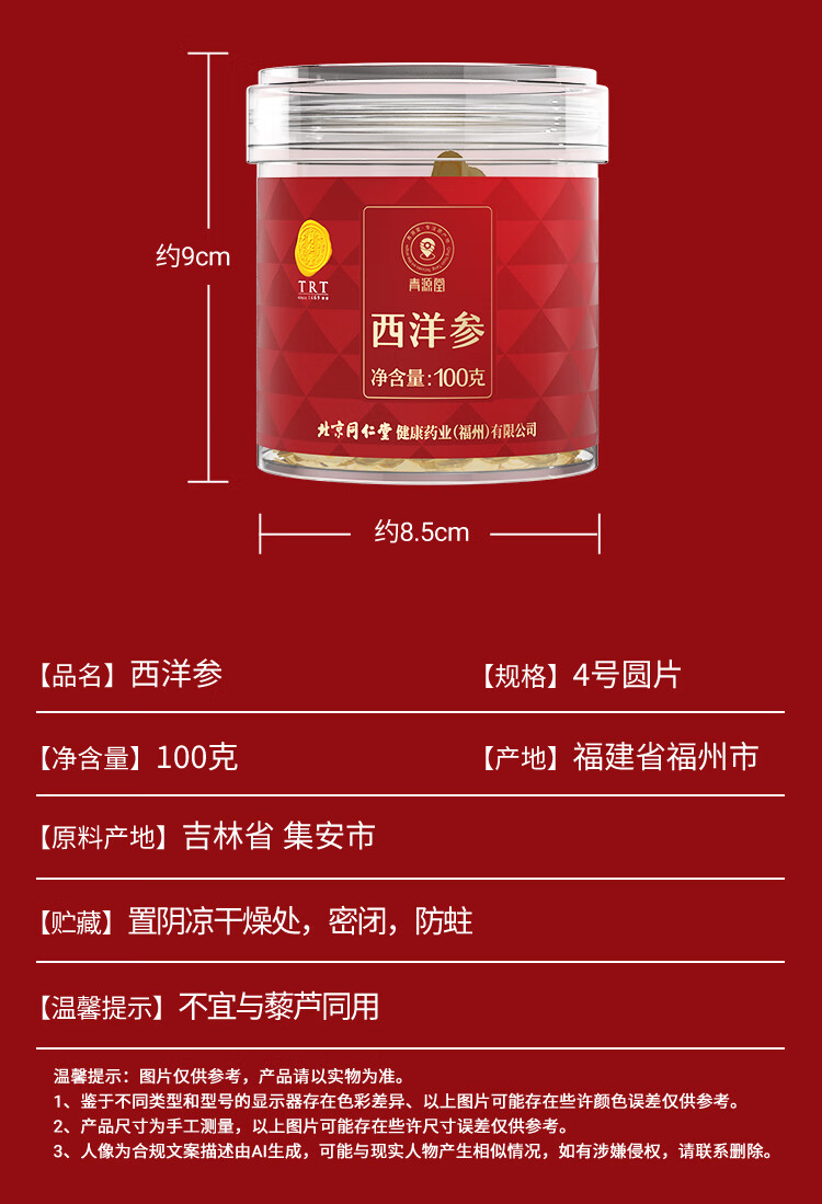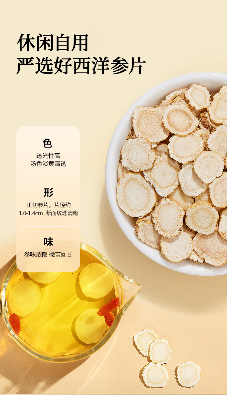 同仁堂品牌 北京同仁堂西洋参片花旗参补品送父母长辈约1.0-1.4cm礼品