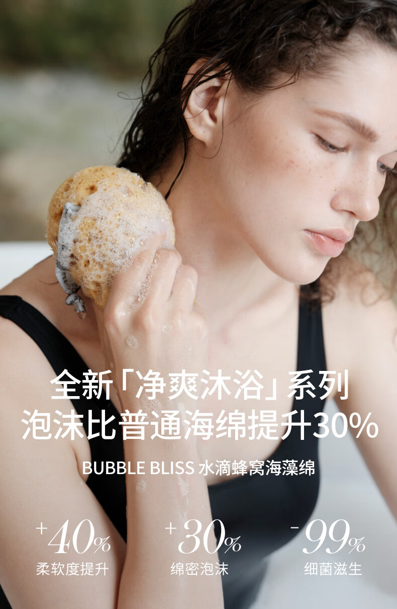 KRRAMEL搓澡海绵沐浴球高档不散超柔软纯棉毛巾100全棉吸水柔软 葡萄紫【毛巾】+柠檬黄【BUBBLE BLISS蜂窝海绵】