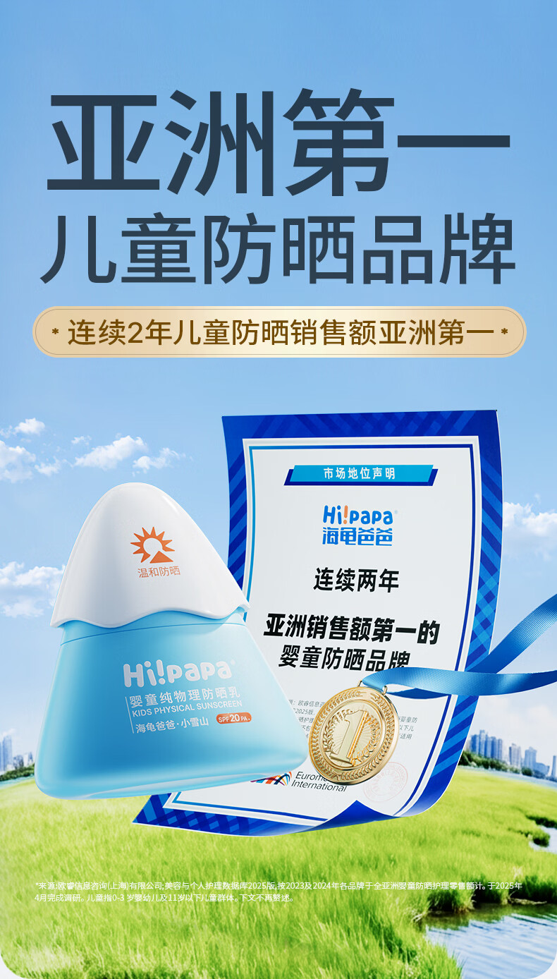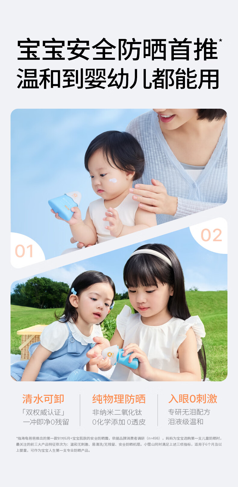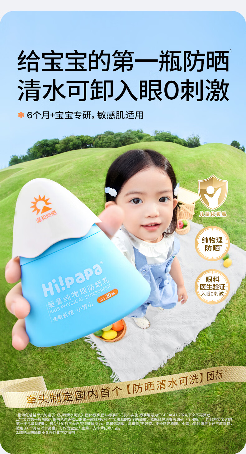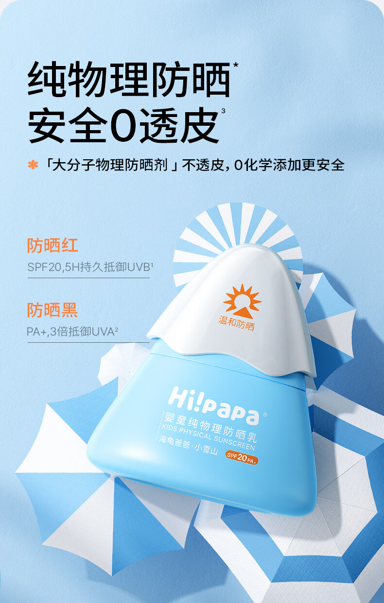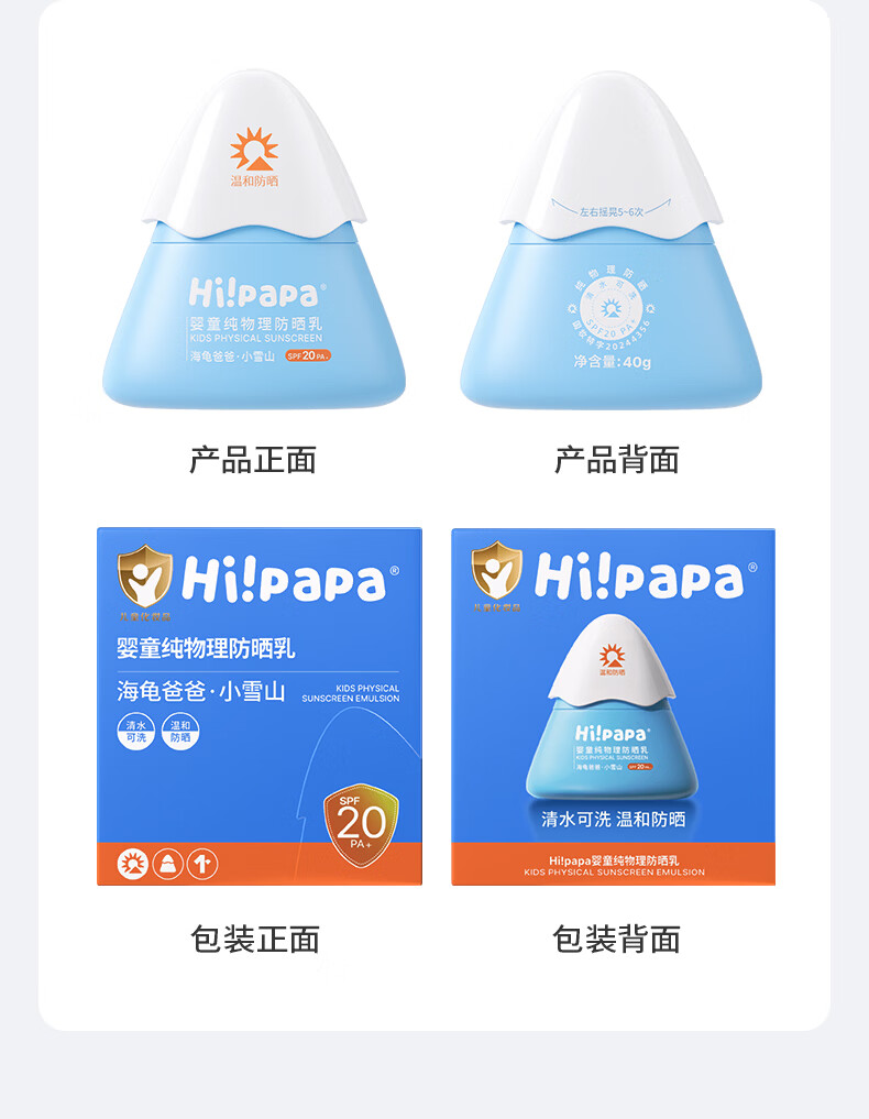 海龟爸爸小雪山儿童物理防晒霜 男女孩夏季 SPF20温和可水洗 小雪山40g*2