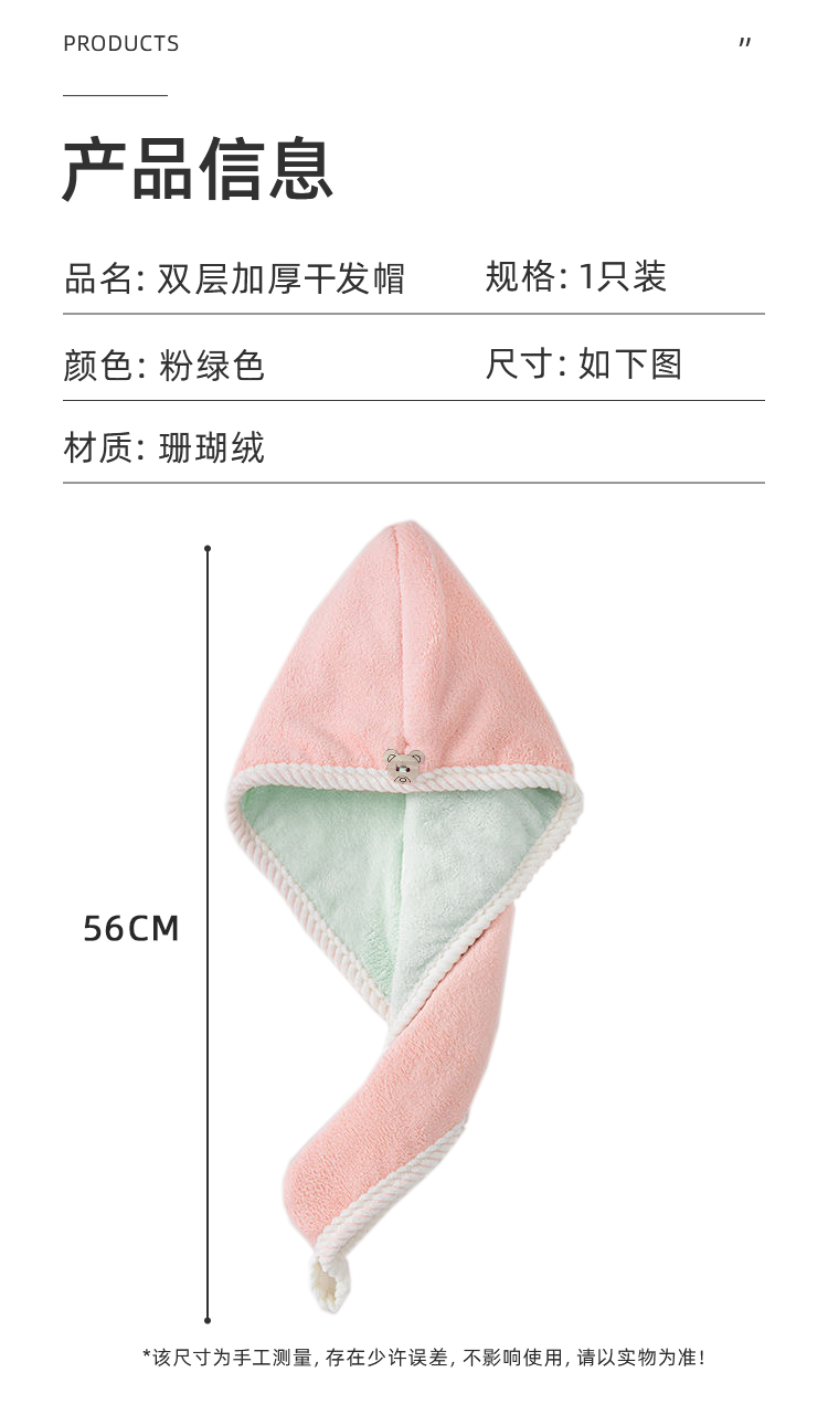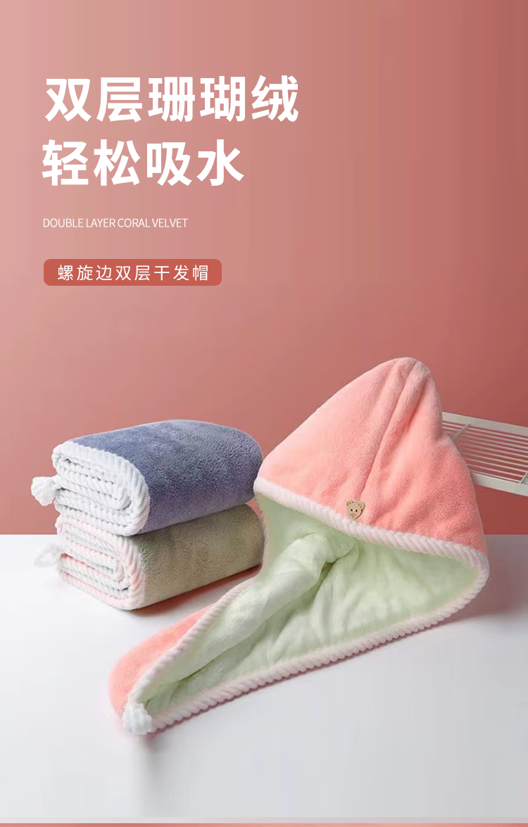 Kaooseen柔软强吸水加厚浴帽雪花绒包头巾速干擦头洗头毛巾双层干发帽 双层加厚干发帽1个