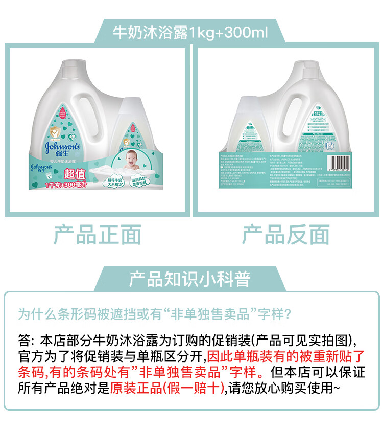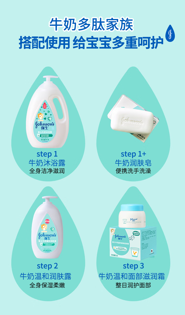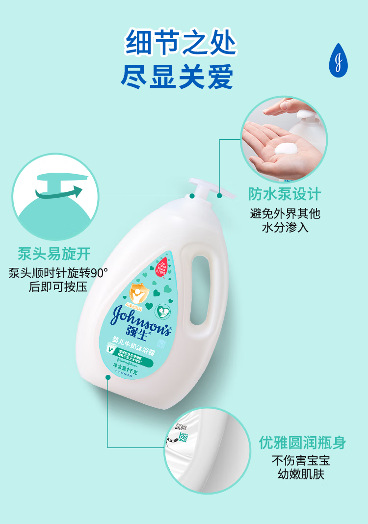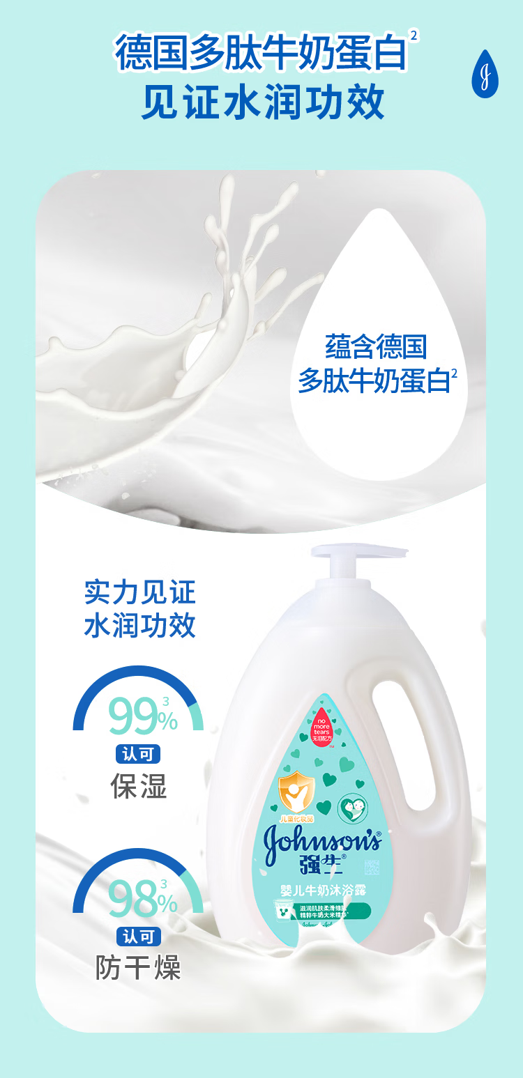 强生(Johnson)婴儿牛奶沐浴露无泪配方 温和清洁新生儿宝宝沐浴乳 【家庭4斤装】牛奶沐浴露1kg*2瓶