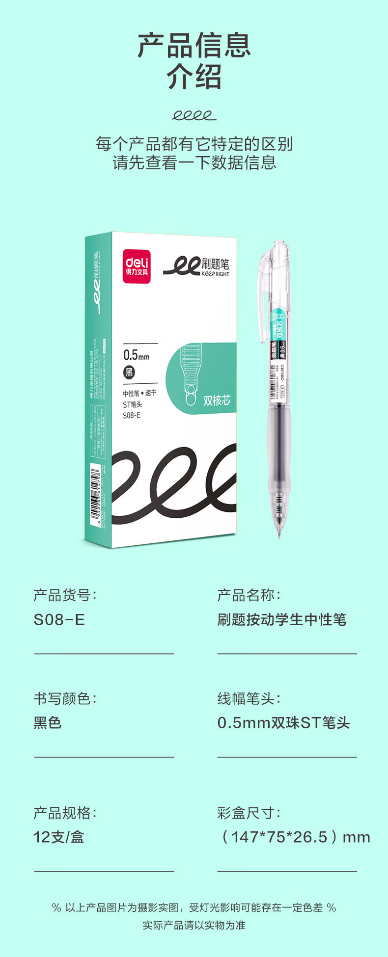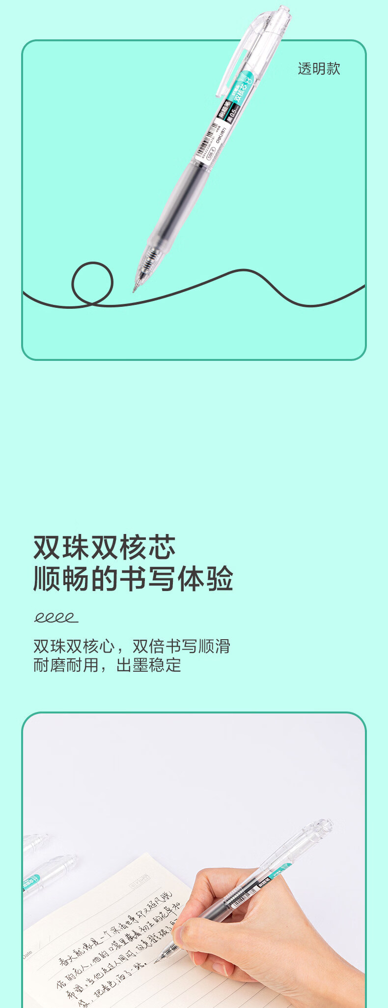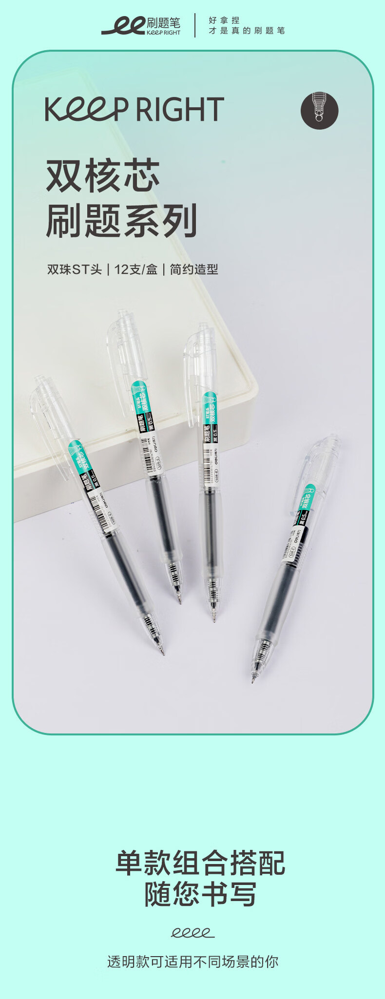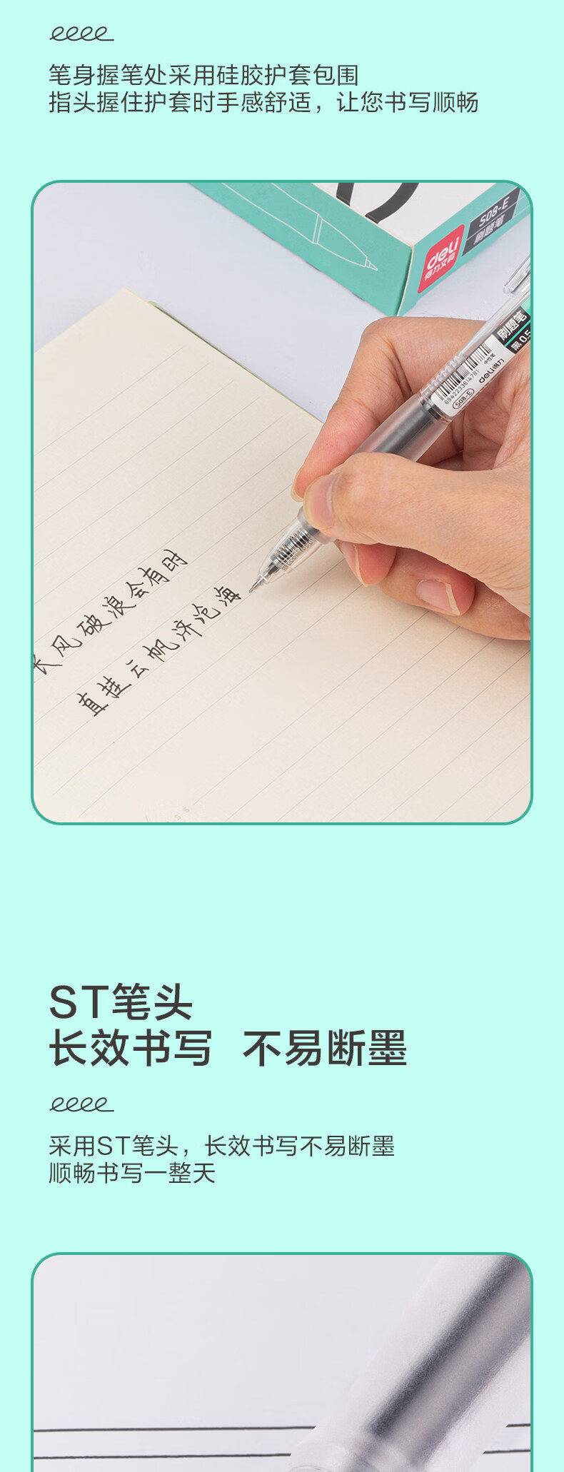 得力(deli)按动中性笔学生考试专用签字笔0.5双珠直液走珠笔刷题写字按压式碳素老师大容量水性笔芯速干黑笔 【6支装】双珠ST头刷题笔 0.5mm