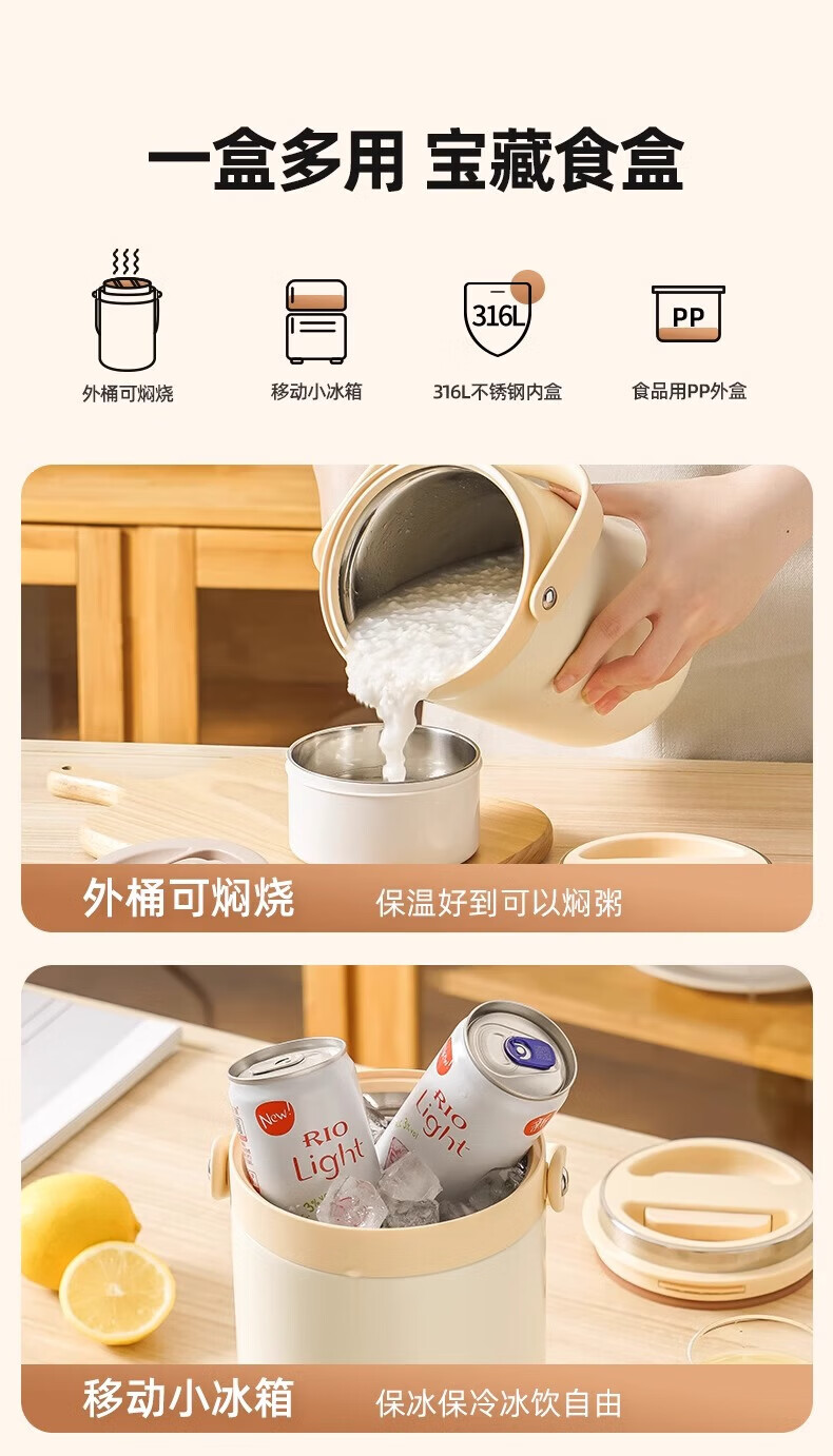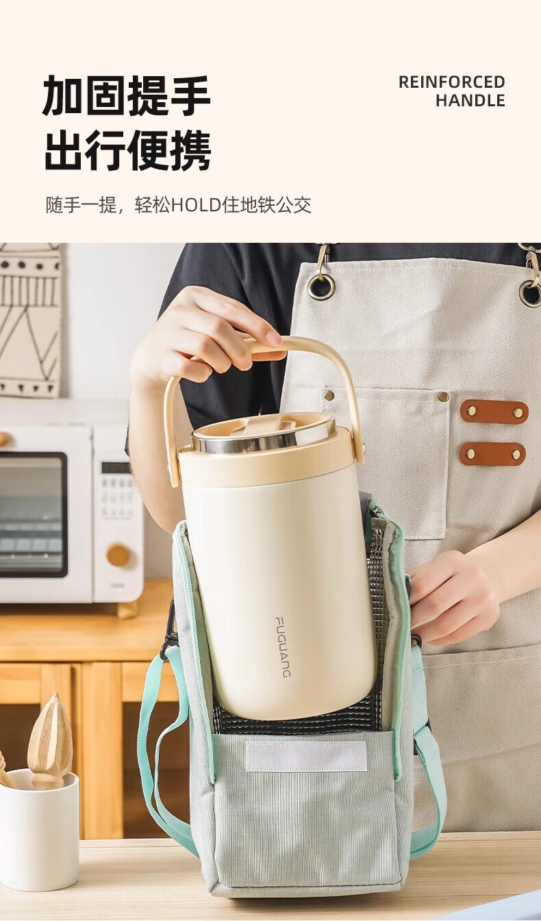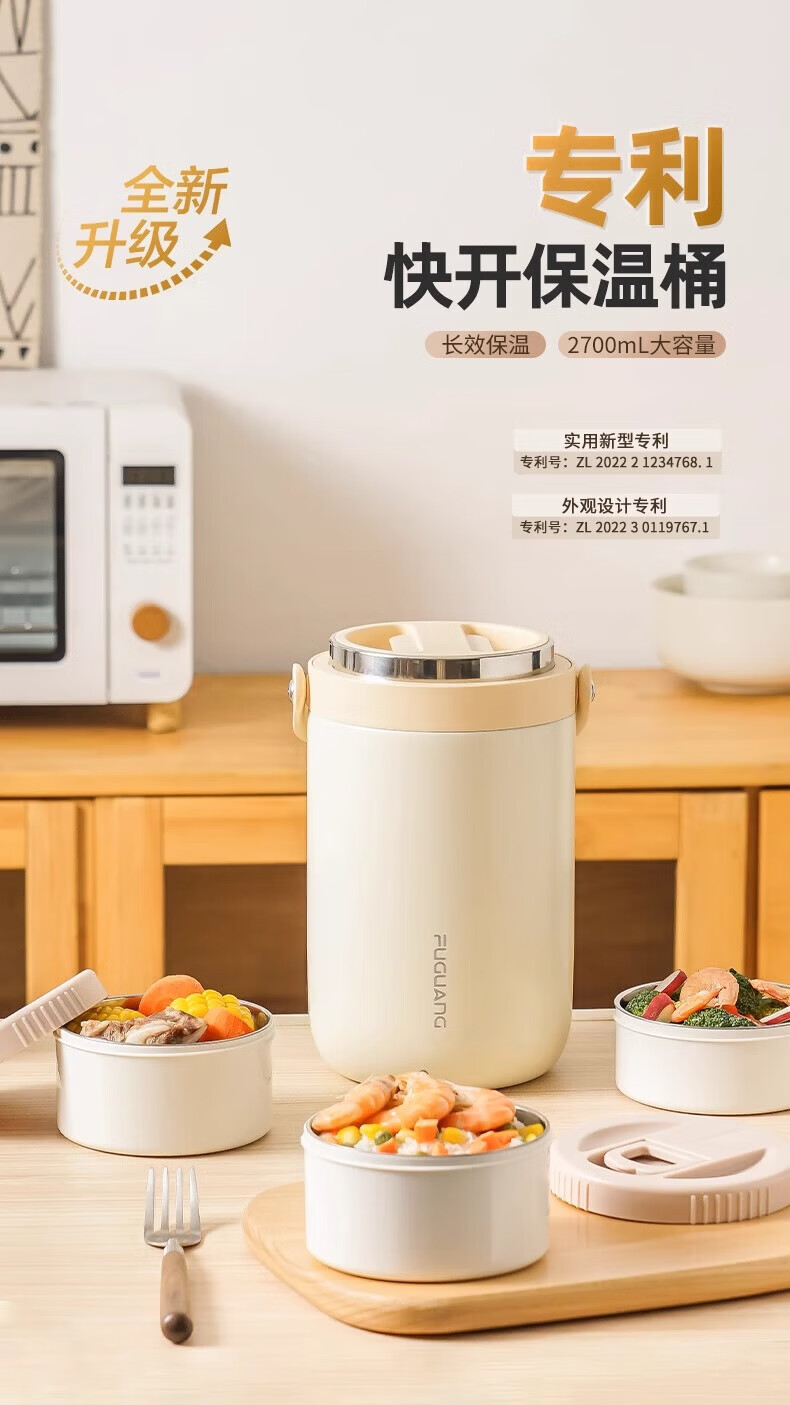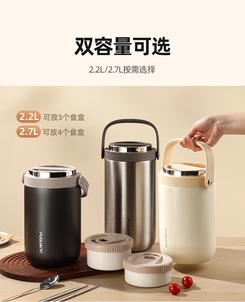 富光保温饭盒便携上班族长效保温饭桶大容量家用不锈钢多层便当盒提锅 灰色2.2L-三层防烫餐盒+保温包