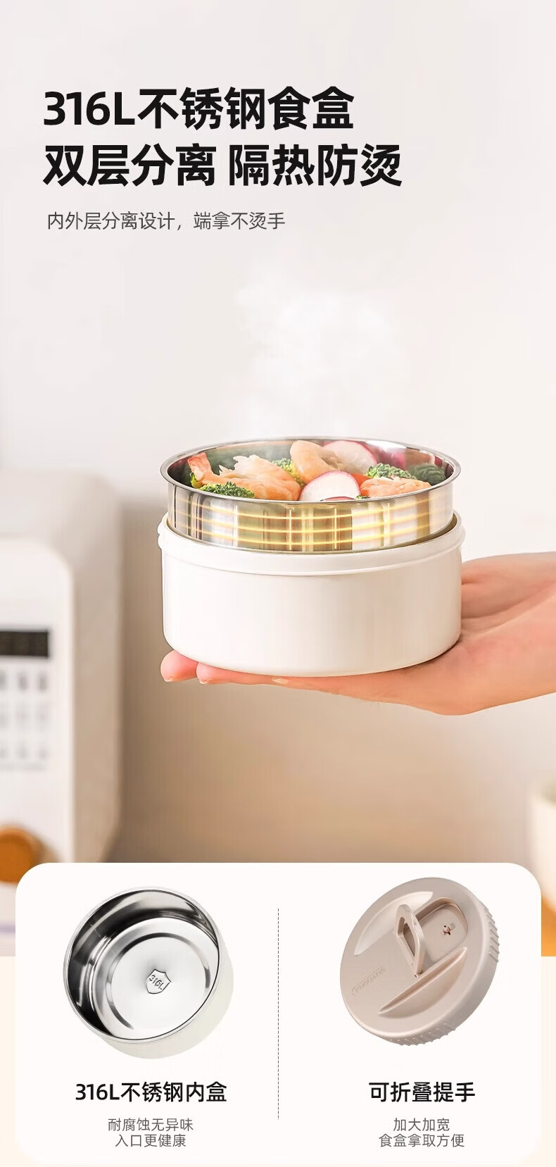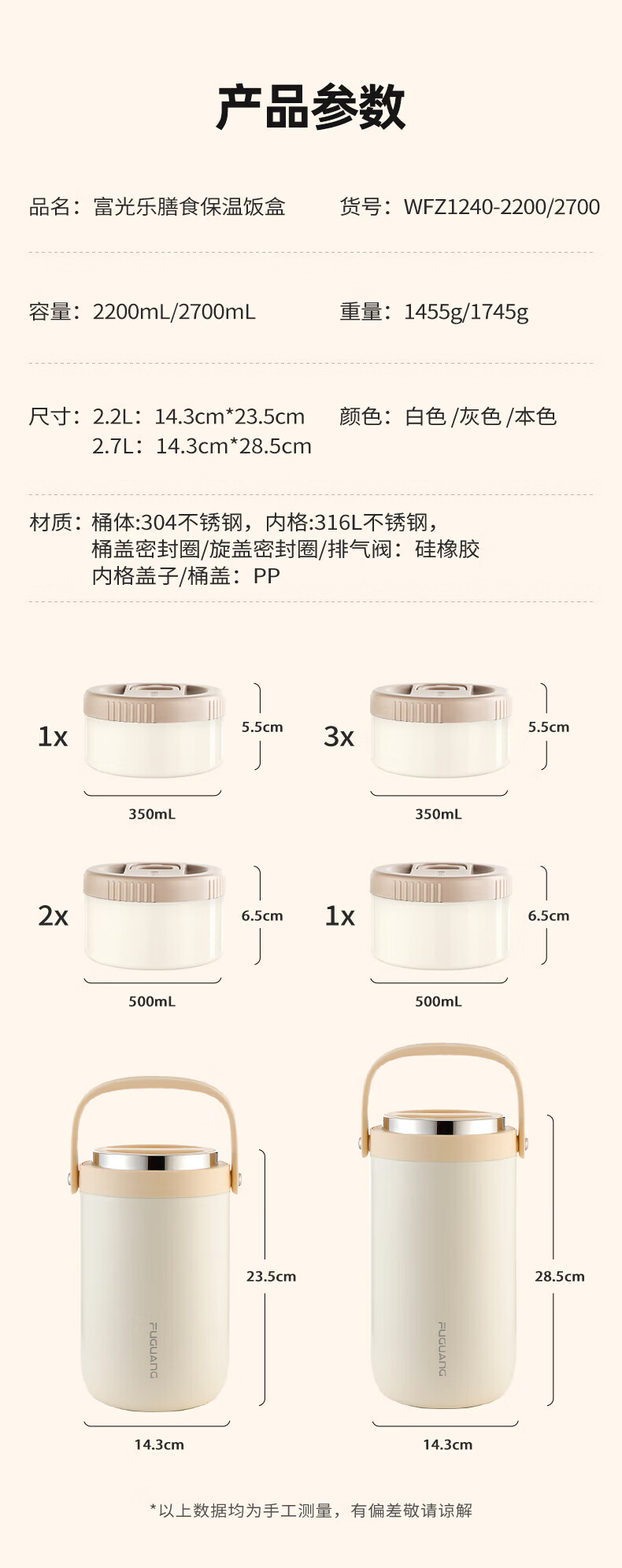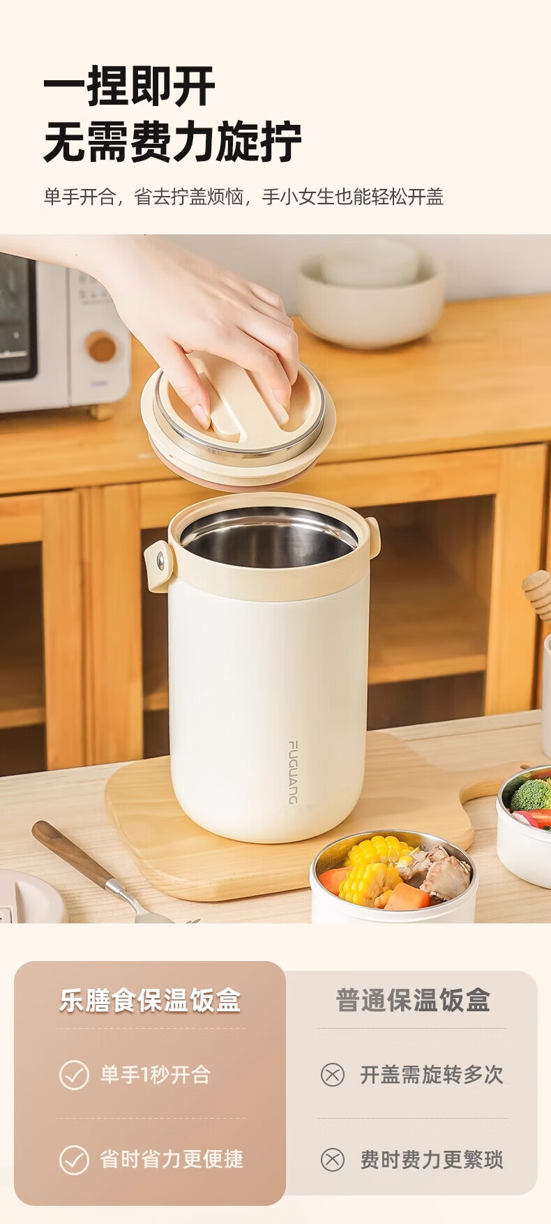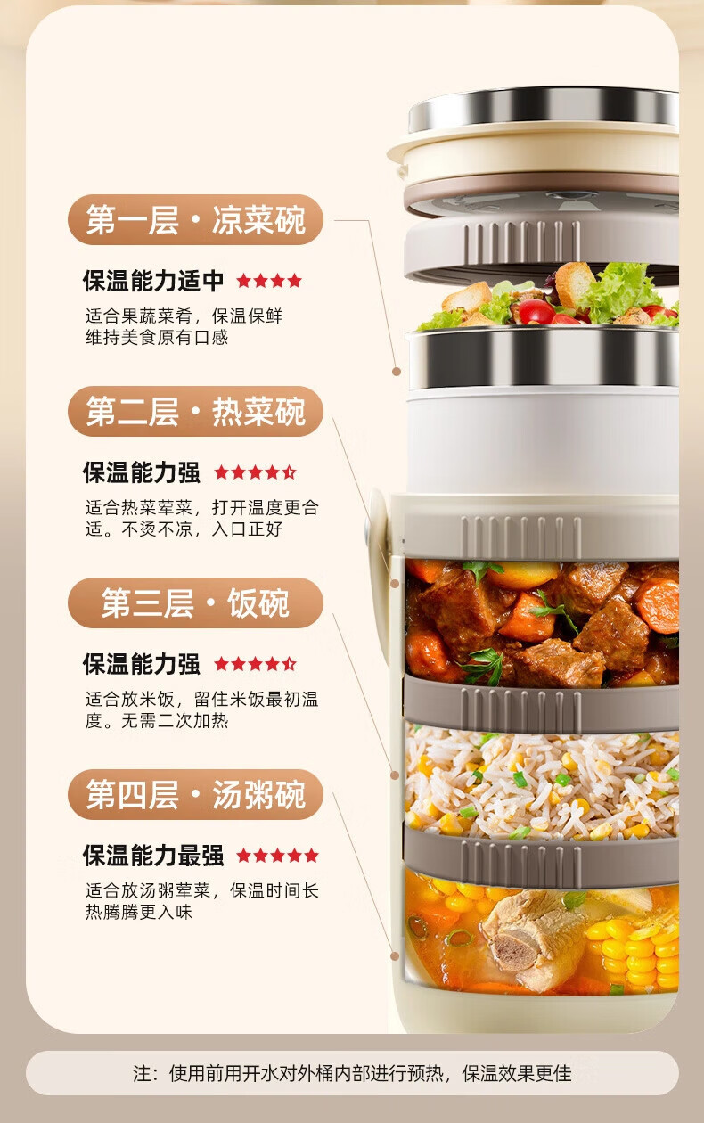 富光保温饭盒便携上班族长效保温饭桶大容量家用不锈钢多层便当盒提锅 灰色2.2L-三层防烫餐盒+保温包