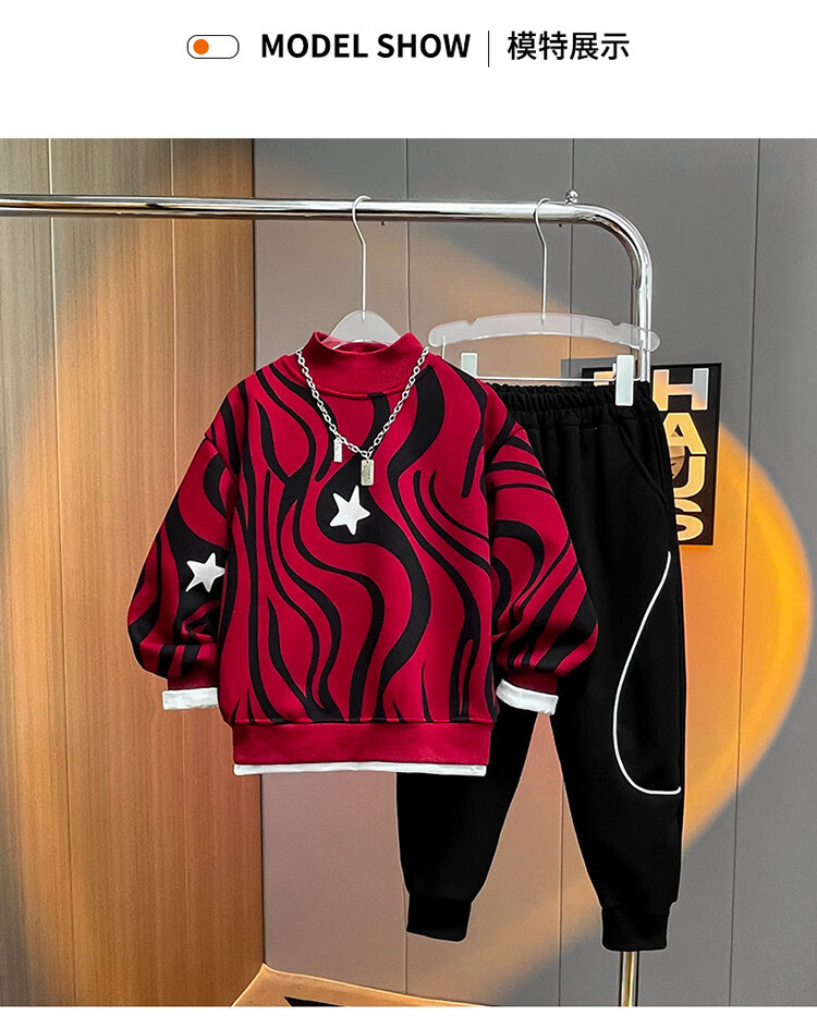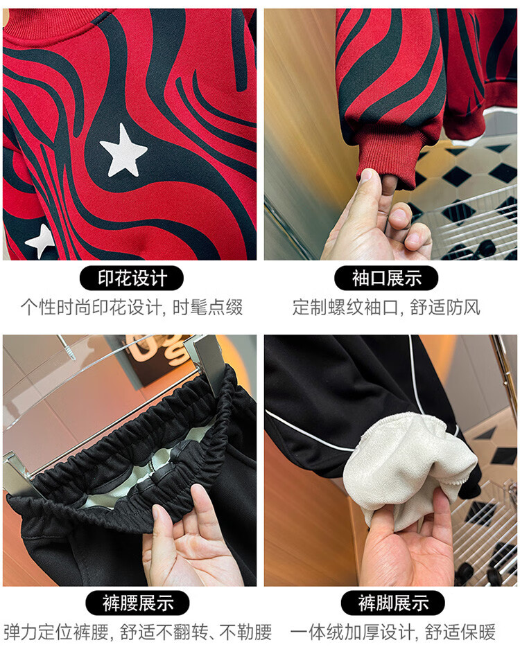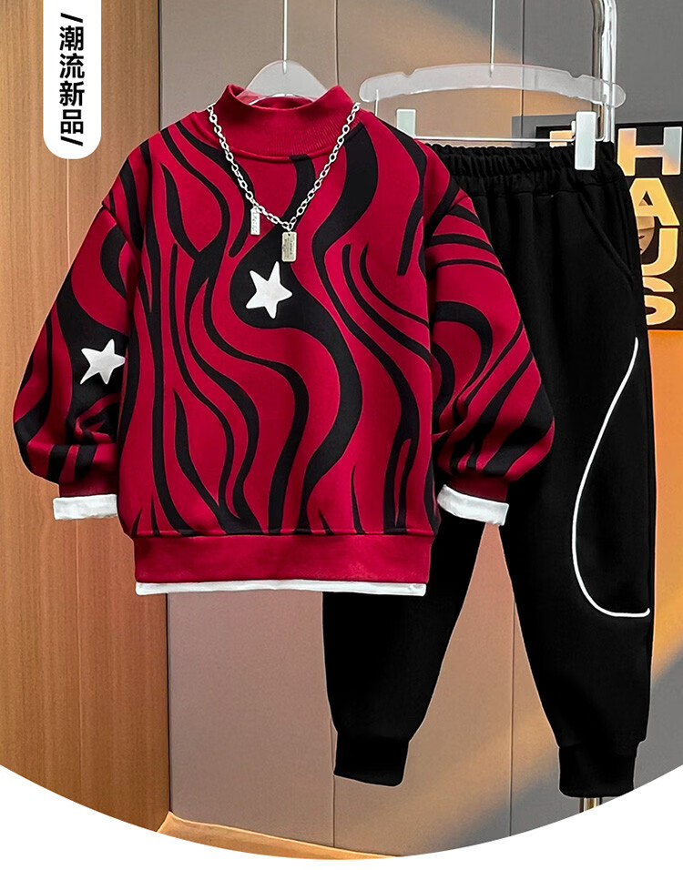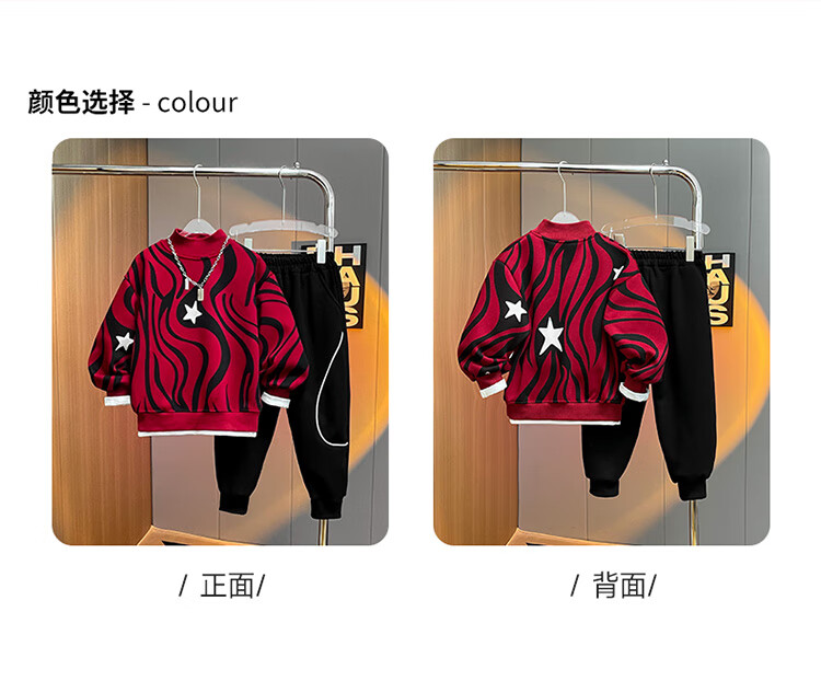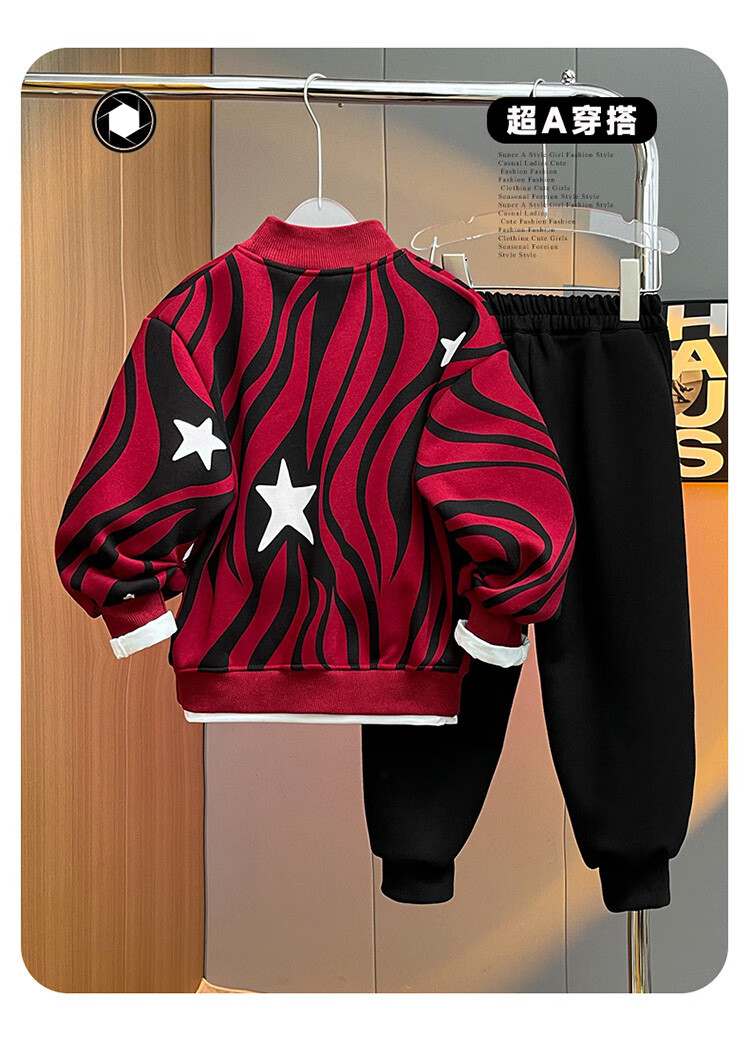 迪士尼(Disney)男童秋冬套装2025新款儿童加绒休闲卫衣酷帅洋气大男孩秋冬衣服洋 红色三杆印花加绒套装 150cm