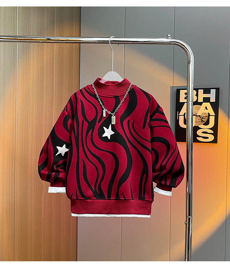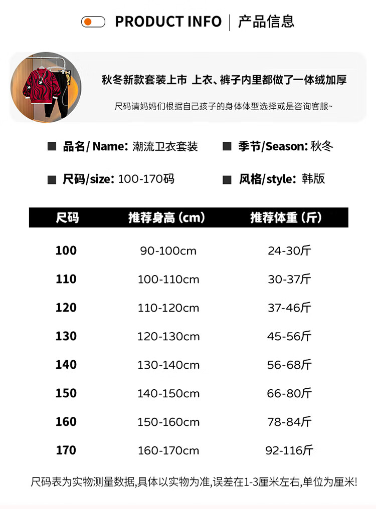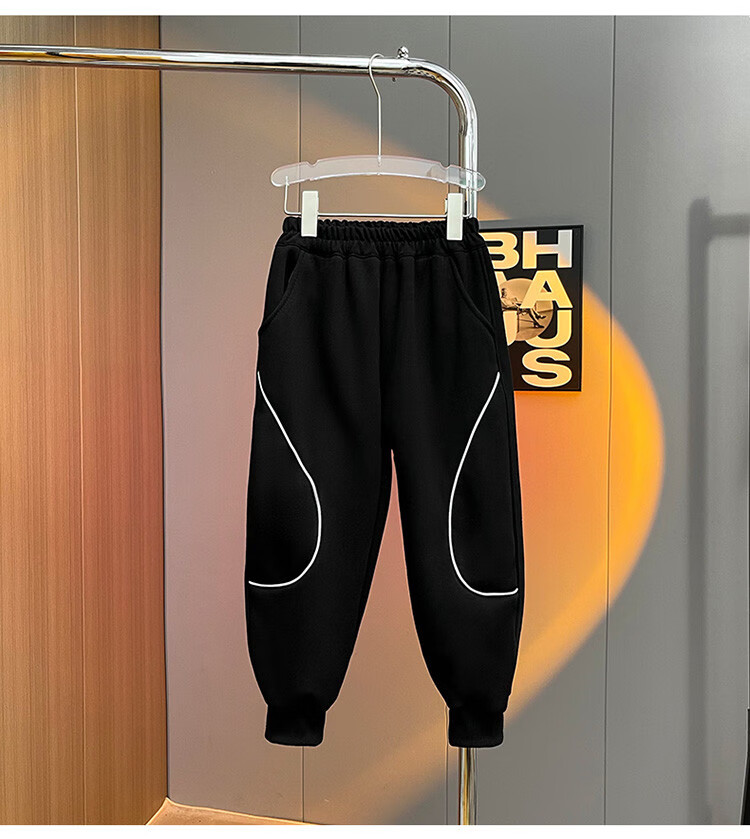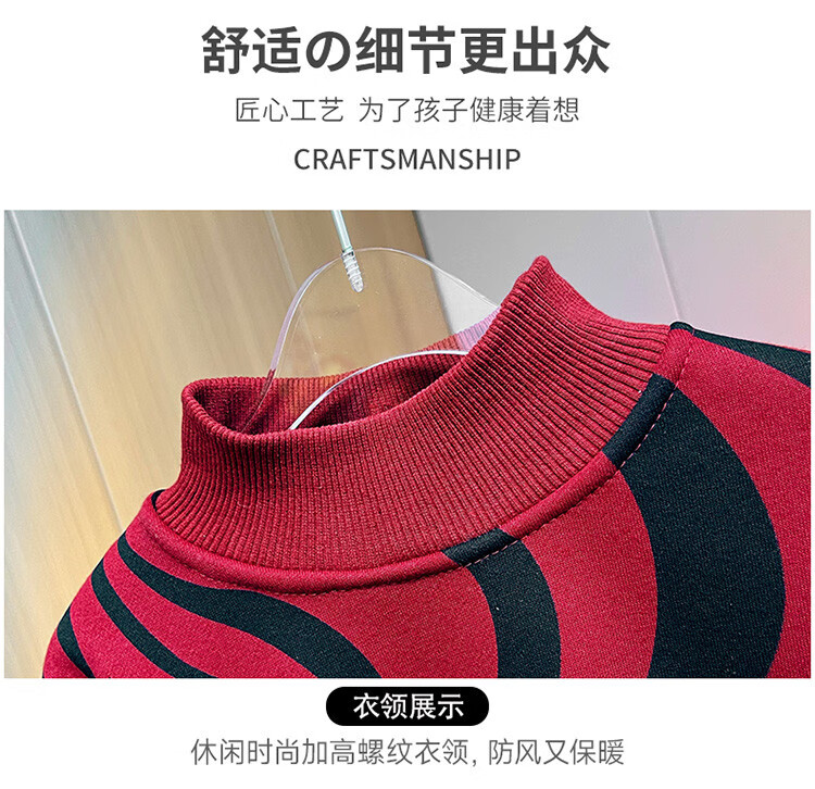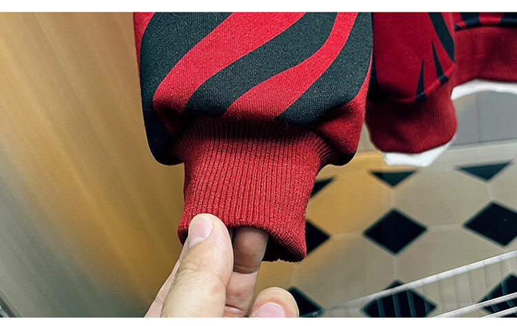 迪士尼(Disney)男童秋冬套装2025新款儿童加绒休闲卫衣酷帅洋气大男孩秋冬衣服洋 红色三杆印花加绒套装 150cm