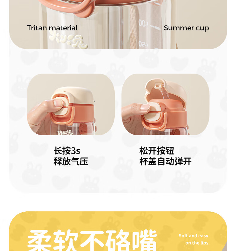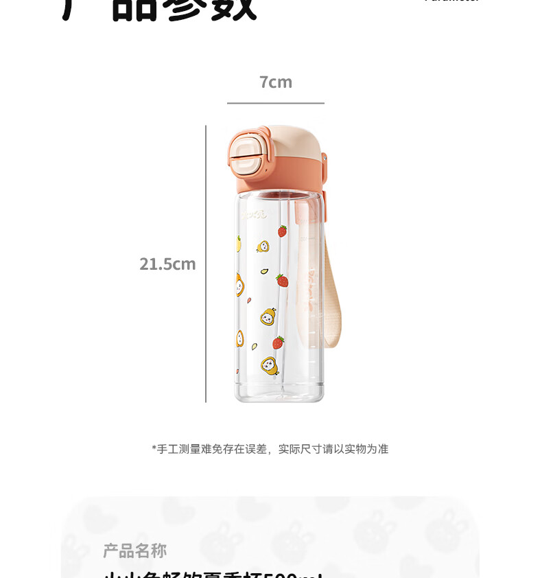 火火兔儿童水杯夏天便携直饮吸管杯宝宝喝水喝奶幼儿园上学喝水壶 500ml