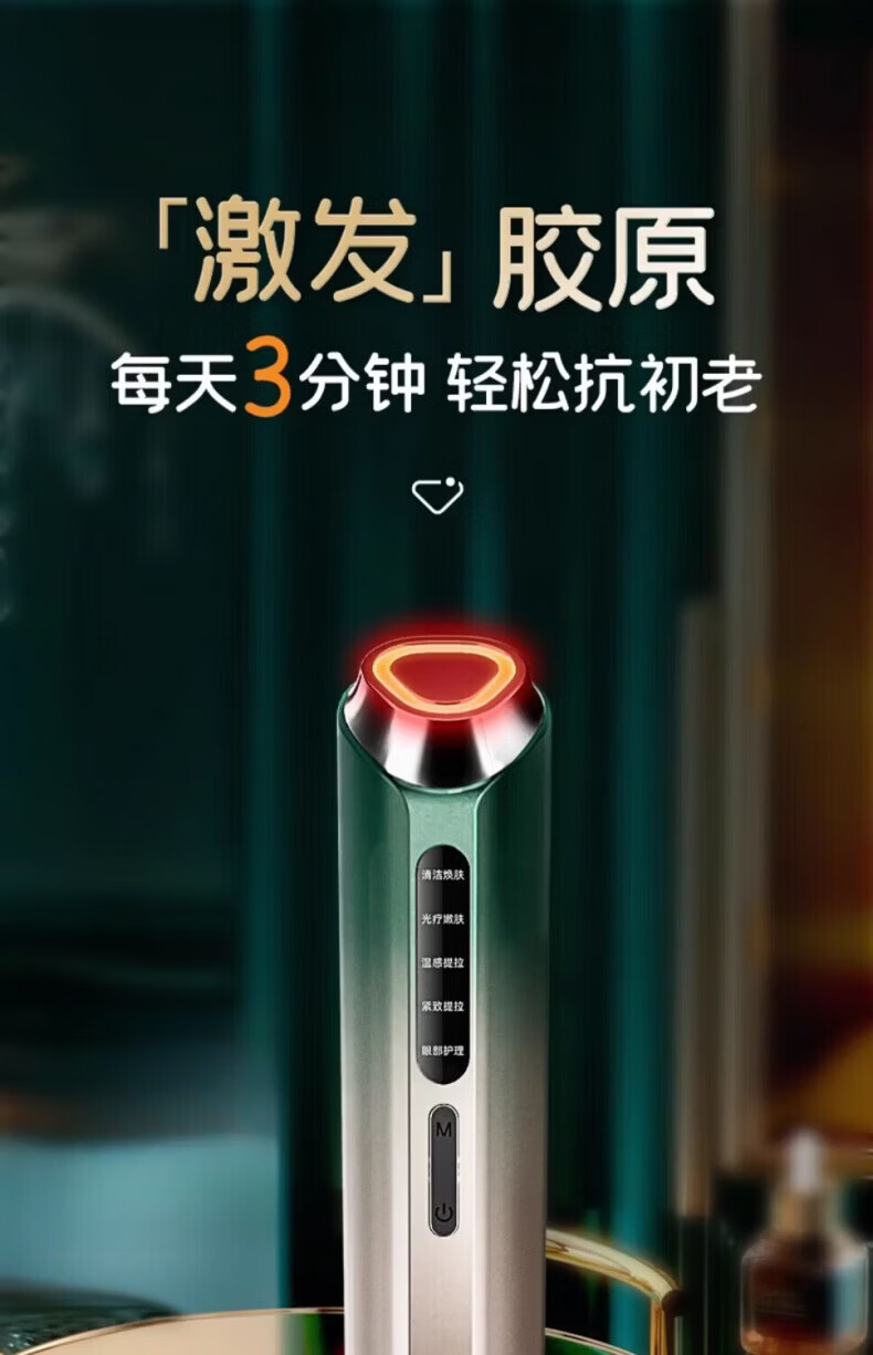 TRUHEIM【提拉下颚线丨减淡黑眼圈】德国嫩肤美容仪脸部紧致按摩导入仪祛皱清洁毛孔光子嫩肤仪女神节礼品 【翠绿色】嫩肤美容仪 【嘭弹苹果肌 淡化三大纹】