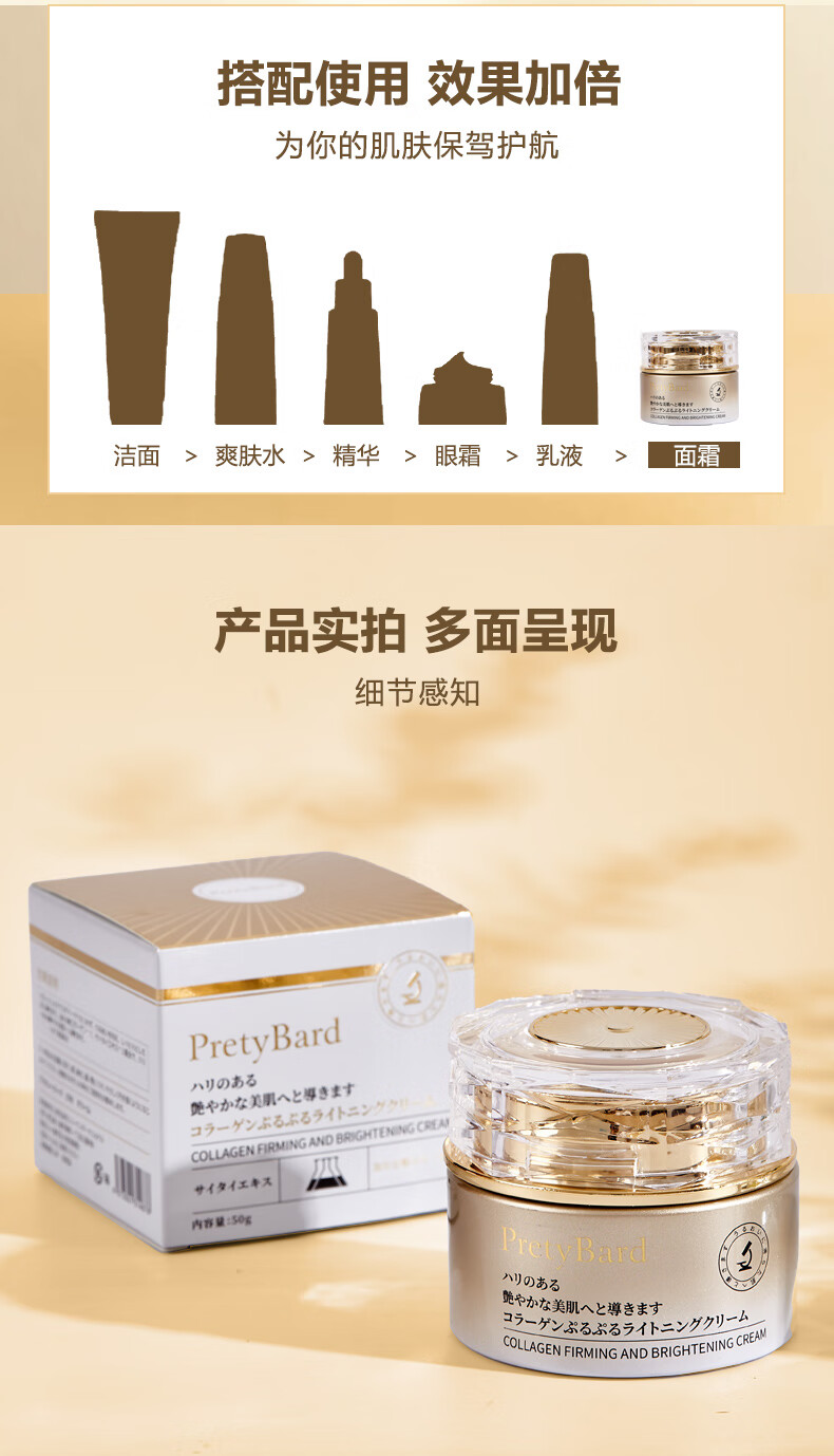 PRETYBARD进口胶原弹力面霜秋冬抗皱抗紧致补水保湿去黄提亮淡纹修复精华霜 胶原蛋白弹力精华面霜*2瓶