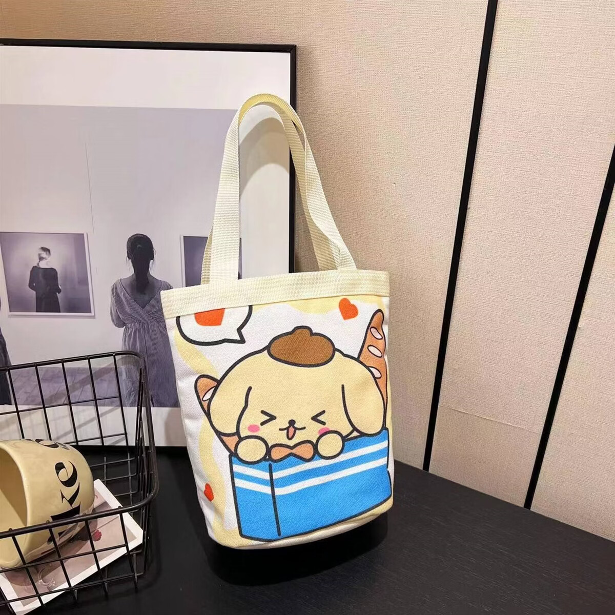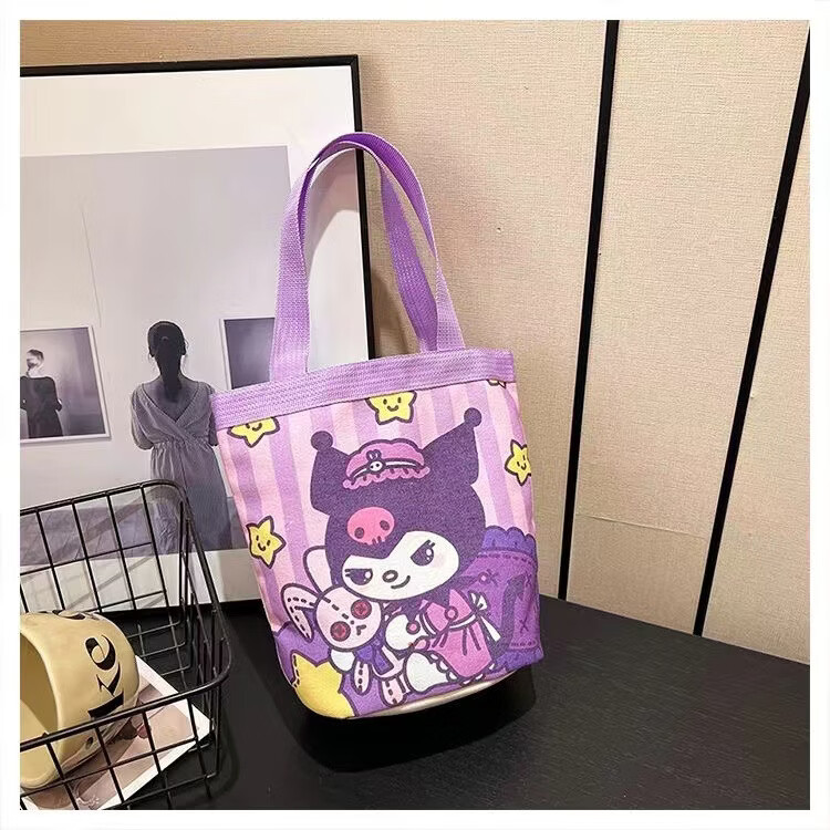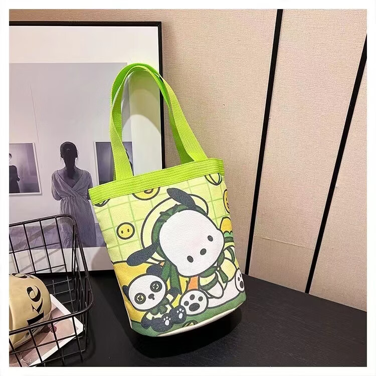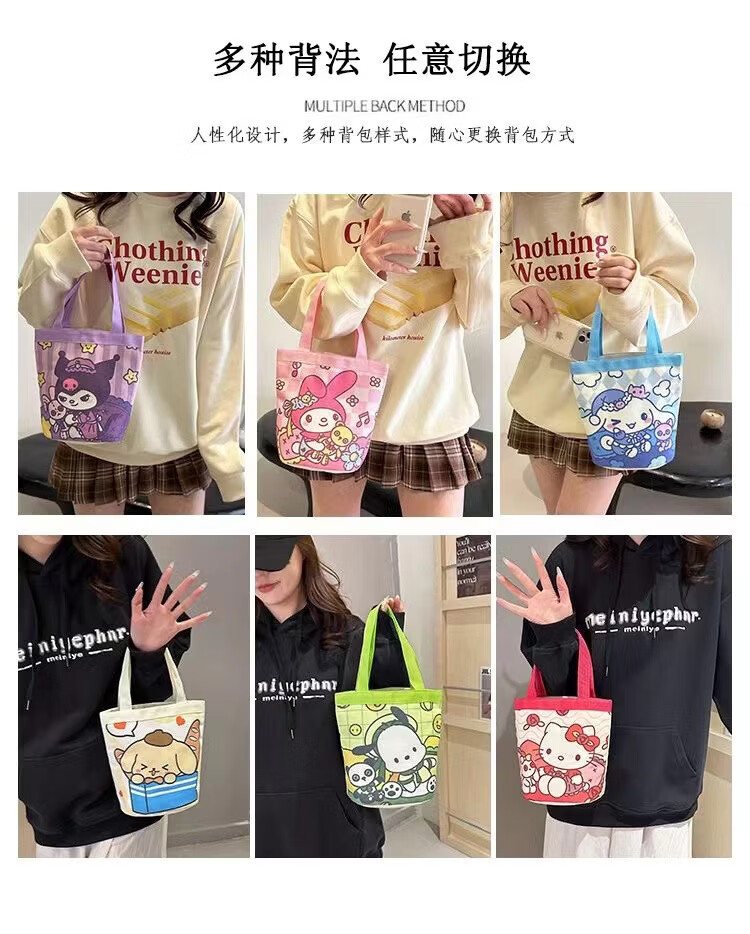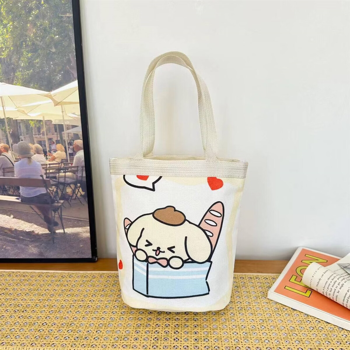 2024新款上班族女外出迷你手提圆筒拎袋子便当饭盒零食帆布水桶包 红色兔子