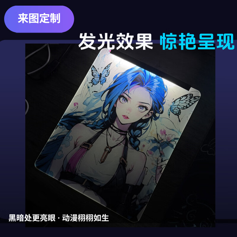 魅雅图升级版光伏玻璃鼠标垫微刻蚀FPS专业硬质电竞玻璃垫定制耐用顺滑 来图定制 光伏玻璃鼠标垫30*35(发光版)
