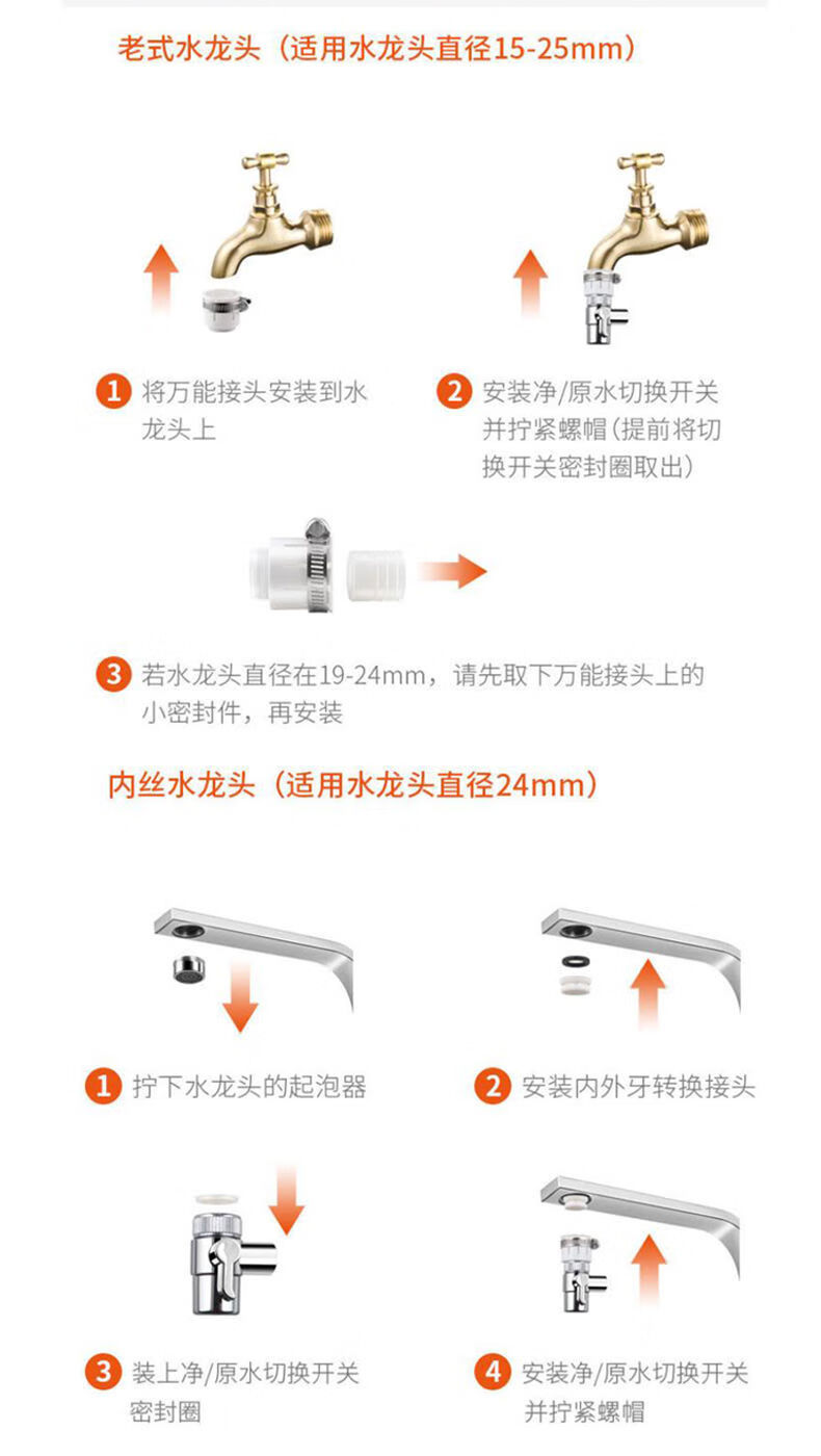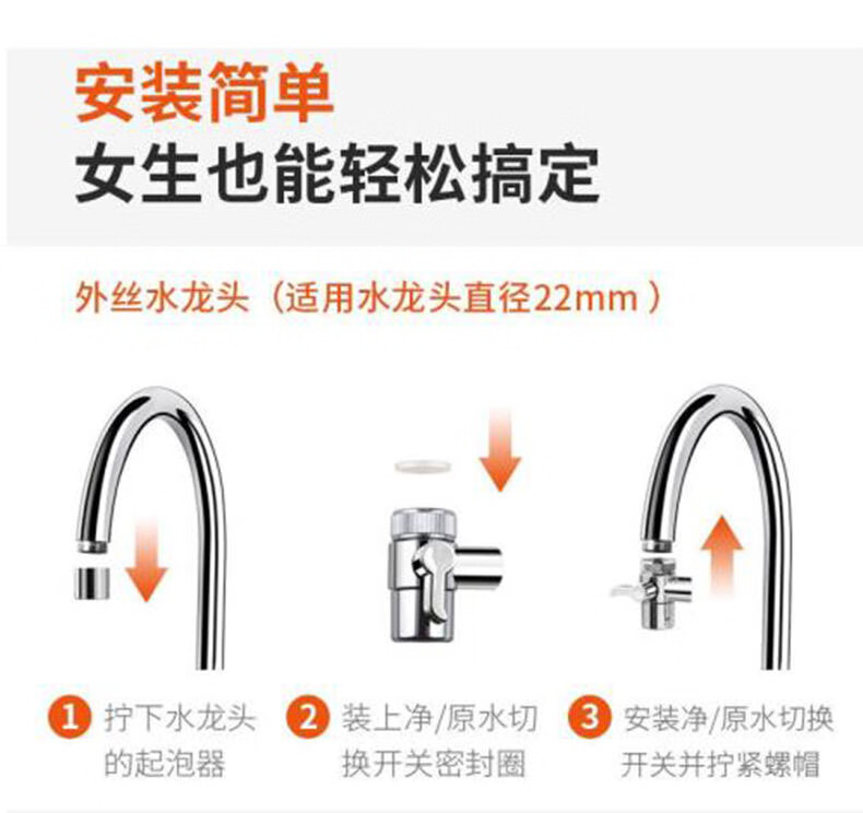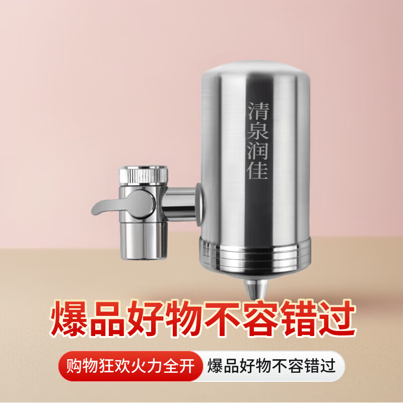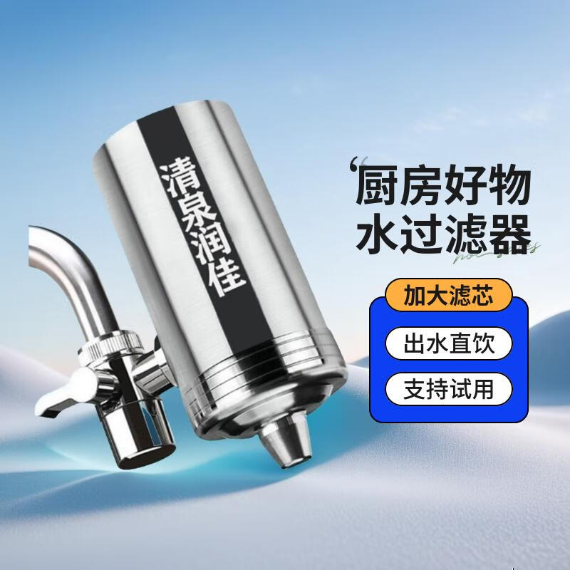 清泉润佳净水器家用直饮不锈钢水龙头过滤器自来水余氯过滤净化直播同款 陶瓷滤芯款一机四芯送安装接头