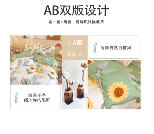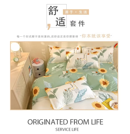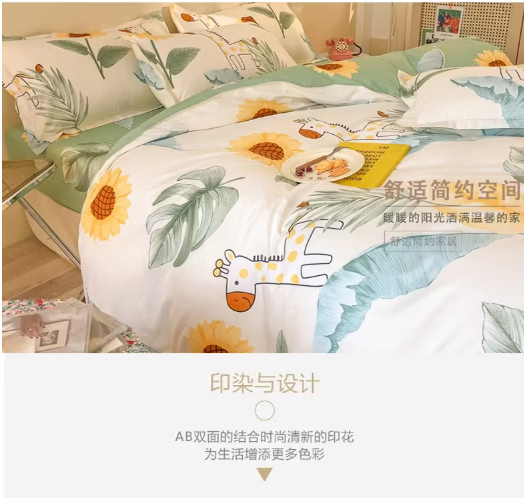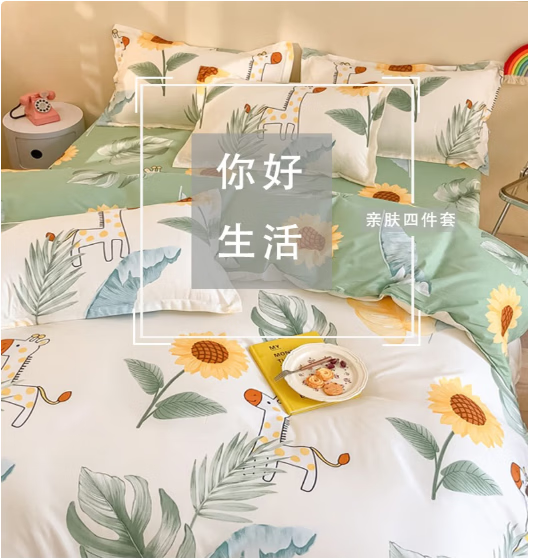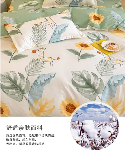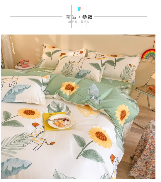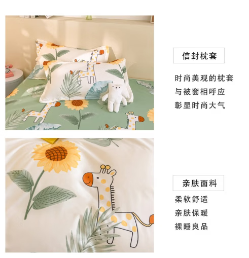 唐纳家纺裸睡级水洗棉四件套亲肤透气床单被套床单款床上用品 水洗棉四件套-阳光小鹿 【柔软舒适 吸湿透气】 1.8m 床单款 (被套200*230cm)