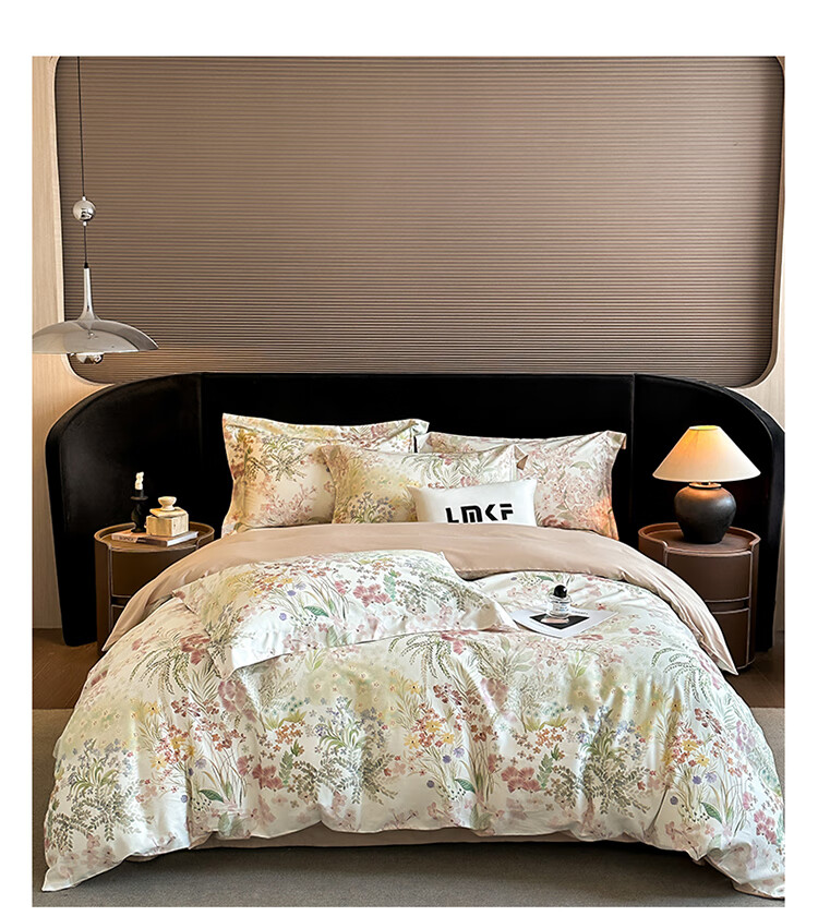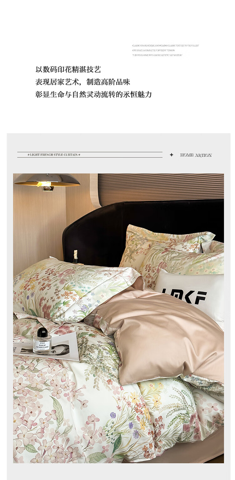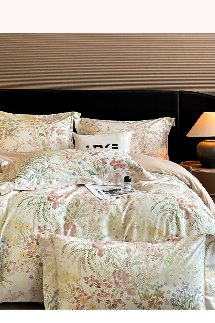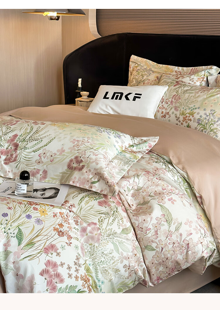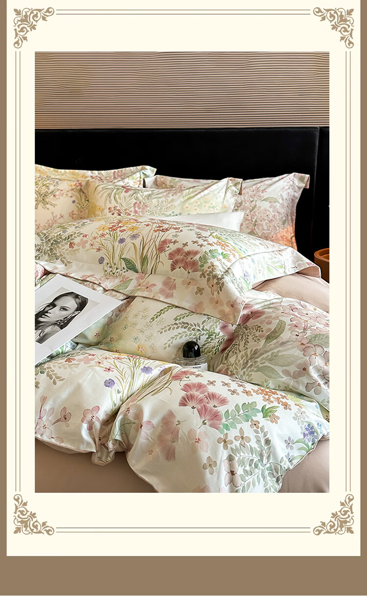 水星系列家纺美式印花长绒棉100支四件套纯棉全棉床单被套床上用品床笠款田园4 伊犁花甸 床单款 1.8M床笠四件套(200*230