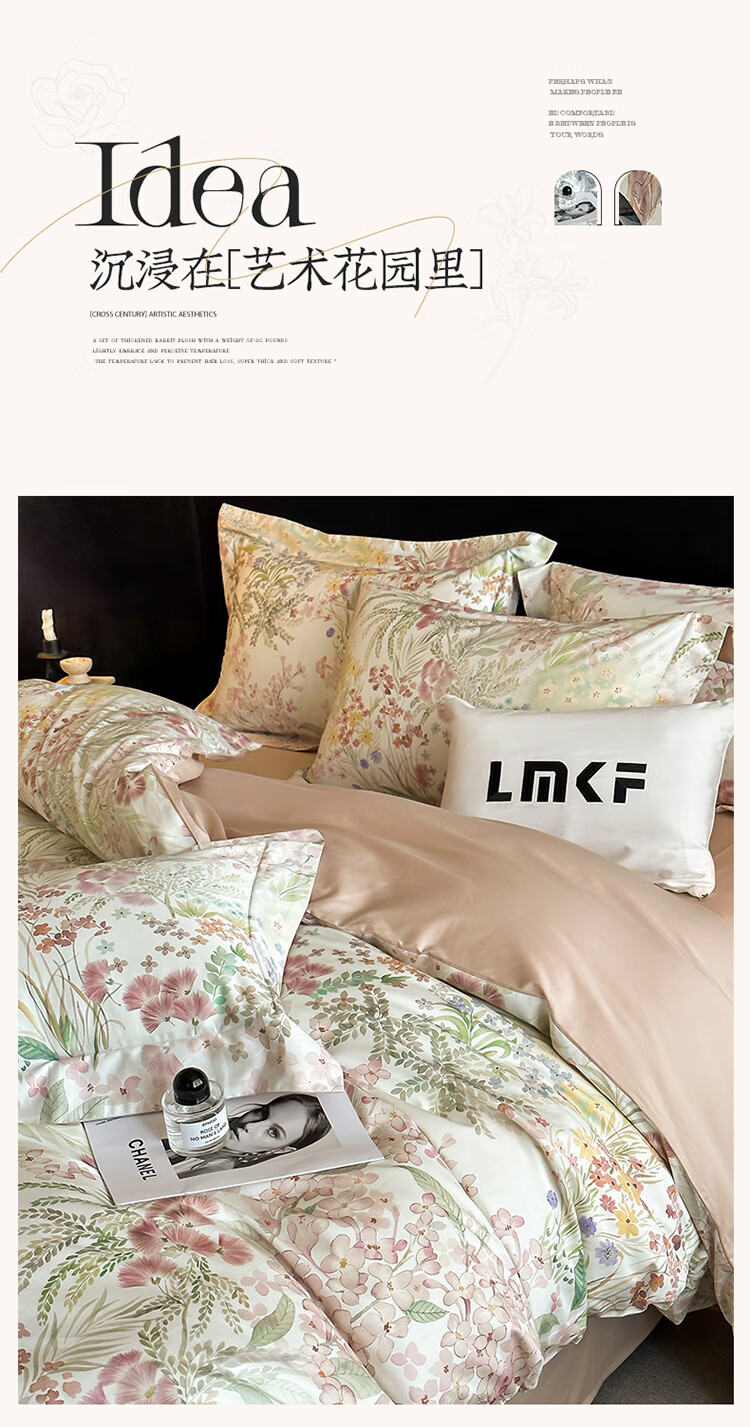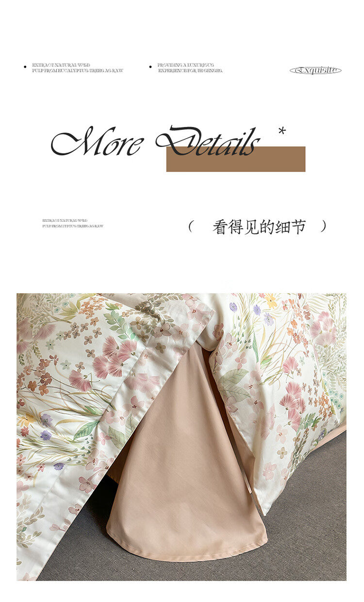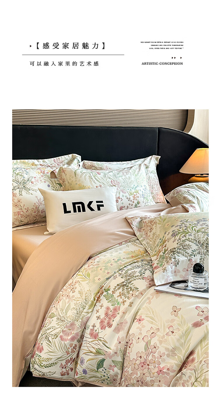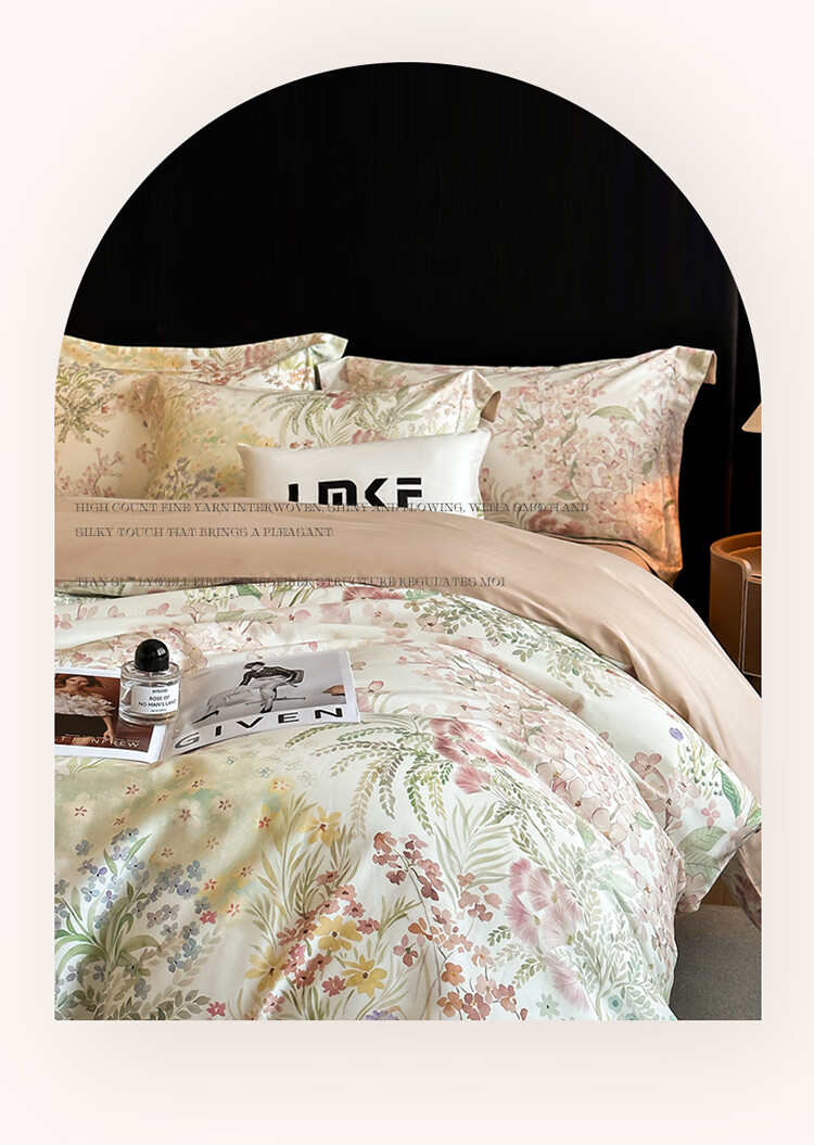 水星系列家纺美式印花长绒棉100支四件套纯棉全棉床单被套床上用品床笠款田园4 伊犁花甸 床单款 1.8M床笠四件套(200*230