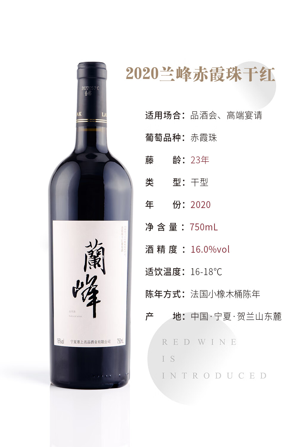 兰峰干红葡萄酒 宁夏贺兰山高端红酒 果香浓郁赤霞珠16度宴请送礼礼盒 兰峰赤霞珠【单支瓶装】
