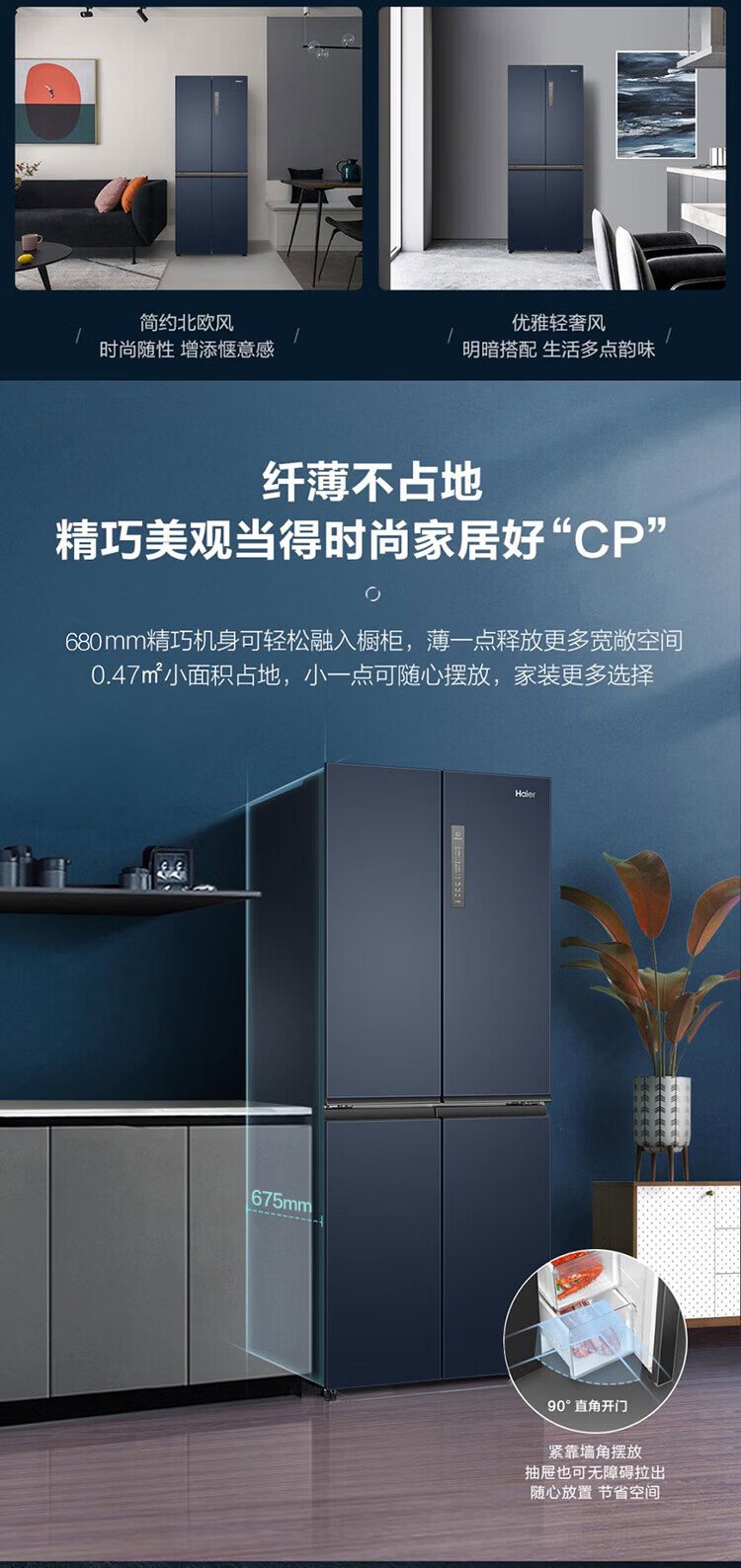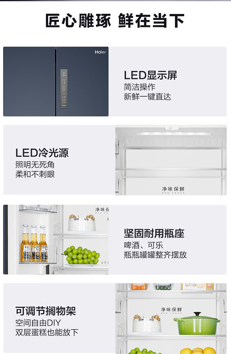 海尔(Haier)冰箱659升十字门双开门对开门家用超大容量一级能效双变频风冷无霜节能保鲜电冰箱 【659升冰雪白】EPP净系统+阻氧干湿分储