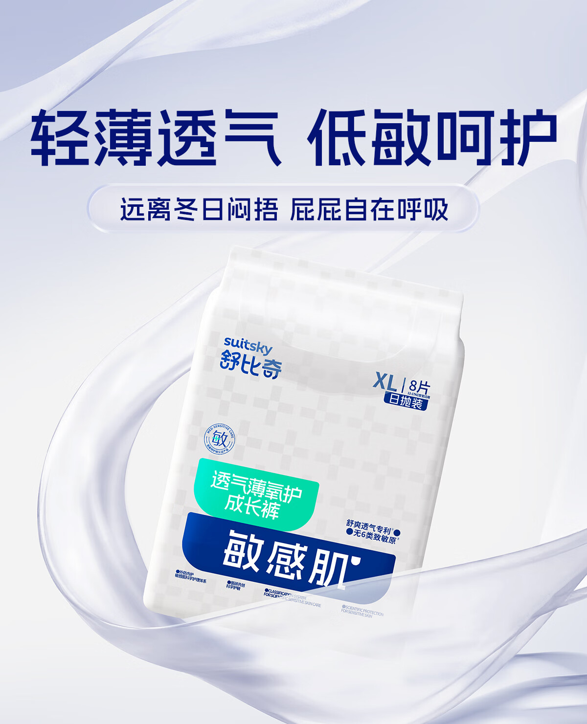 舒比奇透气薄氧护日抛装敏感肌成长裤XL码8片体验装