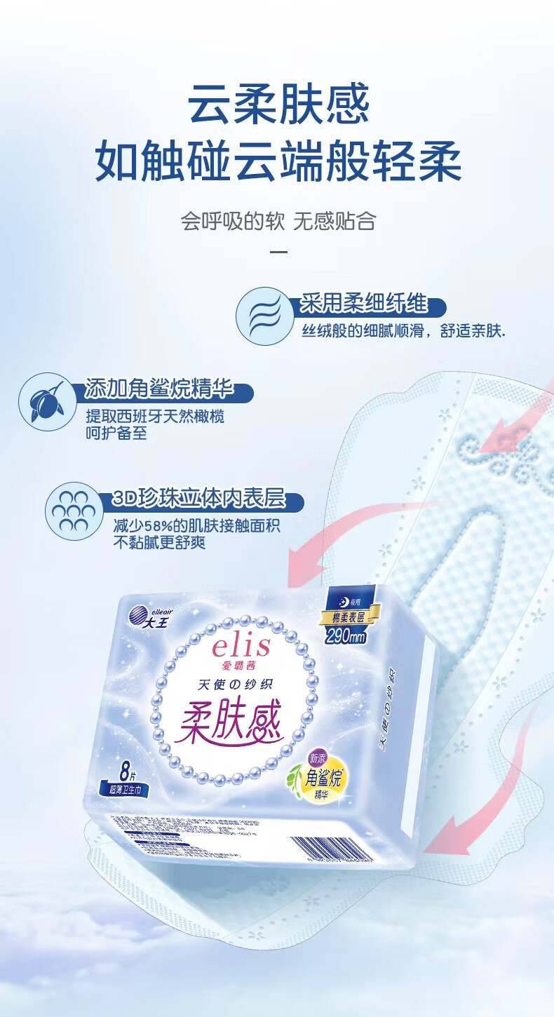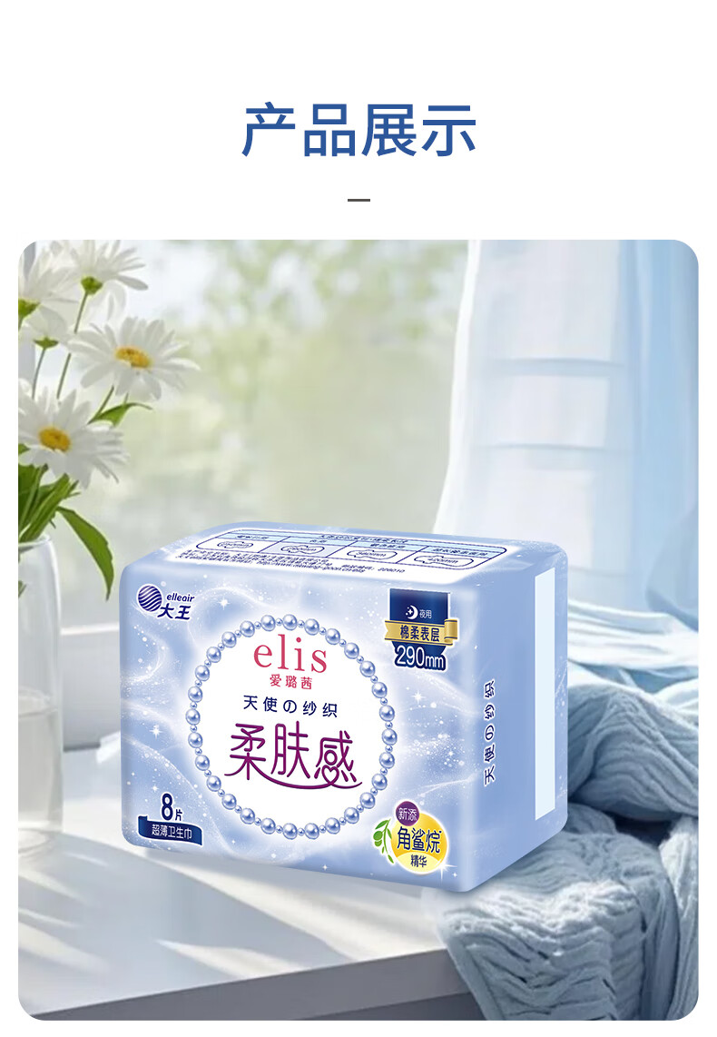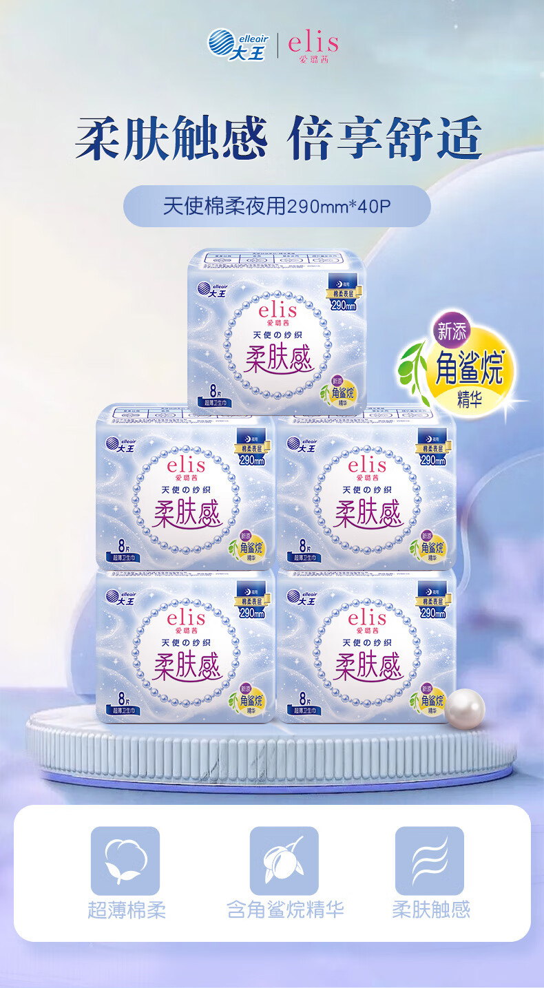 爱璐茜(elis)大王天使棉柔日用卫生巾290mm40片超薄姨妈经期卫生巾京东自营