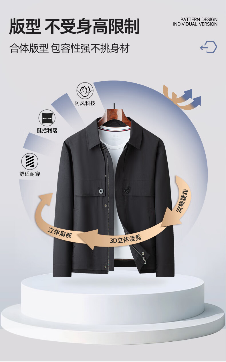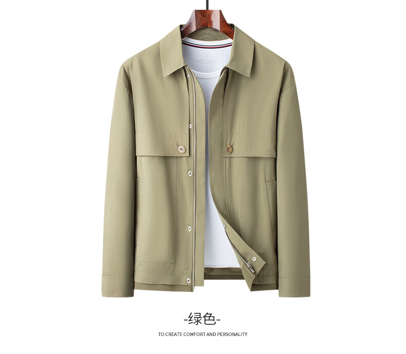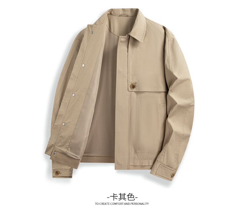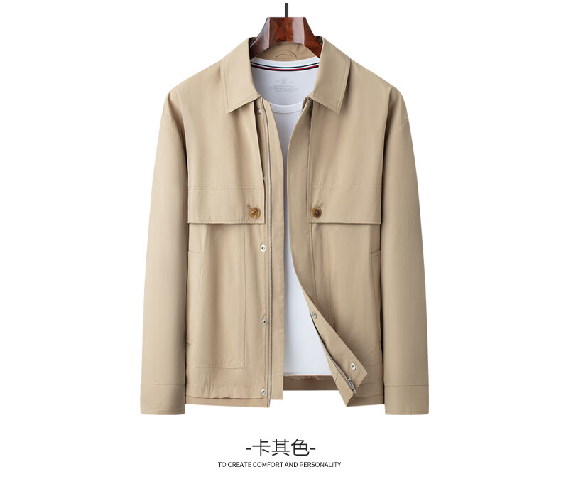 SHANSHAN杉杉男士夹克春季新款翻领时尚商务休闲风衣版外套男长袖百搭衣服 卡其色 3XL /190