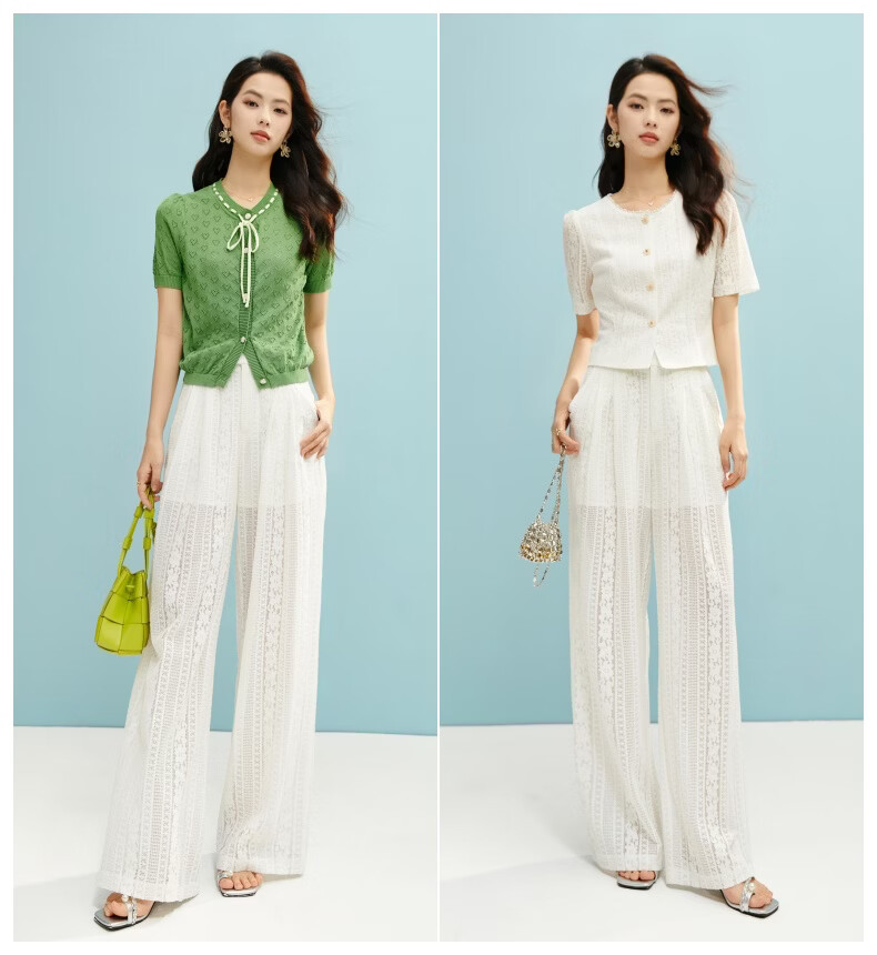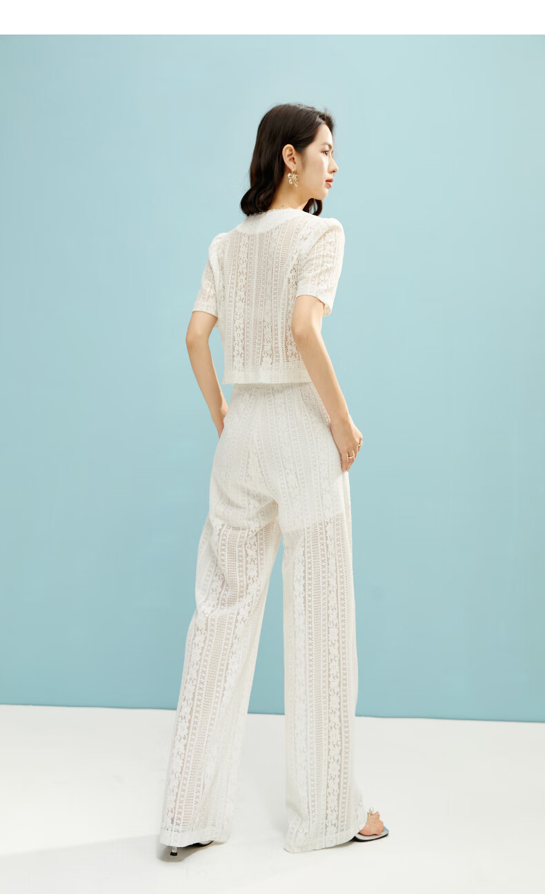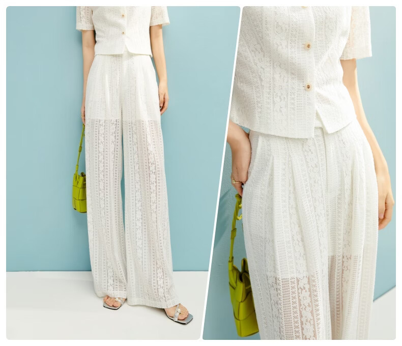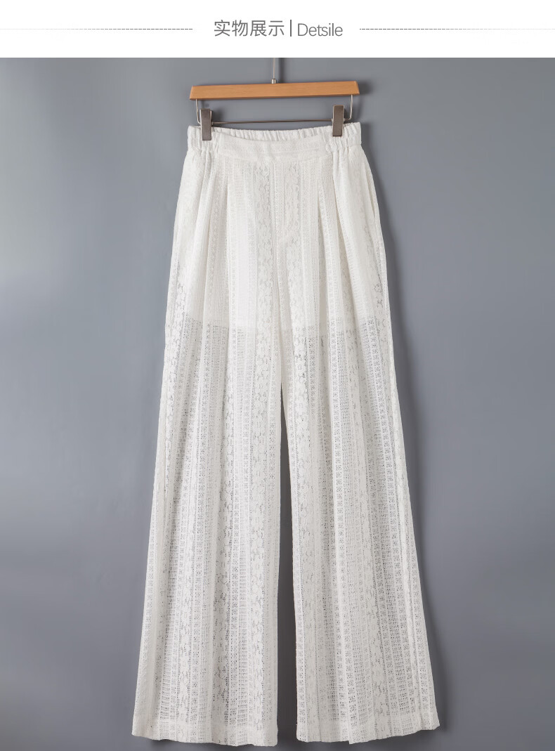晚白【新品】2026年春款时尚休闲裤子高腰显瘦白色蕾丝阔腿裤女 米白色 26