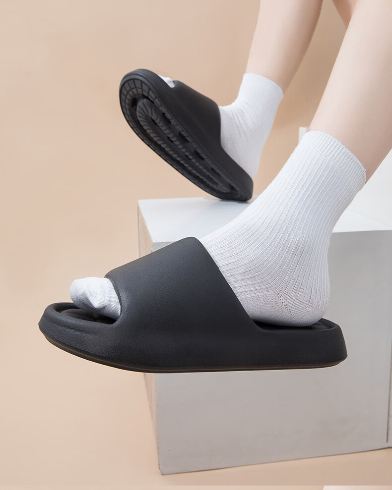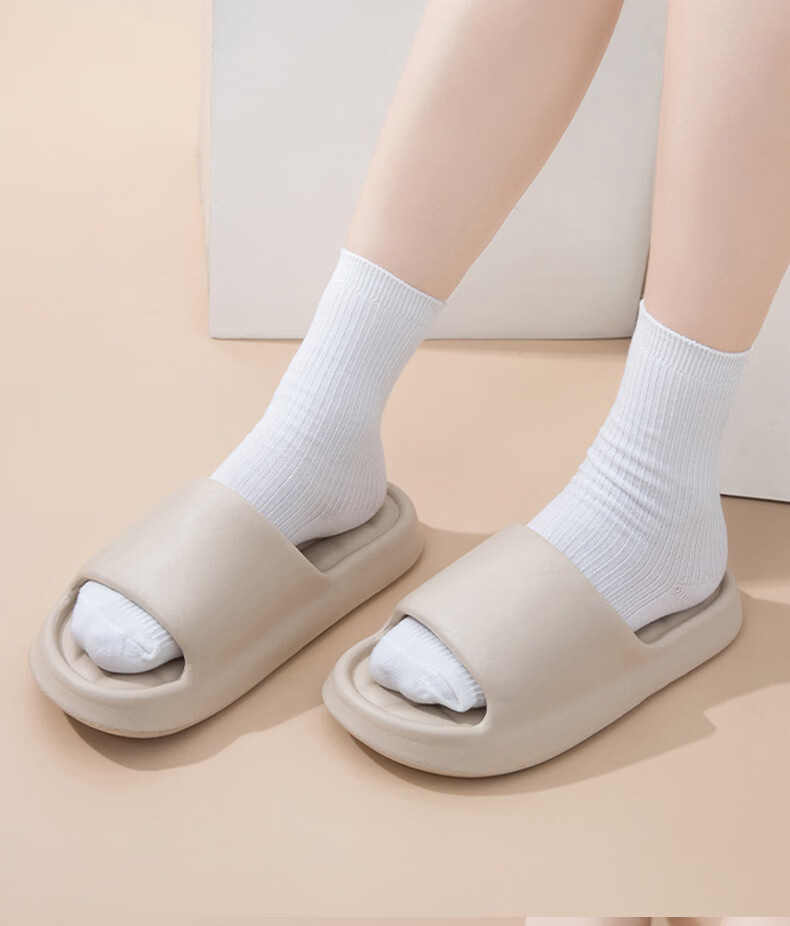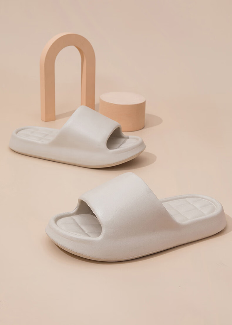 新款户外踩屎感凉拖鞋女夏居家防滑浴室家用男式eva凉托 米色 38-39