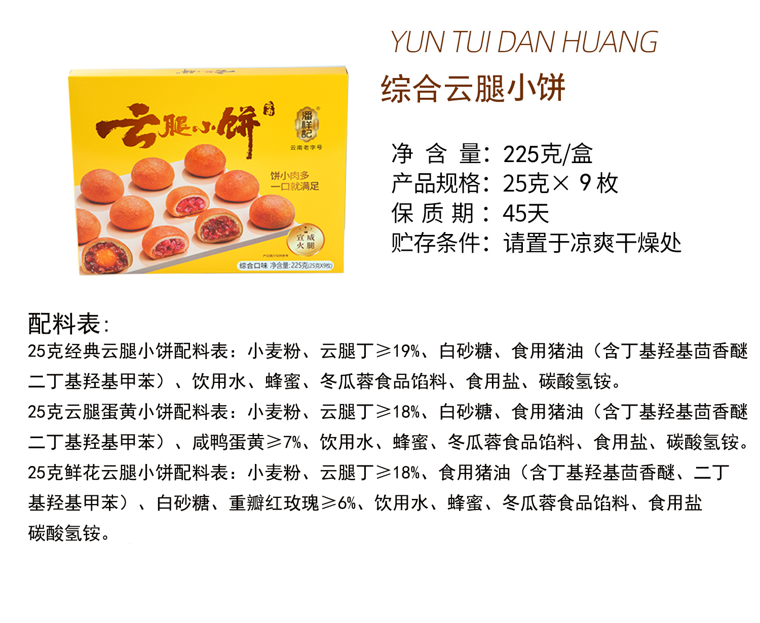 潘祥记鲜花饼 综合云腿小饼云南特产糕点早餐零食 9枚225g盒装