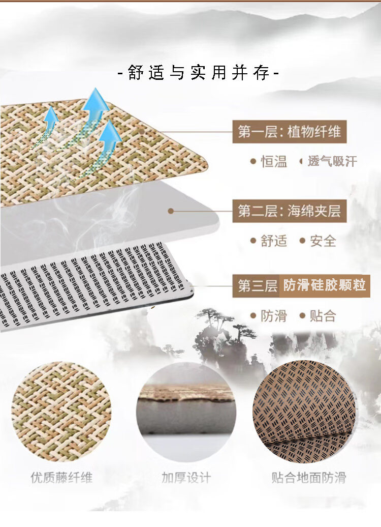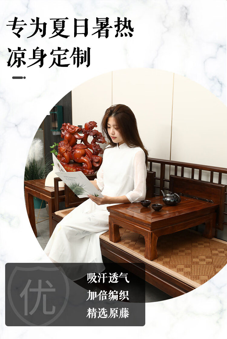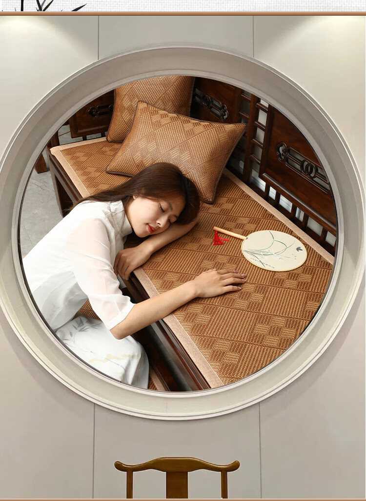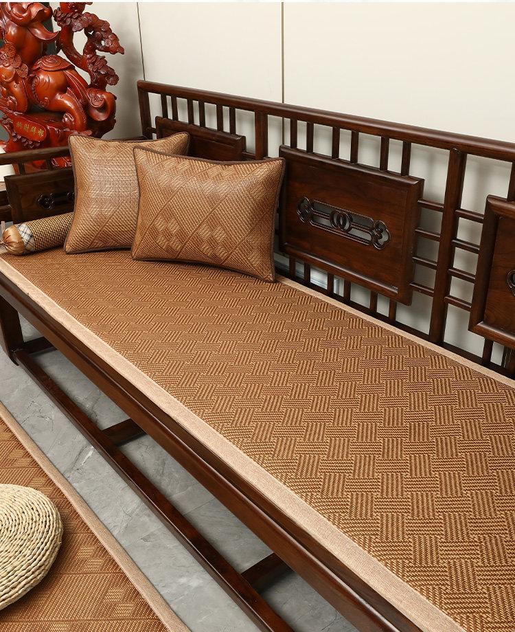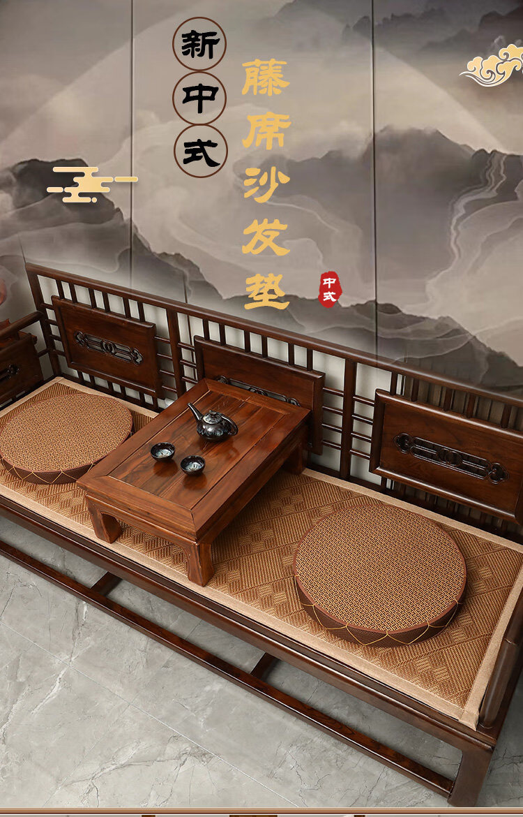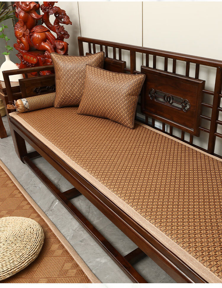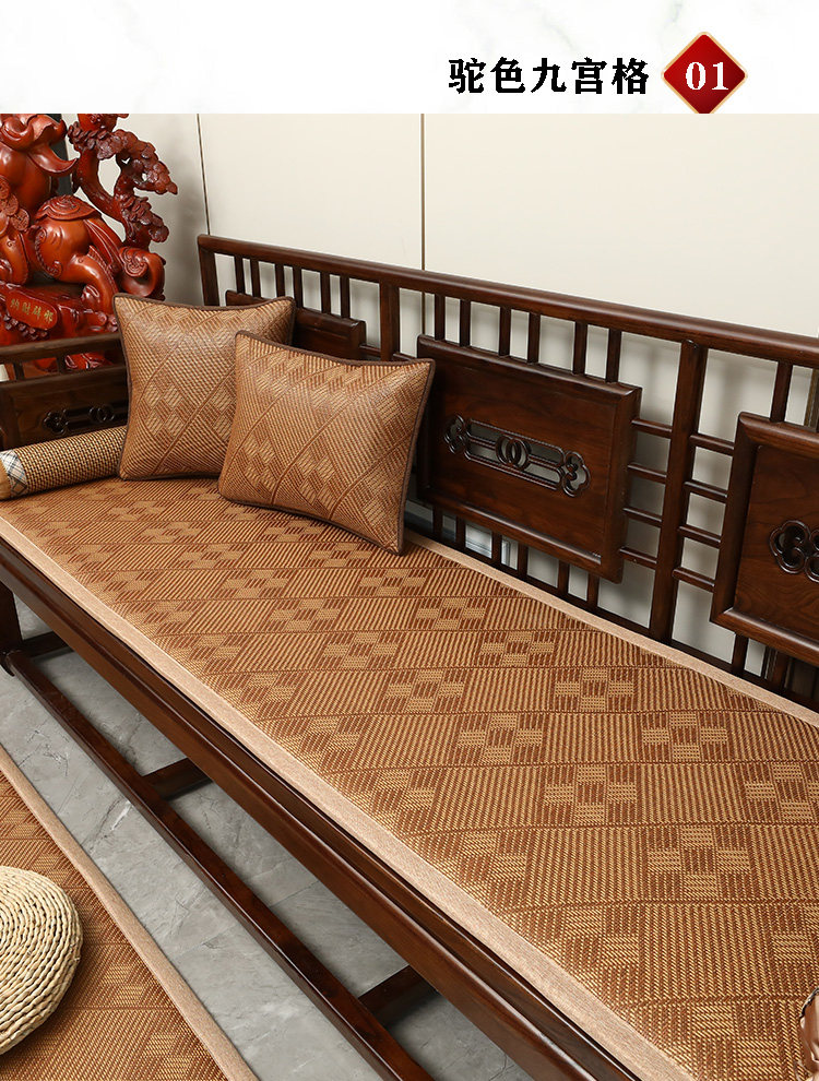 正圣新中式红木藤席沙发垫四季通用防滑2026年新款夏季凉席坐垫加厚 驼色九宫格 单座50*50cm【厚度2.5cm】
