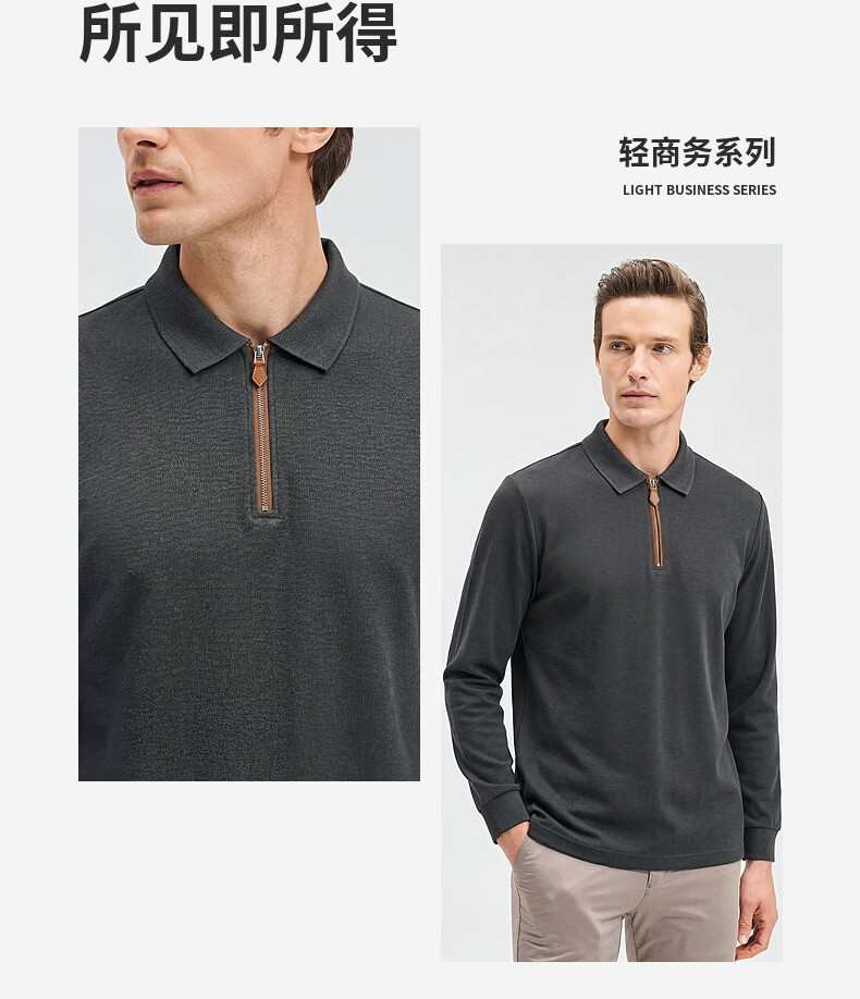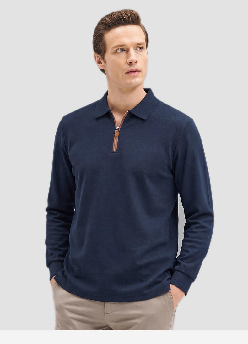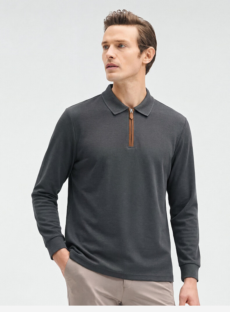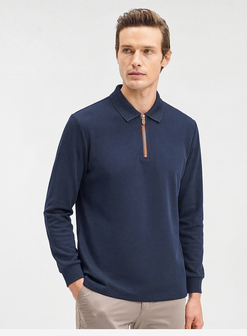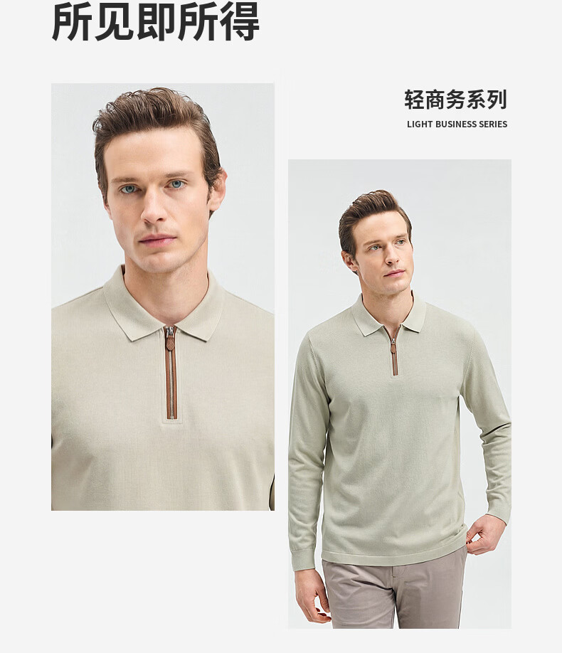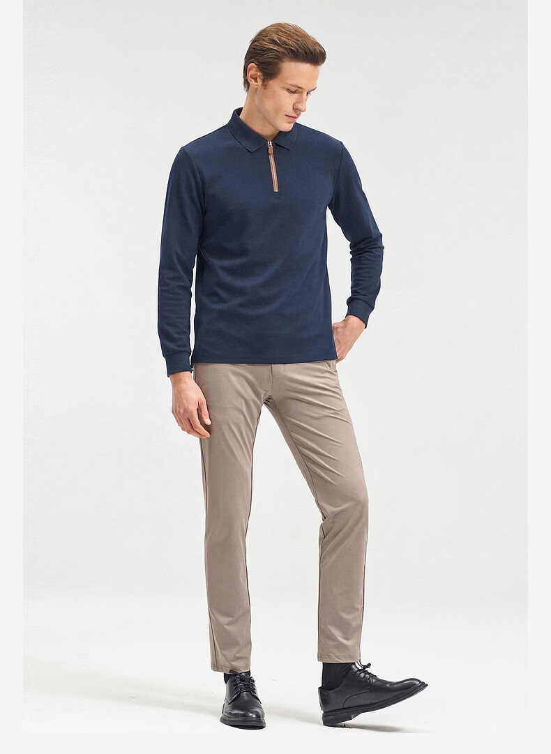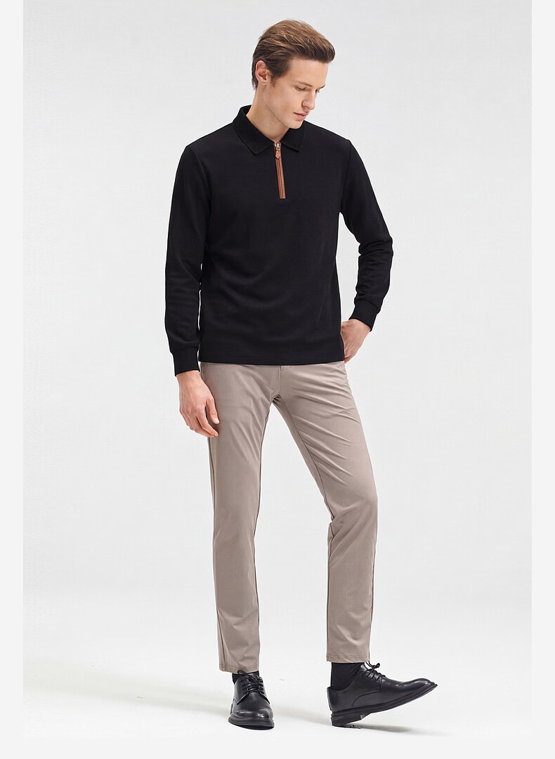 SHANSHAN杉杉【锦氨弹力】长袖t恤男翻领POLO衫纯色半拉链领打底春秋新款 米杏色 L /175