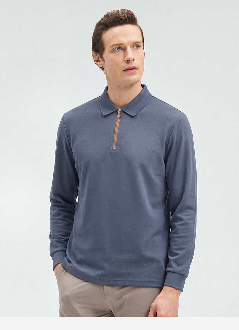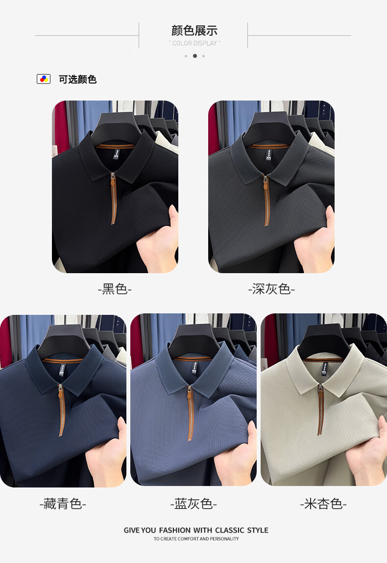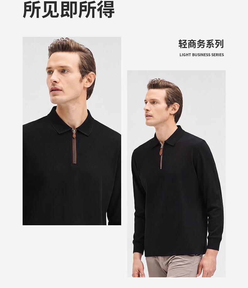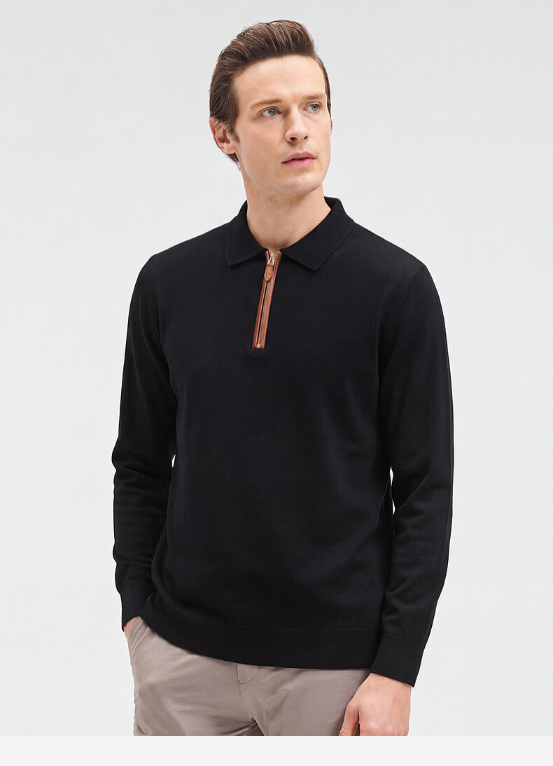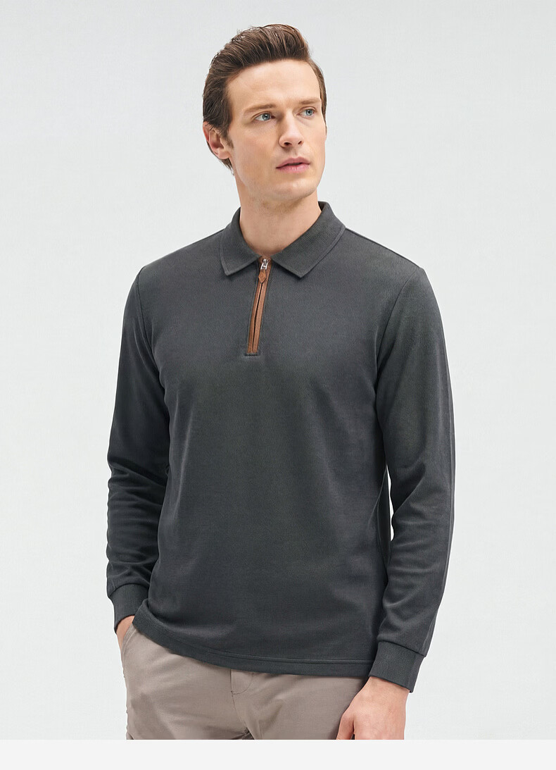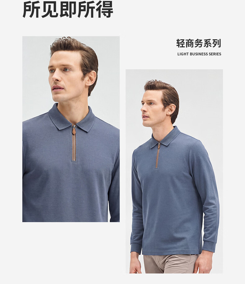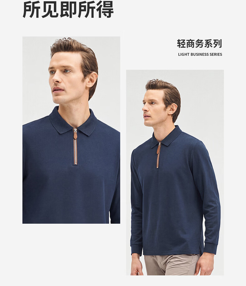 SHANSHAN杉杉【锦氨弹力】长袖t恤男翻领POLO衫纯色半拉链领打底春秋新款 米杏色 L /175