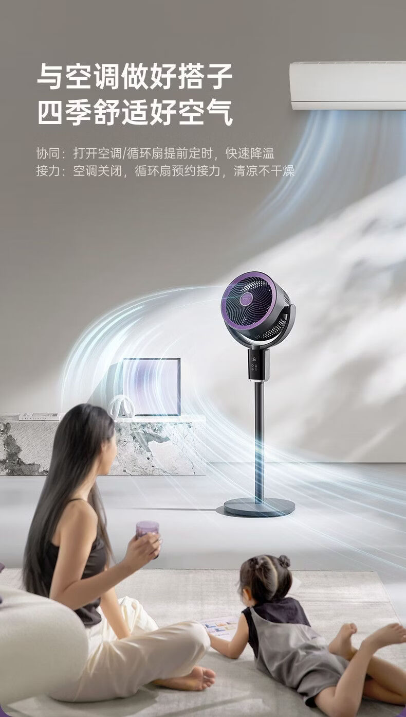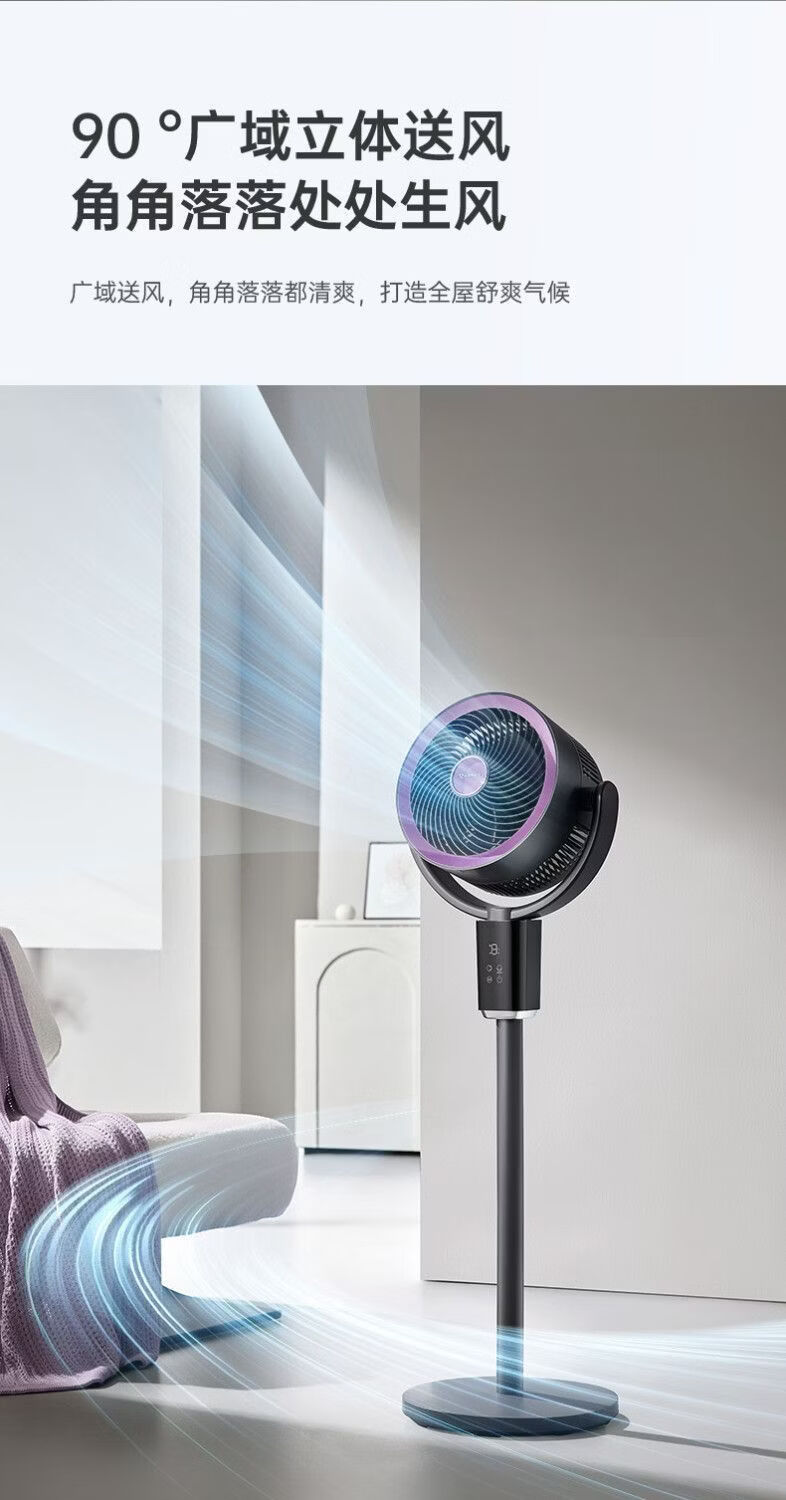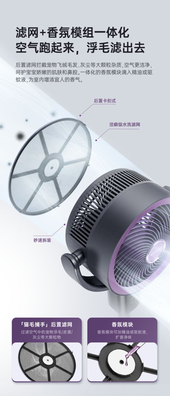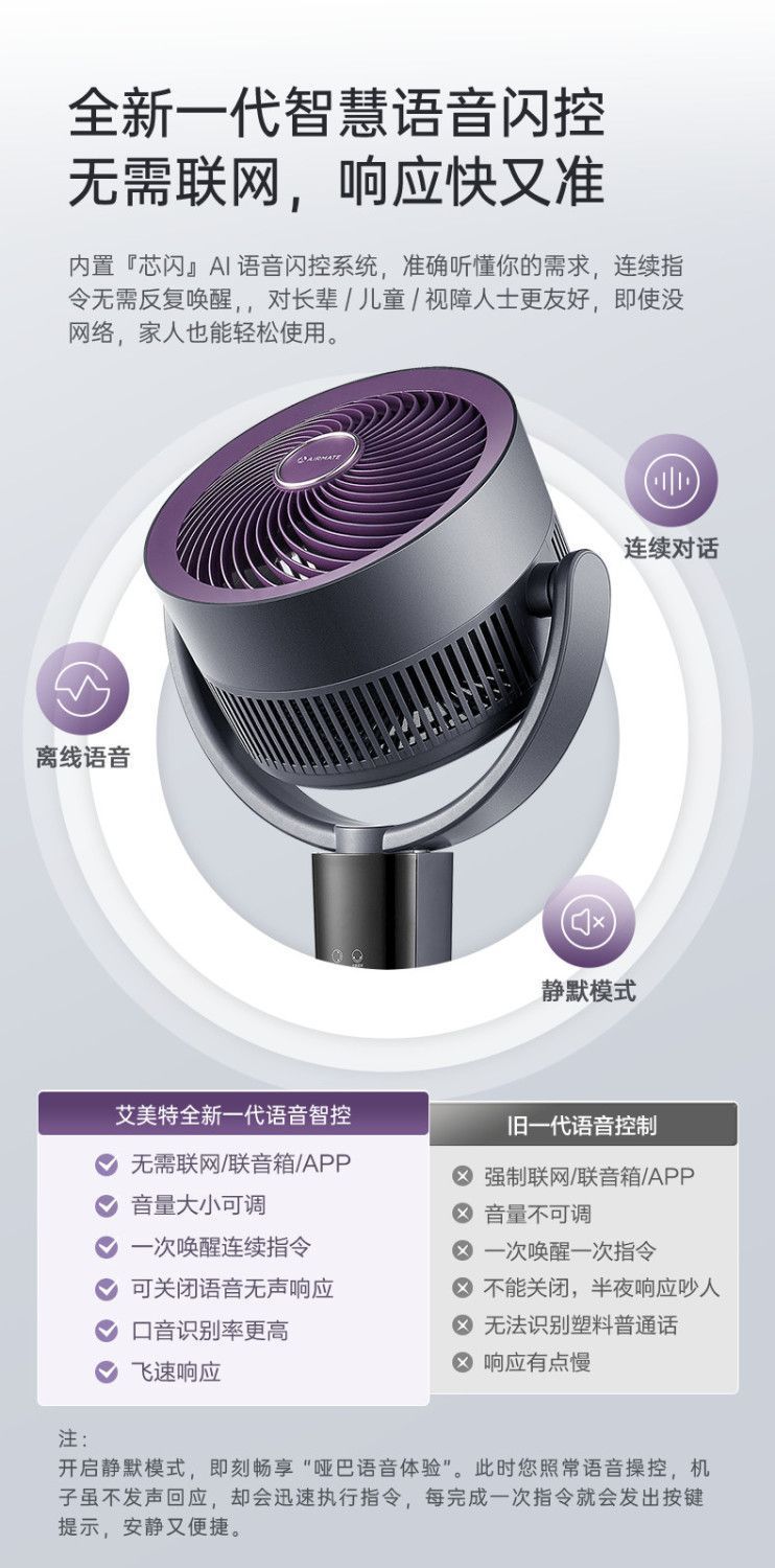 艾美特空气循环扇负离子循环扇智能语音控制电风扇伸缩大风力静音 【轻氧系列】闪控AI语音/香薰驱蚊/负离子净化