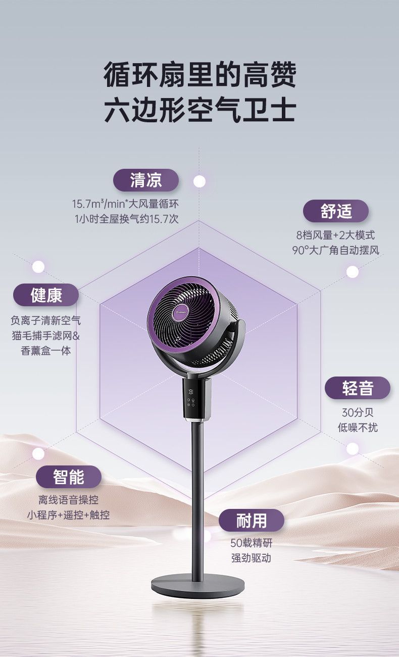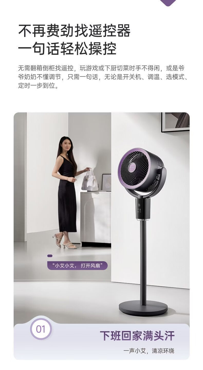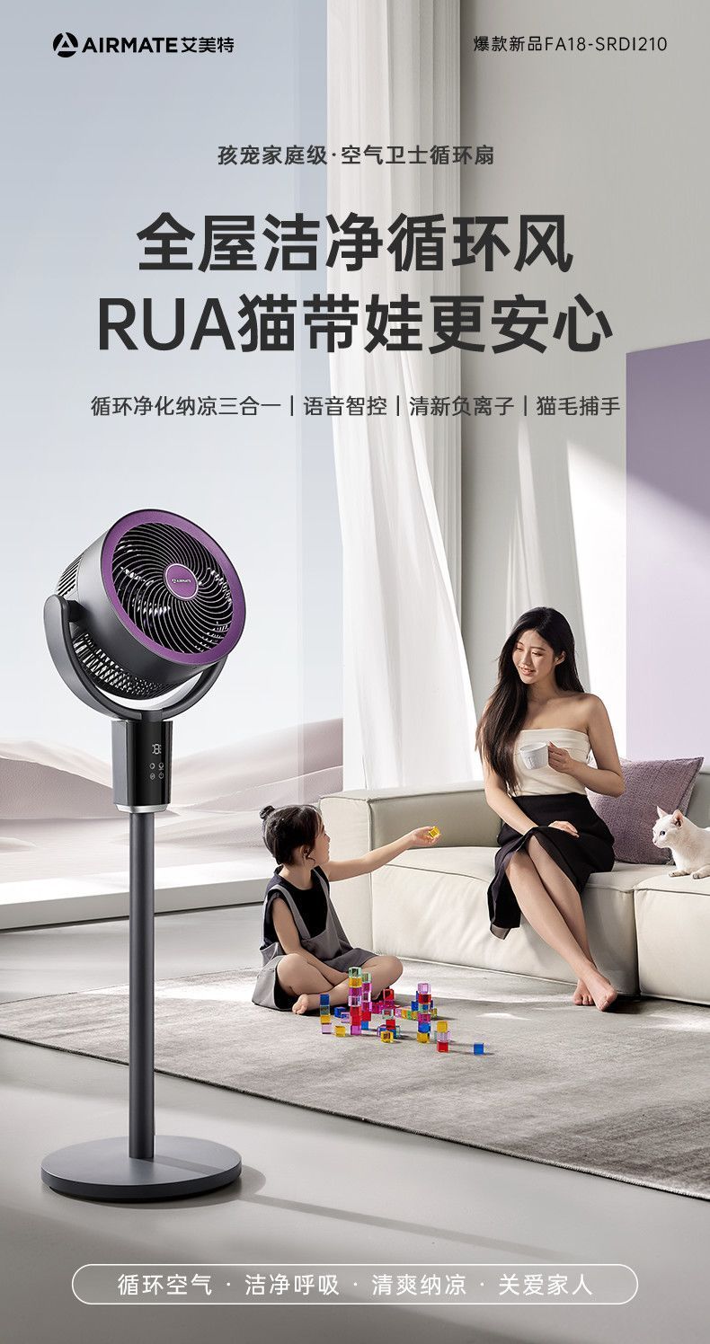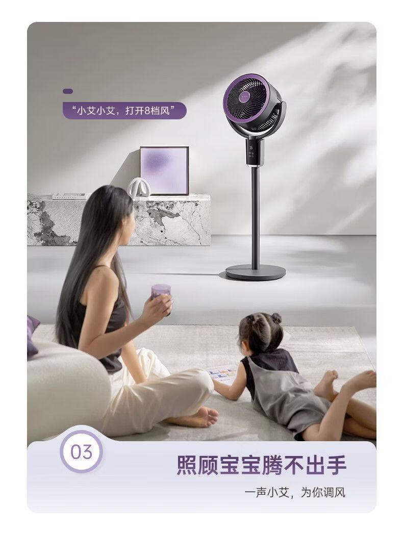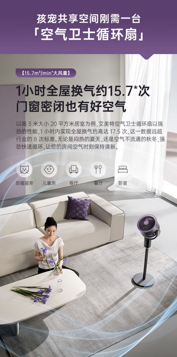 艾美特空气循环扇负离子循环扇智能语音控制电风扇伸缩大风力静音 【轻氧系列】闪控AI语音/香薰驱蚊/负离子净化