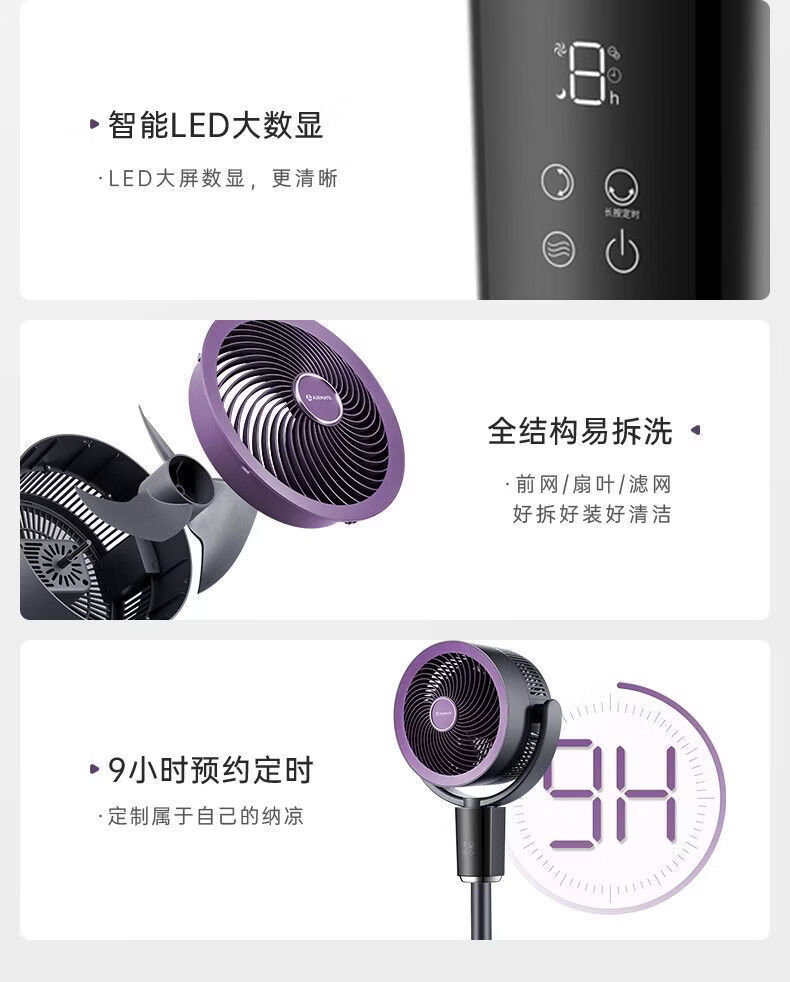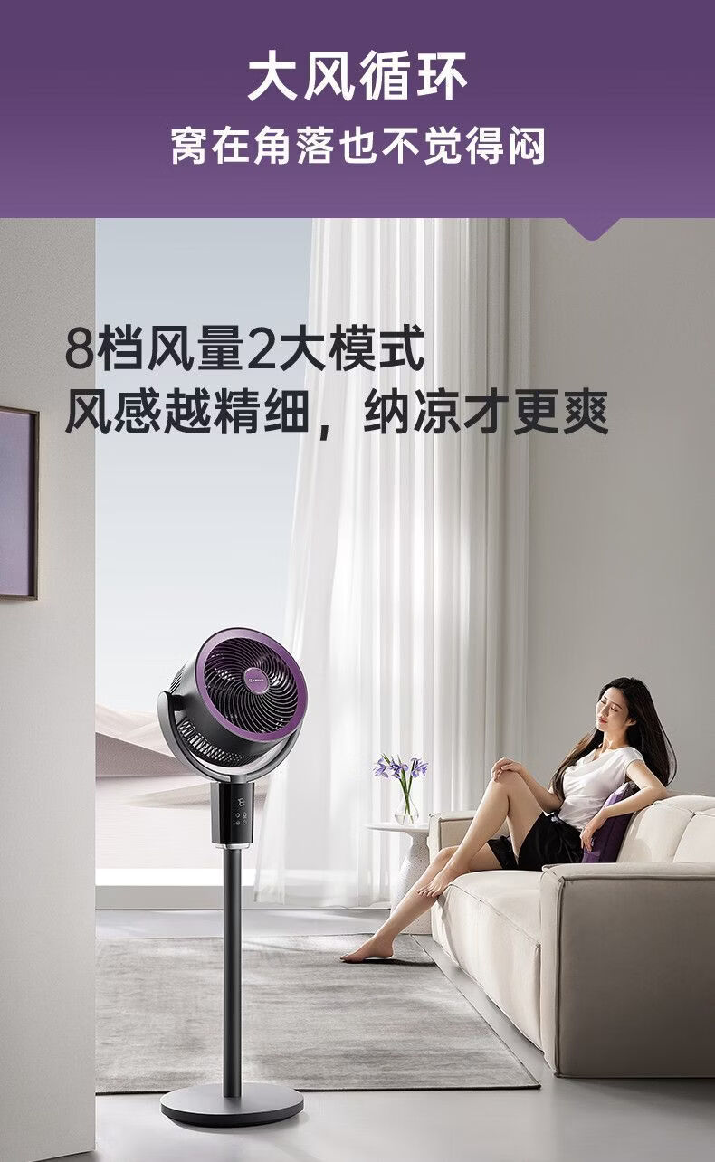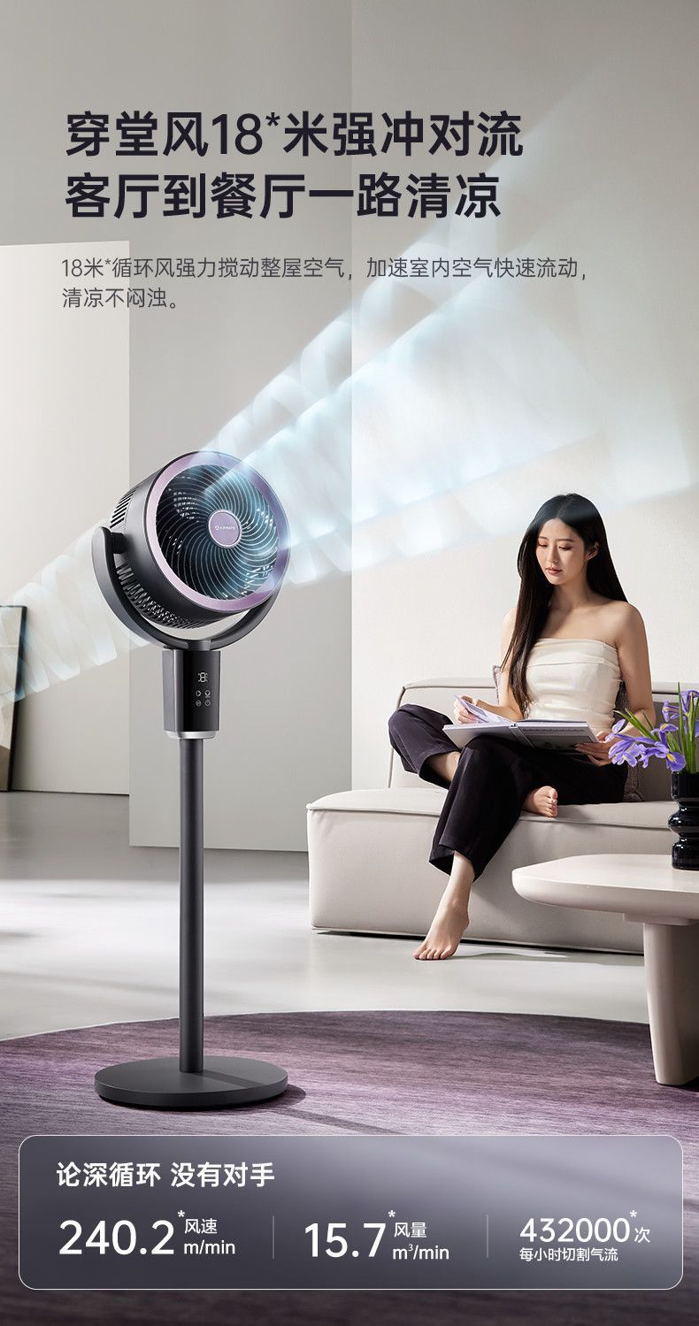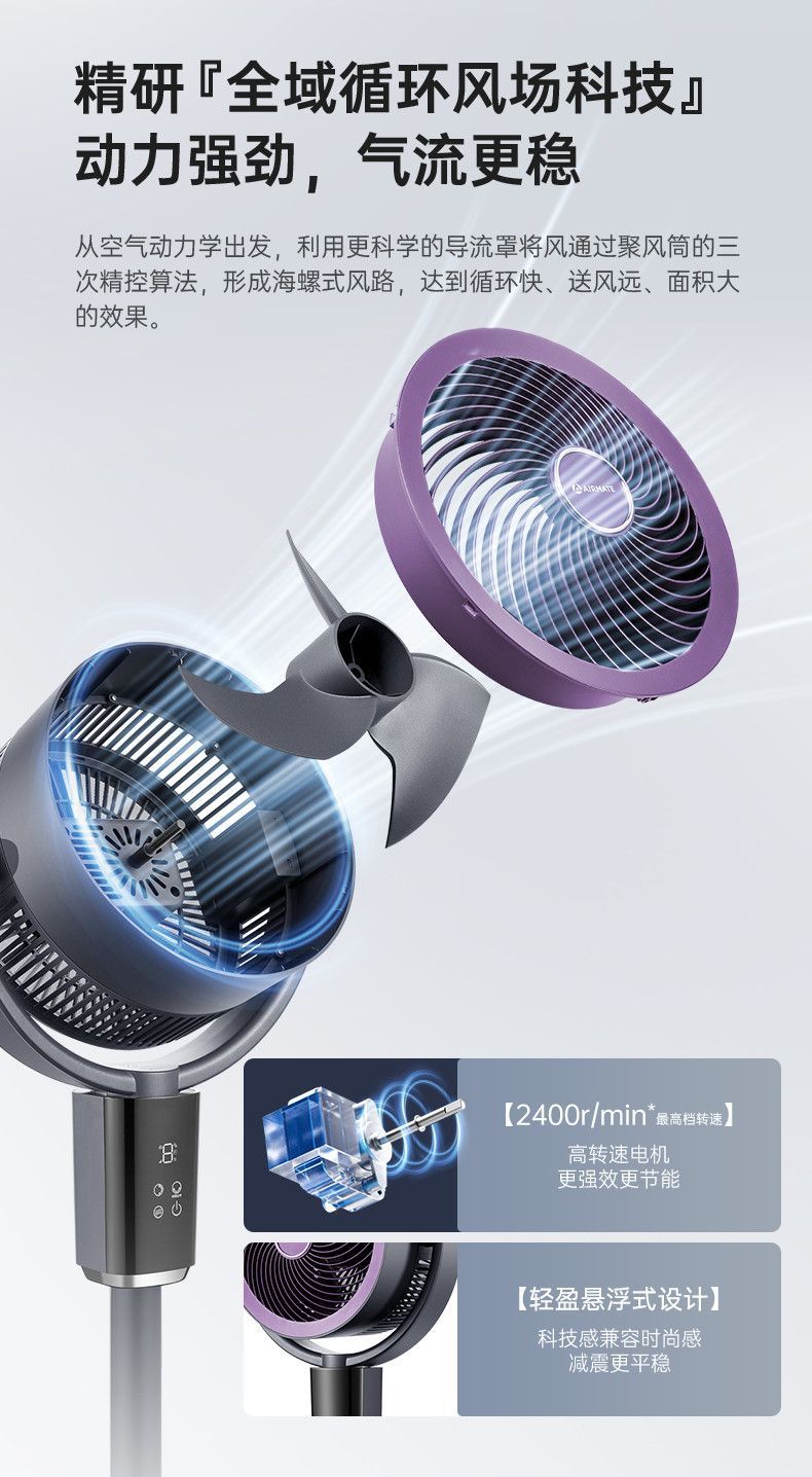 艾美特空气循环扇负离子循环扇智能语音控制电风扇伸缩大风力静音 【轻氧系列】闪控AI语音/香薰驱蚊/负离子净化