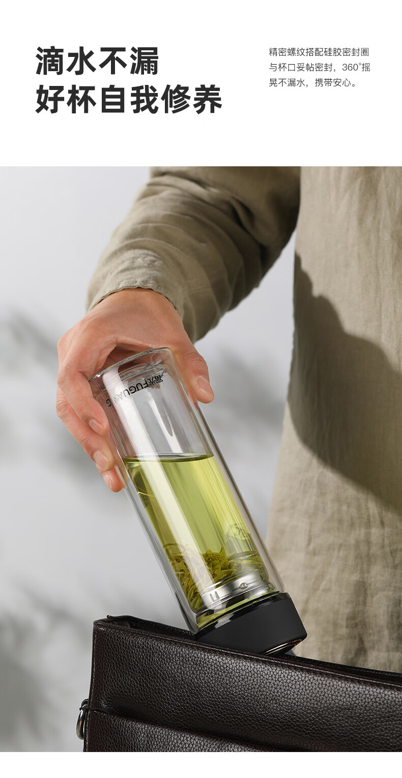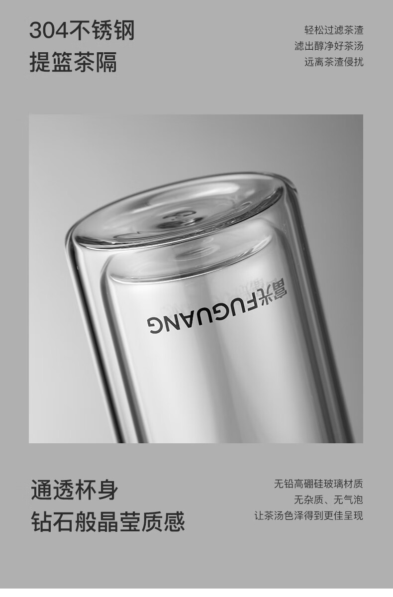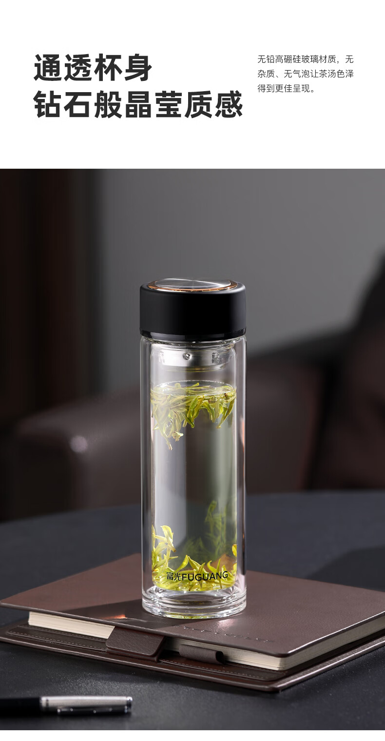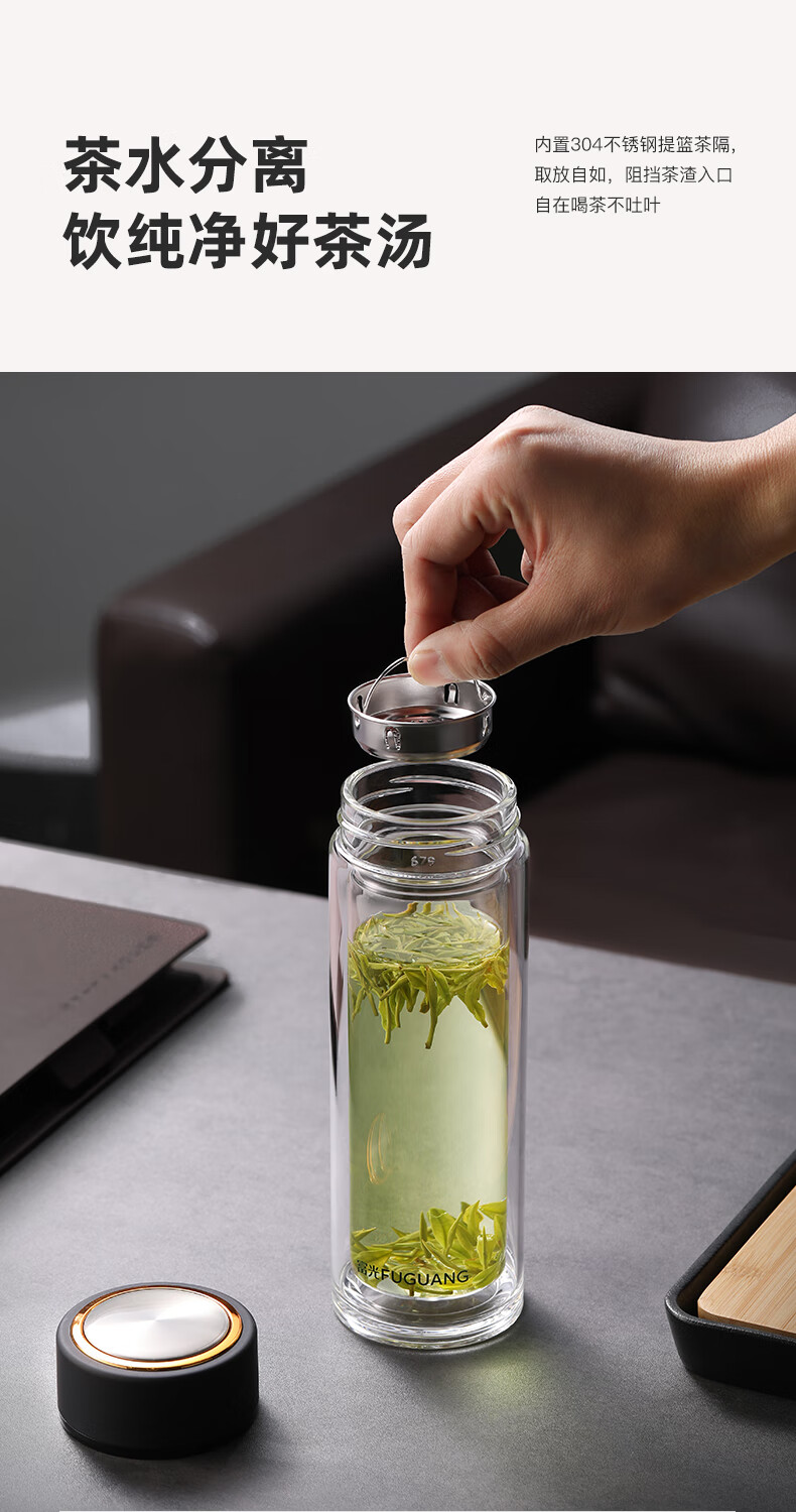 富光 男女士双层玻璃杯 高硼硅泡茶杯 茶水分离水杯带茶隔杯子500ml