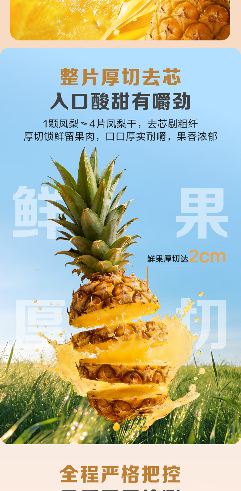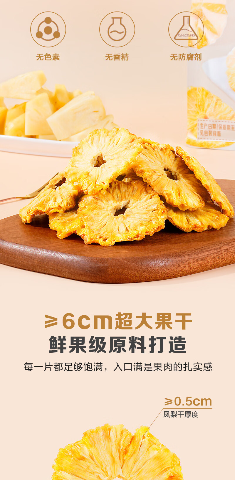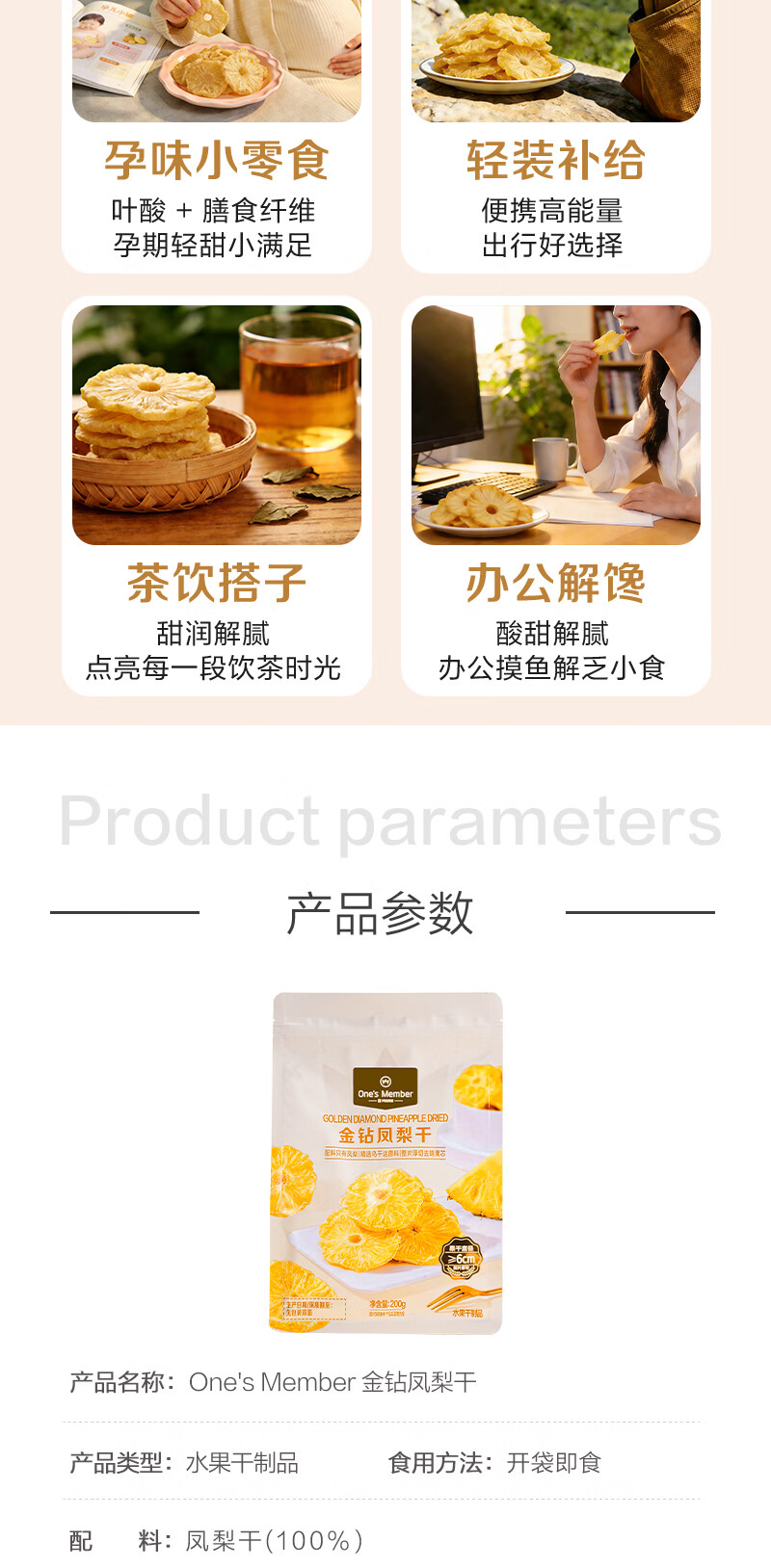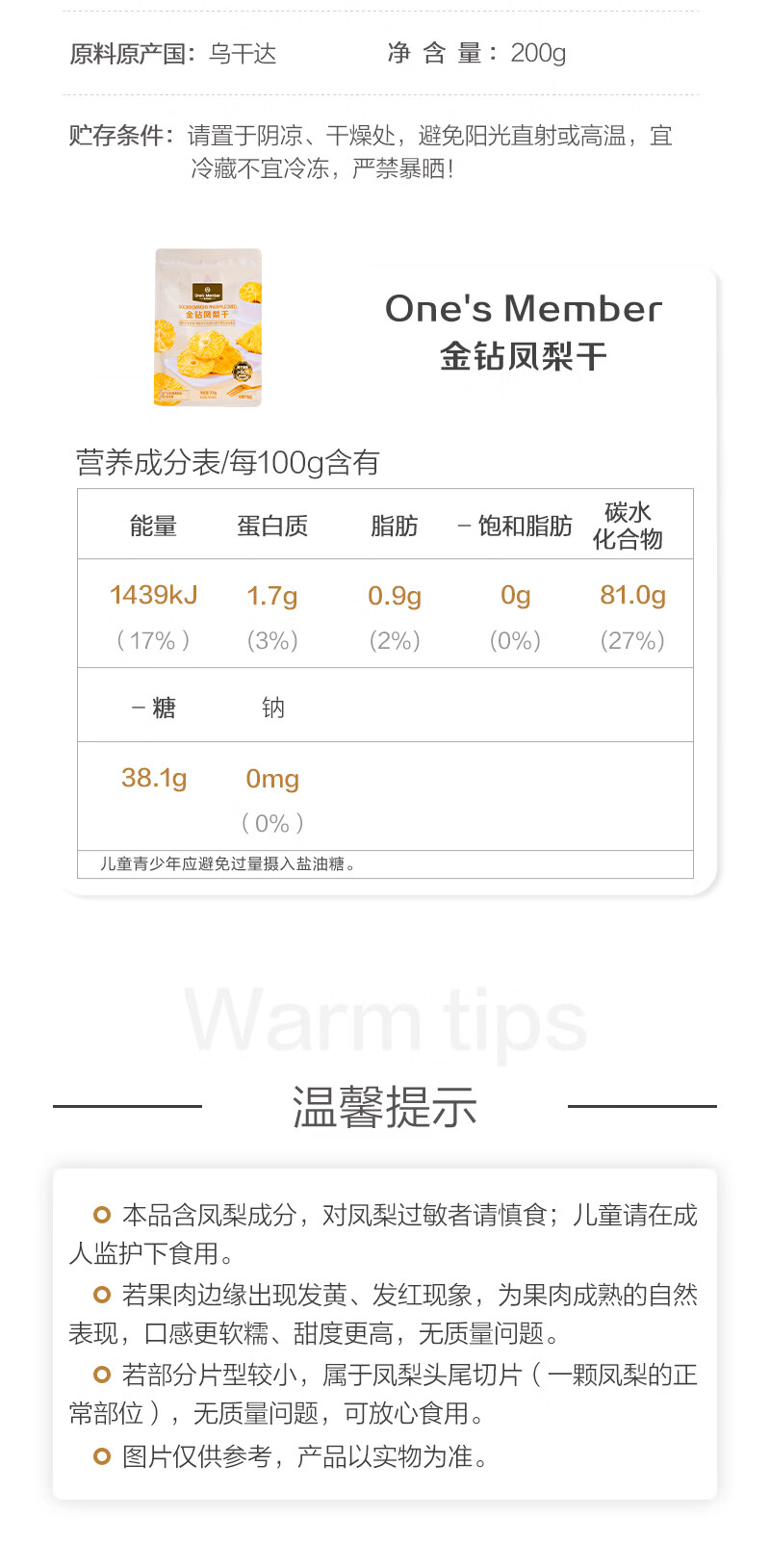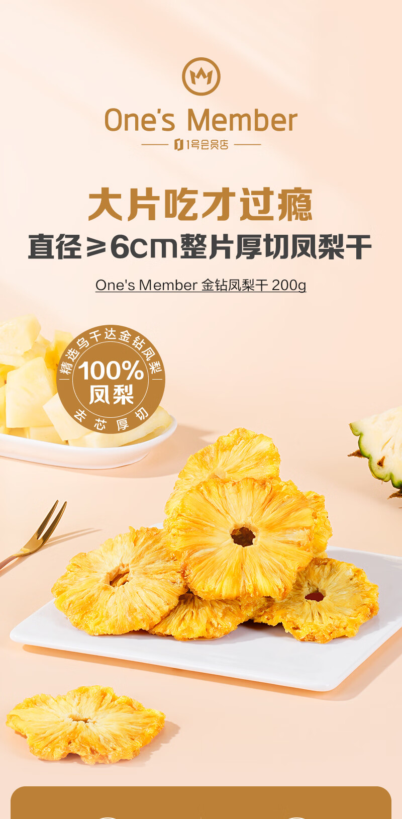 1号会员店(One's Member)厚切无添加去芯金钻凤梨干200g 菠萝蜜饯水果干山姆休闲解馋零食