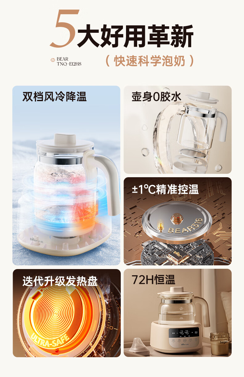 小熊(Bear)恒温水壶婴儿 恒温壶调奶器烧水壶热水壶 极速风冷1.3L
